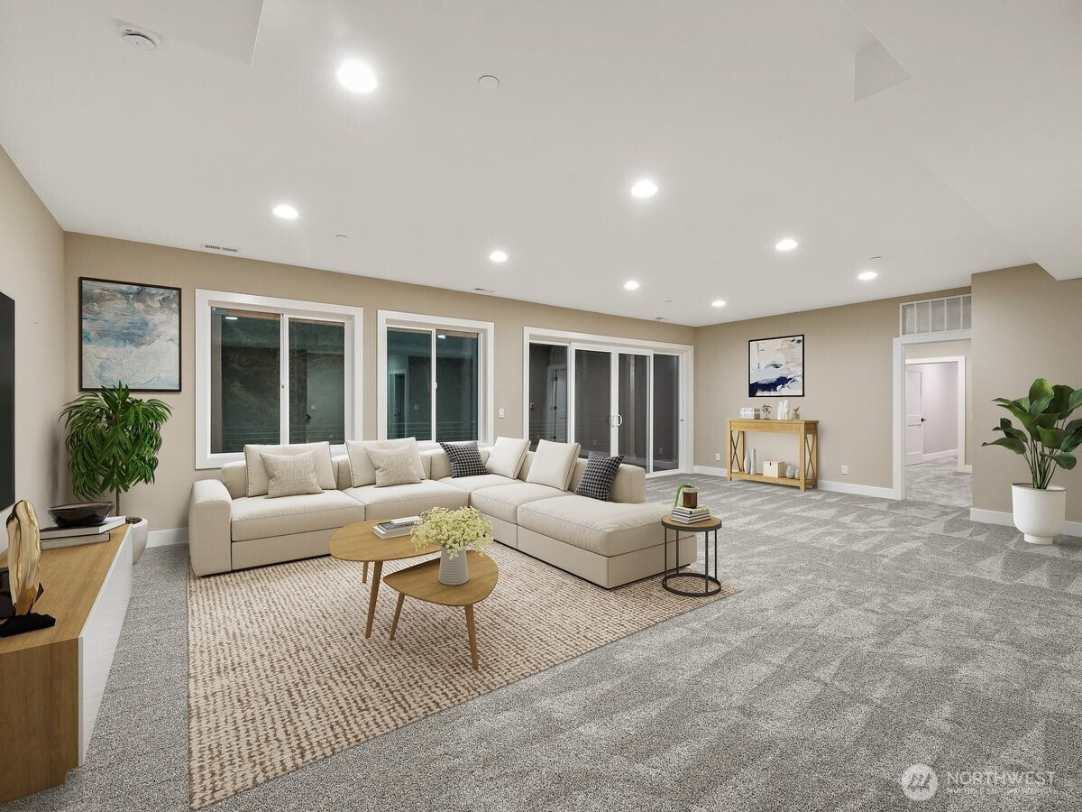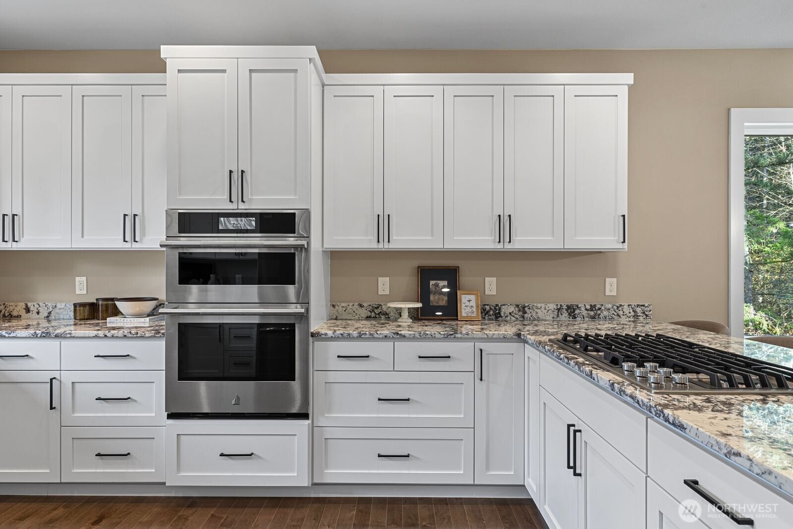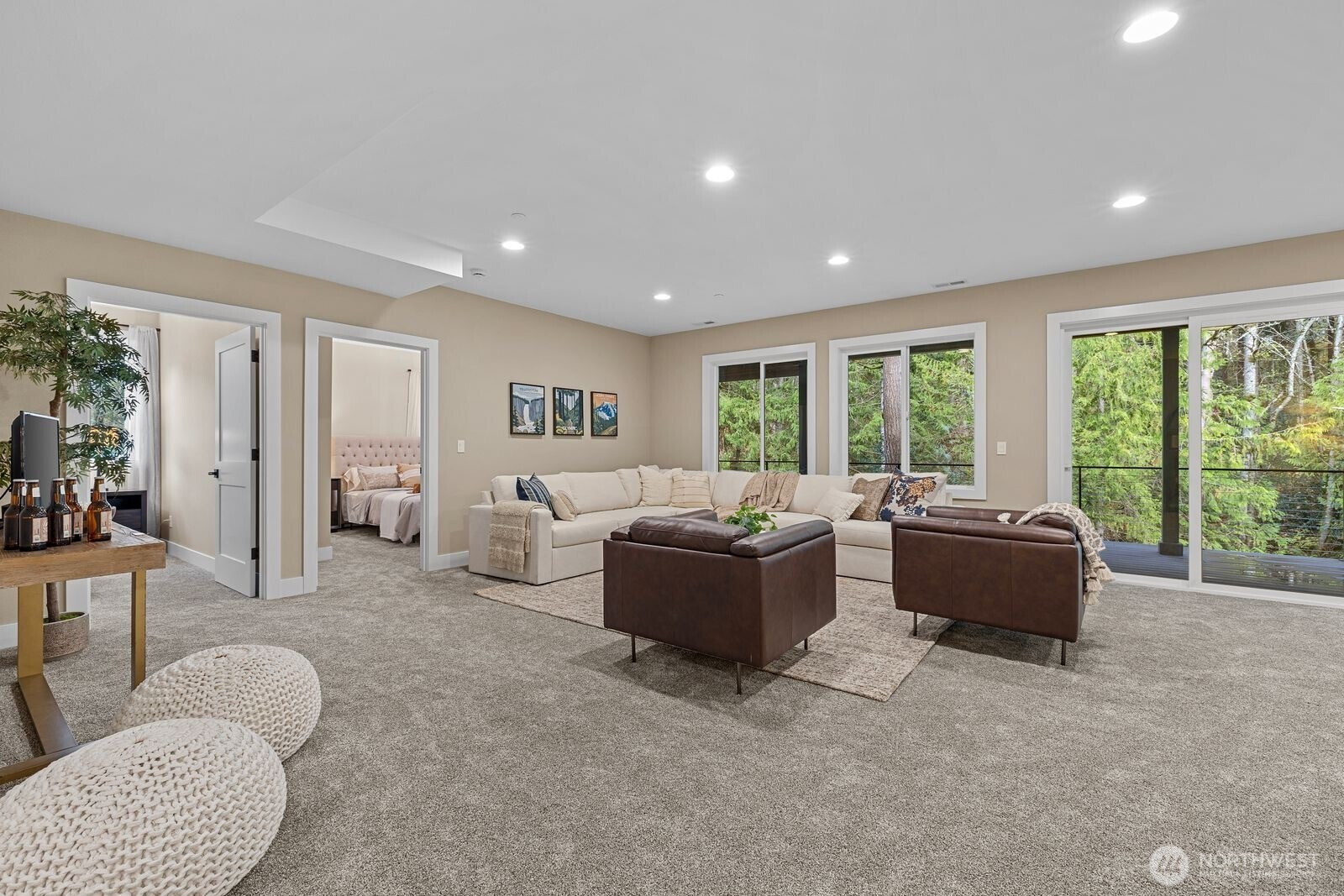 Set at the end of a private drive and surrounded by 2.16 acres of pristine forest—nearly the size of two football fields—this newly constructed Newcastle retreat offers a rare sense of stillness, privacy, and presence. Tucked quietly among the trees, the home unfolds with intention, where architecture and landscape exist in quiet harmony. A wall of expansive windows draws the outdoors in, while hardwood floors and refined finishes ground the main living spaces in warmth and simplicity. Oversized sliders open to a covered deck overlooking the woods—an ever-changing backdrop that softens the pace of daily life and invites connection to the natural surroundings. The main floor primary suite is a private sanctuary, complete with a spa-inspired bath and a generous walk-in closet—designed for ease without compromise. The lower level offers a massive bonus room and three additional bedrooms, creating space for gathering, retreat, and everything in between. Thoughtfully appointed with granite countertops, stainless steel appliances, and custom cabinetry, the home balances beauty with function. RV parking, low-maintenance landscaping, and a private drive shared with just one other residence complete the experience. Quietly luxurious. Deeply livable. A place where nature leads and design follows—just minutes from Bellevue, Seattle, and Sea-Tac.