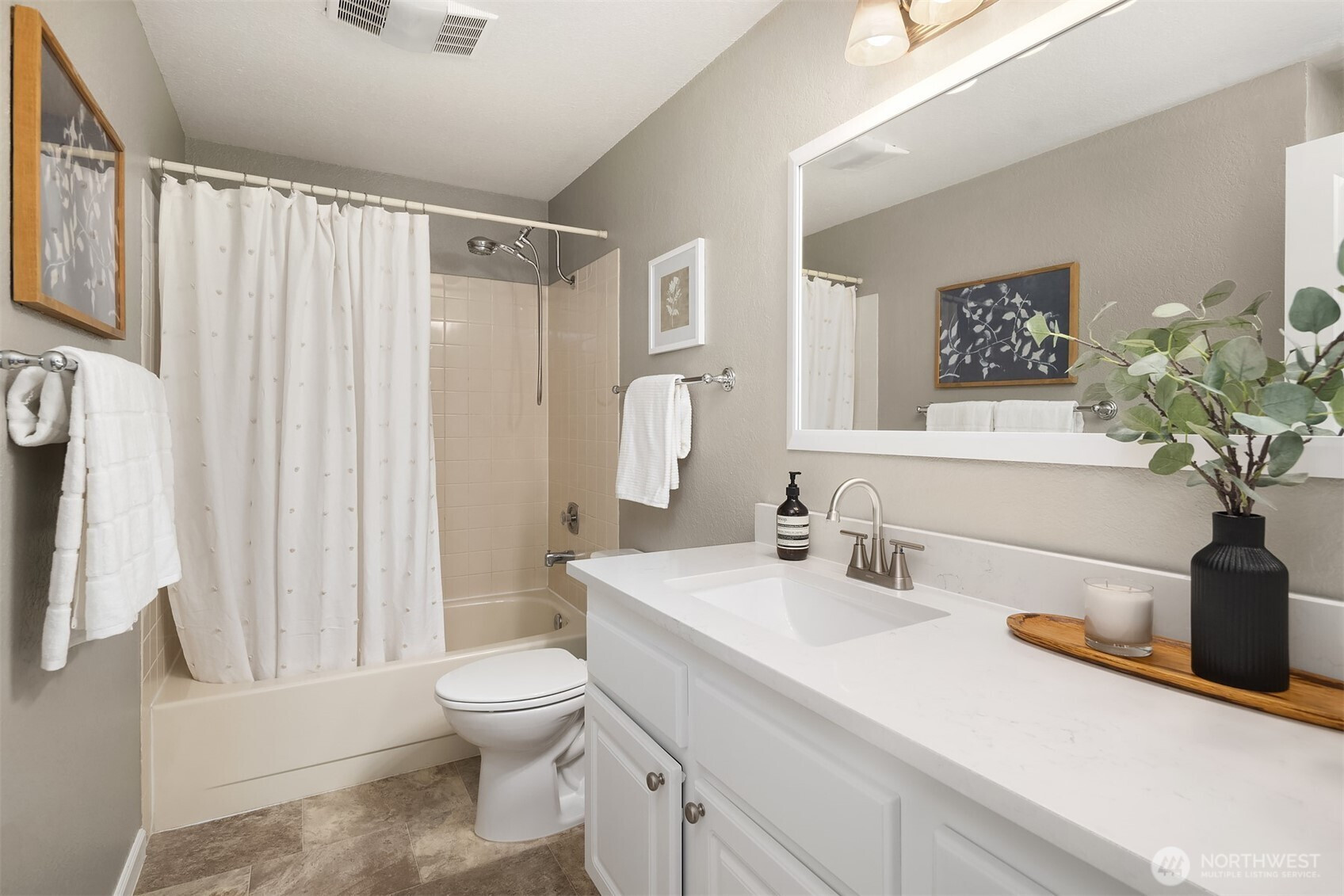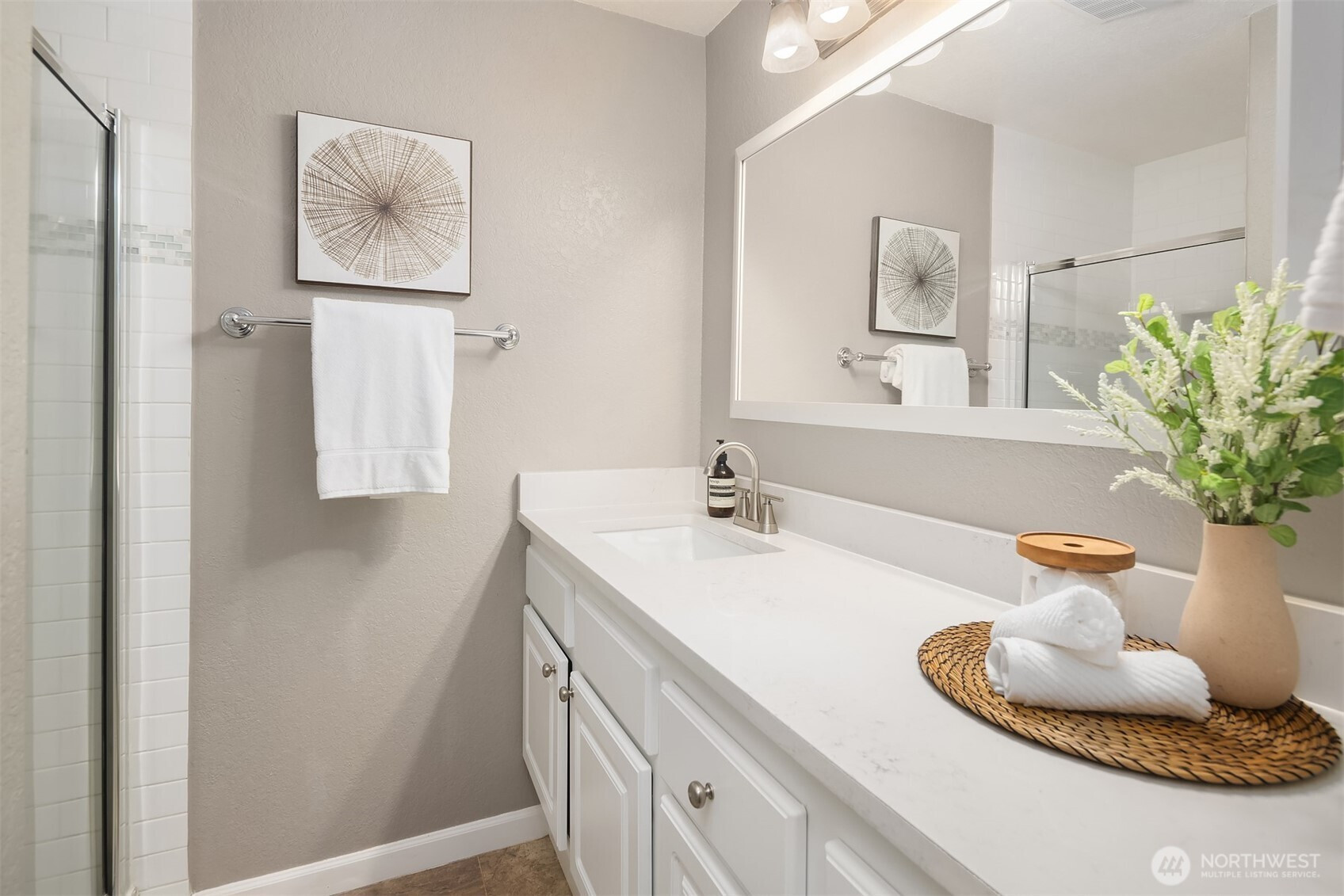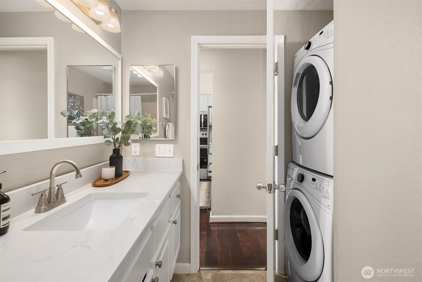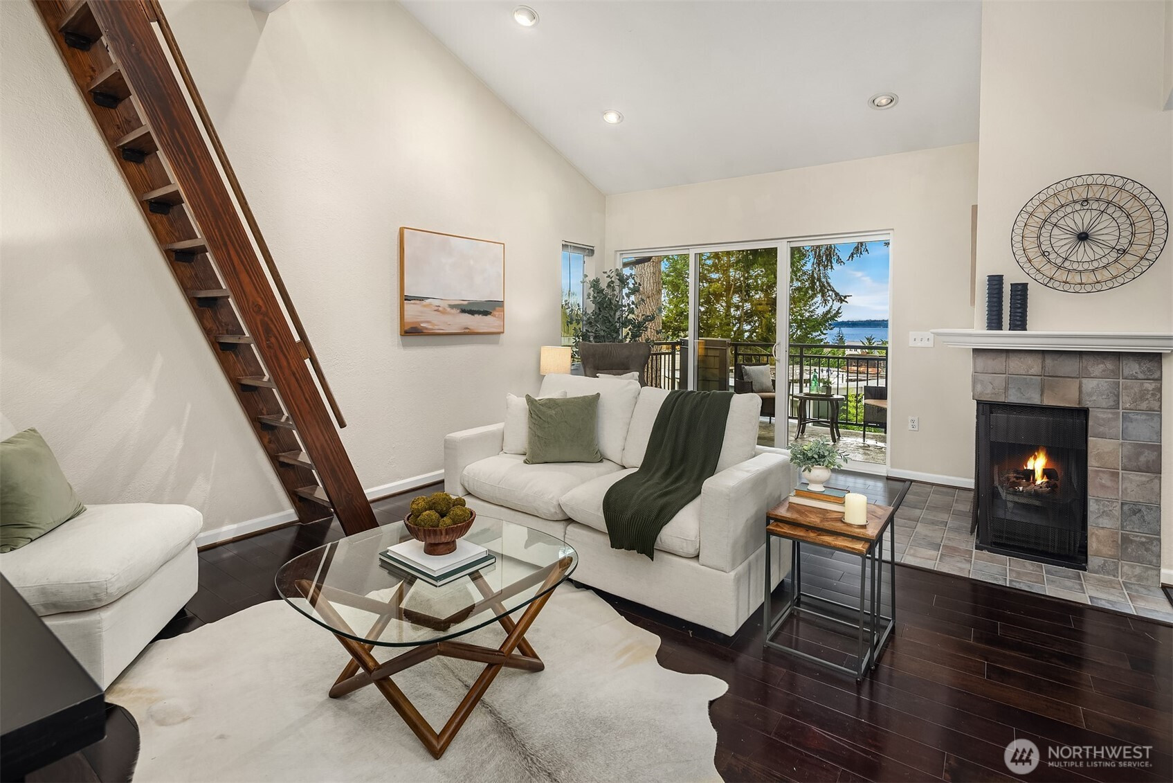Top-floor corner Kirkland condo in the heart of Juanita featuring shimmering Lake Washington views, vaulted ceilings, and a private home office loft. This light-filled residence offers a spacious open-concept kitchen and dining area that flows into a grand living room with soaring vaulted ceilings. Enjoy the breathtaking Pacific Northwest backdrop of the Seattle skyline and Olympic Mountains from your large private balcony. The versatile floor plan includes 2 bedrooms and 1.75 baths, plus a rare bonus loft perfect for a home office or creative retreat. Enjoy tasteful updates to both kitchen and bathrooms, in-unit washer/dryer, ample storage, 2 parking spaces, and the quiet living of a gated community. Experience an incredible lifestyle with a high walk score: you are mere blocks to Juanita Beach Park, waterfront trails, and local restaurants. With easy commuter access to 405 and under 12 min to Google Kirkland, this is the ultimate Eastside retreat. Juanita Kirkland living at its finest.