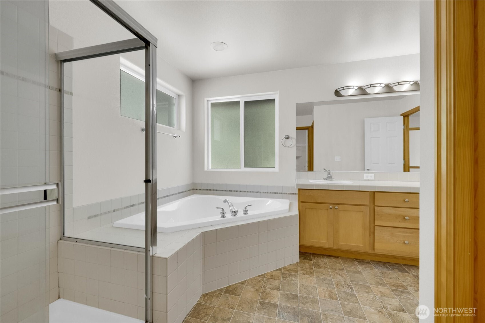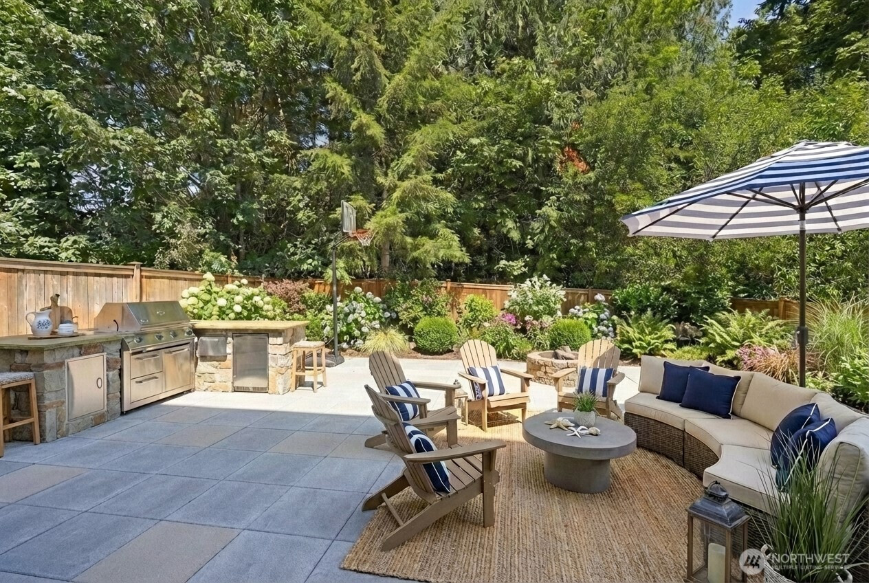 This south-facing home is situated on a quiet street with great light exposure. This was the former model home with many upgrades included. Chef's kitchen with gas range and newer appliances. Formal dinning room. Primary ensuite with large 5pcs bathroom, walk-in closet and gas fireplace. Generous guest bedroom with vaulted ceiling provides ample room for relaxation. Home is pre-wired for surround sound throughout. Built-in outdoor kitchen with gas grill and gas firepit. Large paved and fully fenced backyard. Pre-wired for outdoor music. Garage features pre-wired generator. Lots of built-in shelves and storage. New flooring. Enjoy easy access to shopping, dinning, schools, parks and major highways. Move-in ready! Virtual staging.