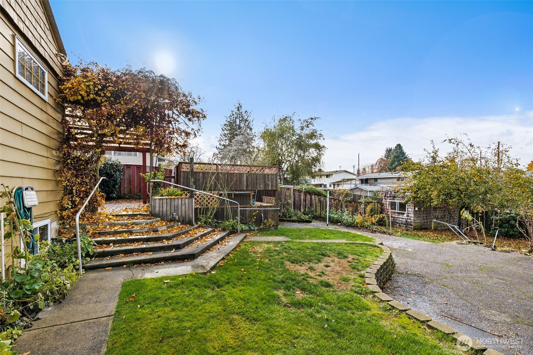 Bring your vision and unlock the potential! This centrally located daylight rambler sits on an oversized lot in a quiet, established neighborhood. The main level offers 2 bedrooms and a generous kitchen/great room overlooking a fenced backyard with fruit trees, flowers, and raised garden beds. The lower level includes an additional bedroom, 3/4 bath, and shop/flex areas—ideal for projects, hobbies, or an in-home business. Attached garage with attic storage plus a detached compact shop. Close to major routes, shopping, Sea-Tac, and light rail. Great bones, endless possibilities! Become a homeowner today! Why wait?