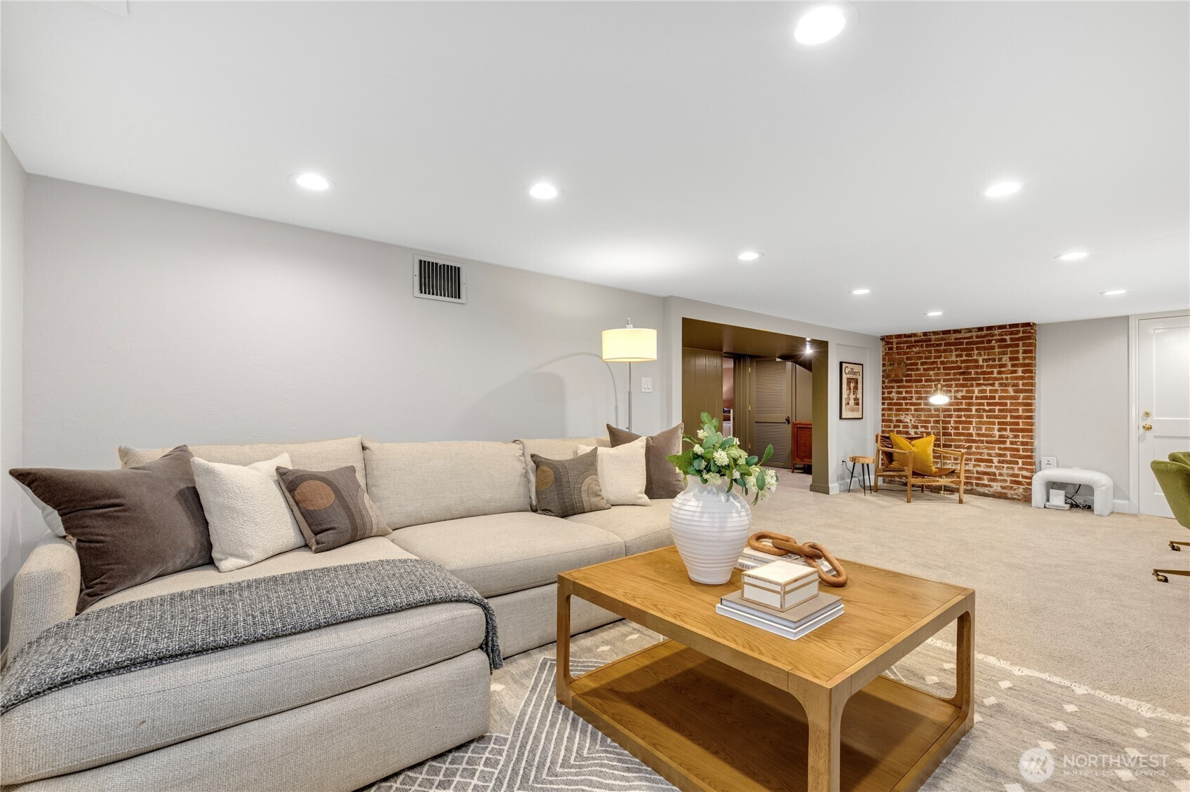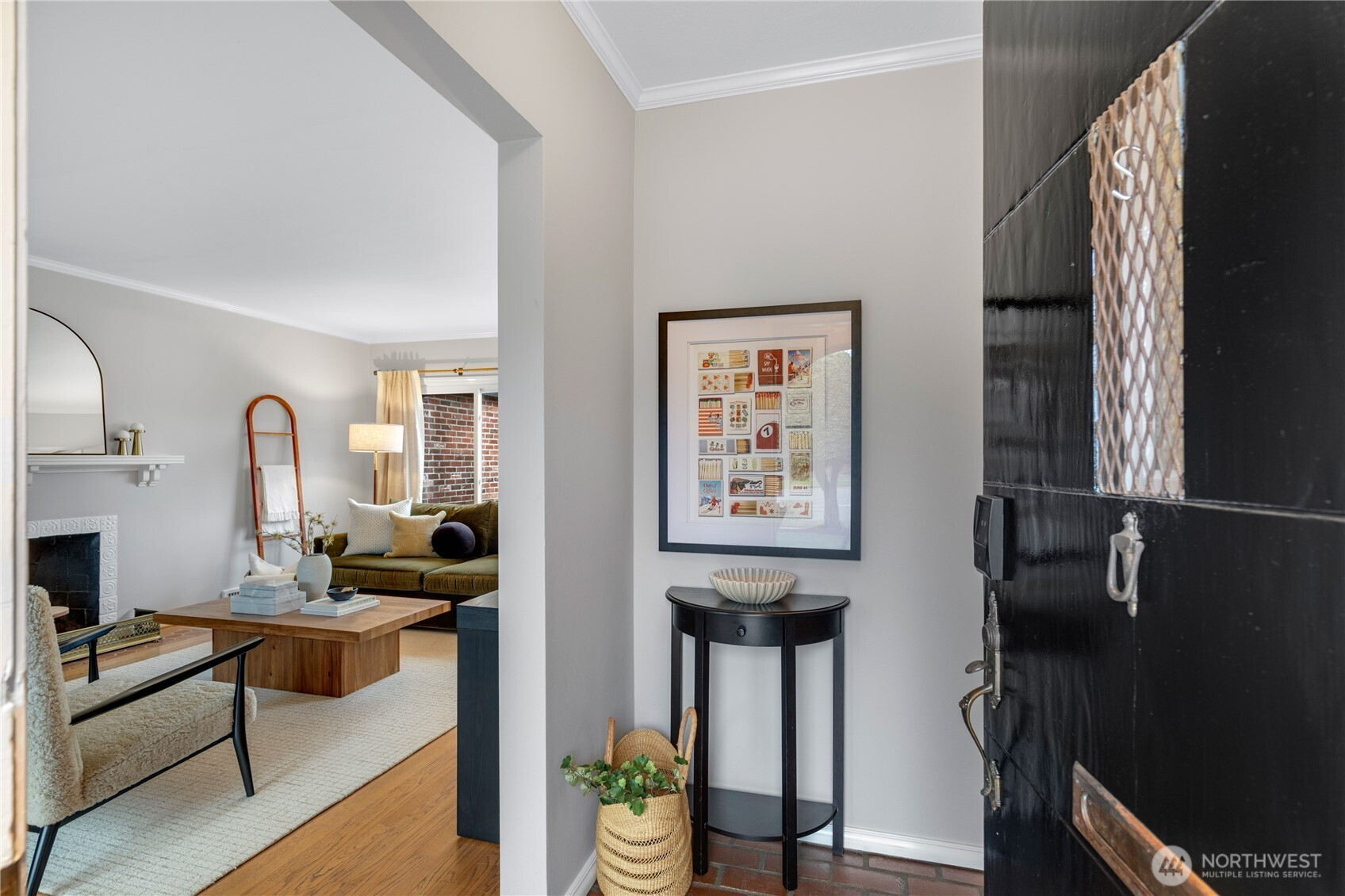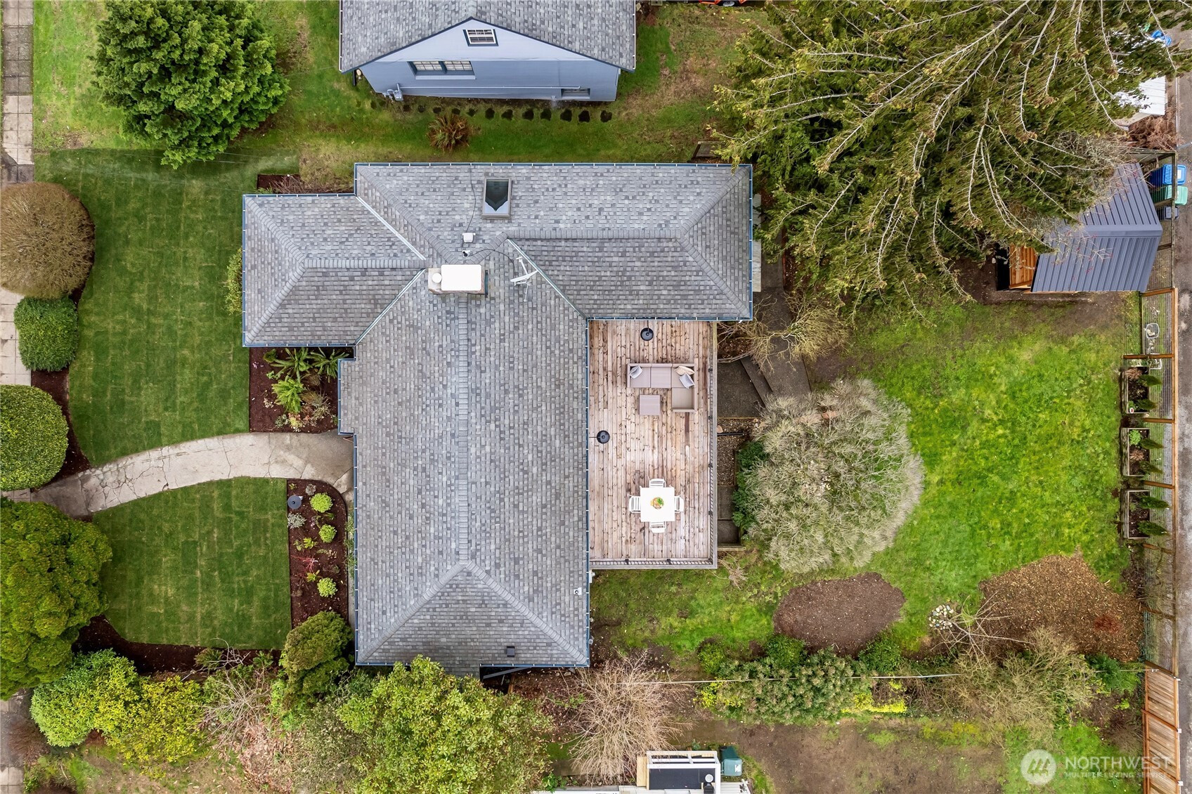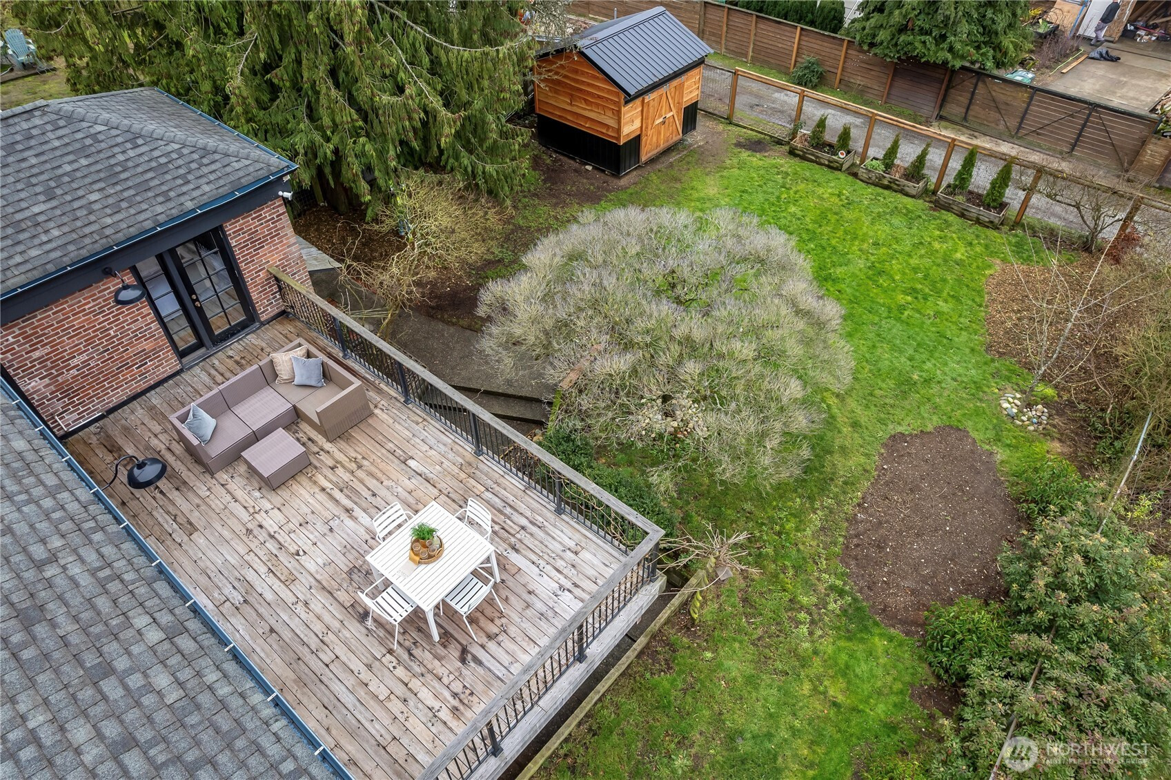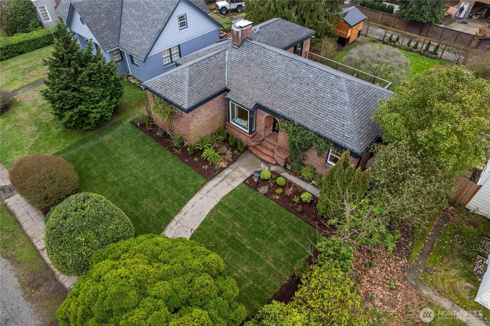 Broadview brick classic with timeless character & modern appeal. Original details pair effortlessly with thoughtful upgrades in a home designed for easy living & entertaining. Chef’s kitchen features Viking gas range, limestone slab, live-edge shelves. The light-filled living and dining spaces with French doors open to a generous deck overlooking a private backyard w/ mature landscaping, grassy lawn and room to garden & play. The primary suite delivers a magazine-worthy bathroom with marble, slate & brass details. Daylight basement has flexible bonus space w/ access to a weather-proof patio and convenient built-ins. Have peace of mind with updated plumbing, electrical & new sewer line. Fenced backyard, Cedar shed, sprinkler & alley access w/DADU potential. Located on a quiet street in the heart of Broadview close to parks, schools & neighborhood favorites. Pre-inspected.