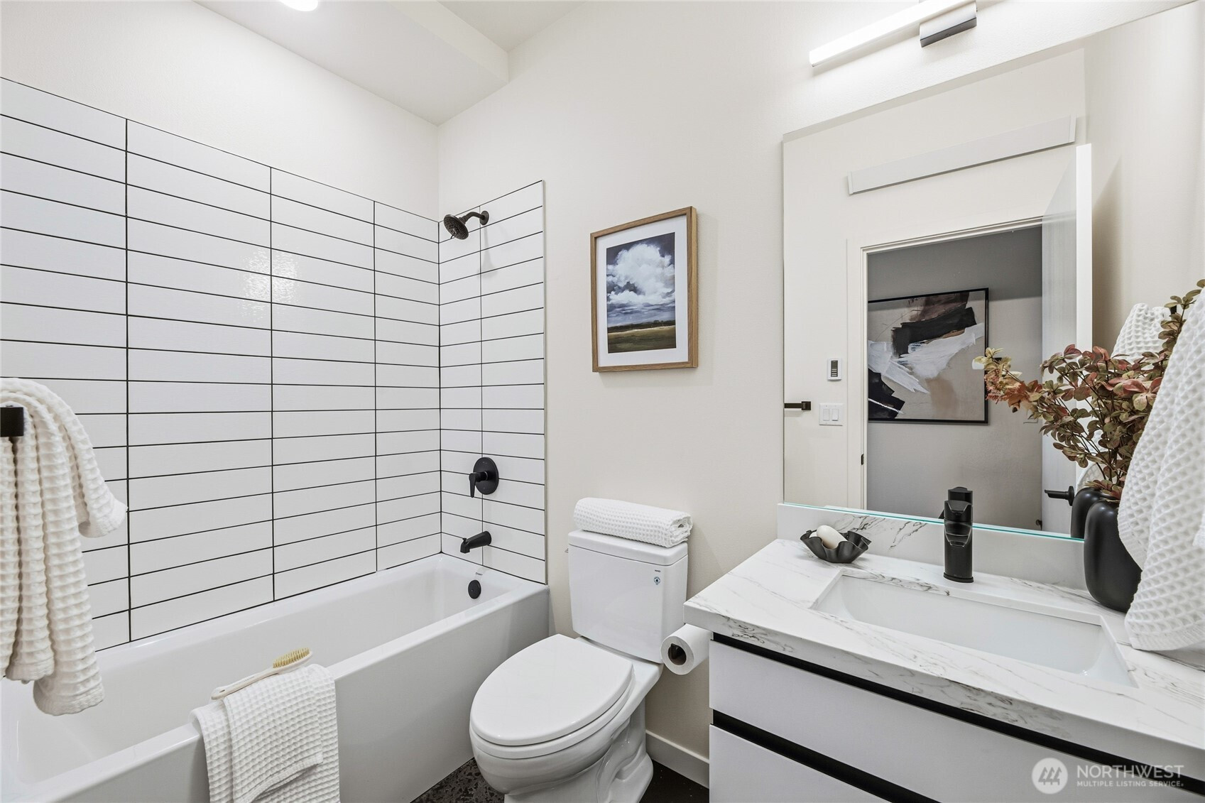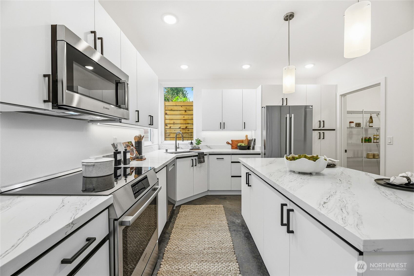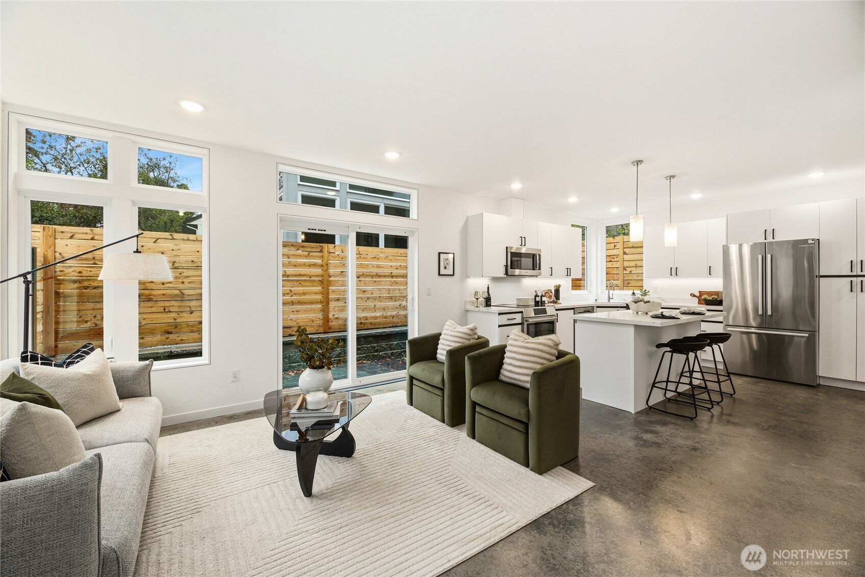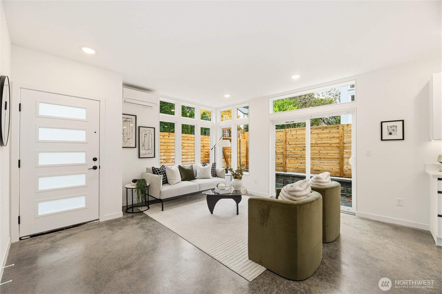 Experience the ultimate in modern Seattle living...This stunning ight-filled new construction home offers generous living spaces, a gourmet kitchen, spa-inspired bathrooms & a sunny west-facing deck. Built with quality and modern aesthetics in mind, this home provides the ideal blend of comfort and style. Ample garage w/ EV Charger. Plus an attached permitted ADU with separate entrance. Live comfortably in the main residence while generating substantial rental income from the ADU, perfect for offsetting your mortgage or providing a private suite for extended guests. Nestled on a tranquil street, just minutes away from the Interurban Trail, Greenwood & Phinney Ridge. This property is more than a home—it's a smart lifestyle investment!