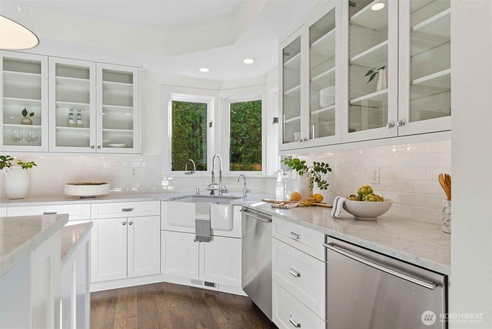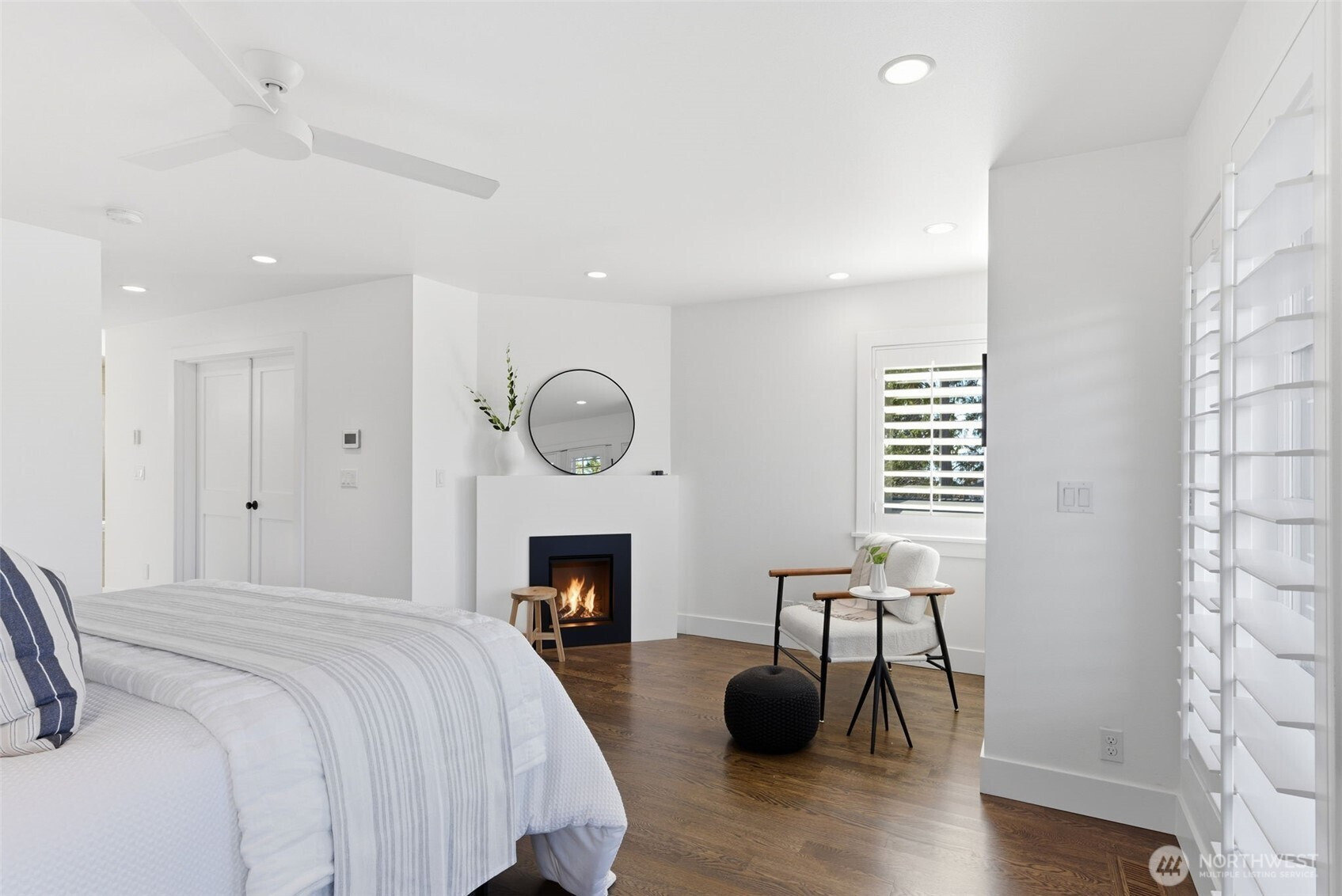 Pure Style, West of Market. An Iconic design in an idyllic storybook setting, poised high above the street for watercolor sunsets and slices of Lake Washington views, an enviable 2 blocks to Waverly Beach. Designed by boutique firm Peter Swindley Architects with a focus on character + materials: Metal-Clad Windows, Hand-Nailed Clear Cedar Siding, White Oak Floors, Carrara Marble, Schoolhouse Electric Fixtures, Shaw’s Farm Sink, Waterworks Faucets, Custom Built-ins, Fully Fenced Yard, A/C, Generator, Bosch Security System, Central Vac, Sub Zero, Dacor Dual-Fuel Range, 2 Bosch DWs, Custom Closets, Wrap-Around Porch, 2 View Decks w/ concrete pedestal pavers + perimeter lighting, 2-Car Garage w/ EV Charging, Alley Access for maximum curb appeal. Light-filled upper-level Office/Nursery/Studio plus lower-level Bonus Room w/ surround prewire, mechanical room, + dedicated storage. Stunning living privacy walls of mature Yews, Emeralds, + Magnolias plus seasonal Incredi-Ball Hydrangeas + Peonies. Tranquil interior/insulated location within the West of Market neighborhood, affording quiet moments on the Covered Porch and easy jaunts to the Waterfront, Parks, Schools, Kirkland Urban, + all of Vibrant Downtown Kirkland. Enriched by the remarkable + unmatched West of Market Experience – annual events, wide streets, stunning views, no cut-throughs, gorgeous homes, + an uncommon neighborly spirit – this property is an ideal launch pad, and a haven, for all your adventures and celebrations.