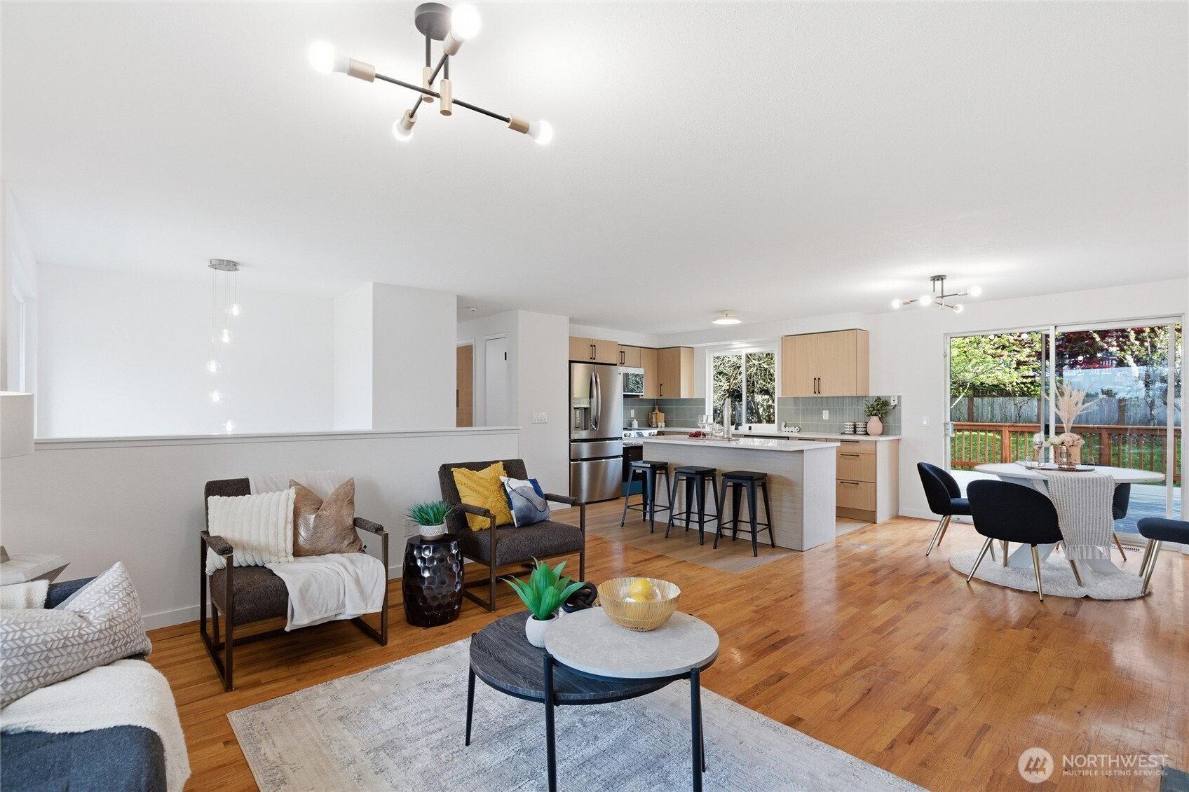 Elevated Living in Scenic Hill – This meticulously remastered 3-bedroom, 2-bathroom home delivers modern luxury at every turn. The designer kitchen showcases gleaming quartz countertops, contemporary flat panel cabinets, and stainless steel appliances, while the open-concept layout flows seamlessly throughout. Entertain on your sun-drenched deck or relax in the private backyard—rare outdoor space you won't find in cookie-cutter homes. Beautifully updated bathrooms feature luxurious custom designed tile work. Entire home is complemented by fresh paint as well as new and refinished hard surface flooring throughout. Low maintenance metal roof and new windows. The spacious 2-car garage can also be a home gym or extra work space, plus driveway offers abundant parking, while the flexible lower-level layout with separate entry presents exciting house-hacking potential. Perfectly positioned with easy access to Kent Station, East Hill, Auburn, Tukwila, Renton and many shopping, employment and recreational opportunities. New zoning code in Kent allows for up to 4 homes on a lot (buyer to verify development potential). Pre-inspected and move-in ready—this is the refined, functional home you've been waiting for.