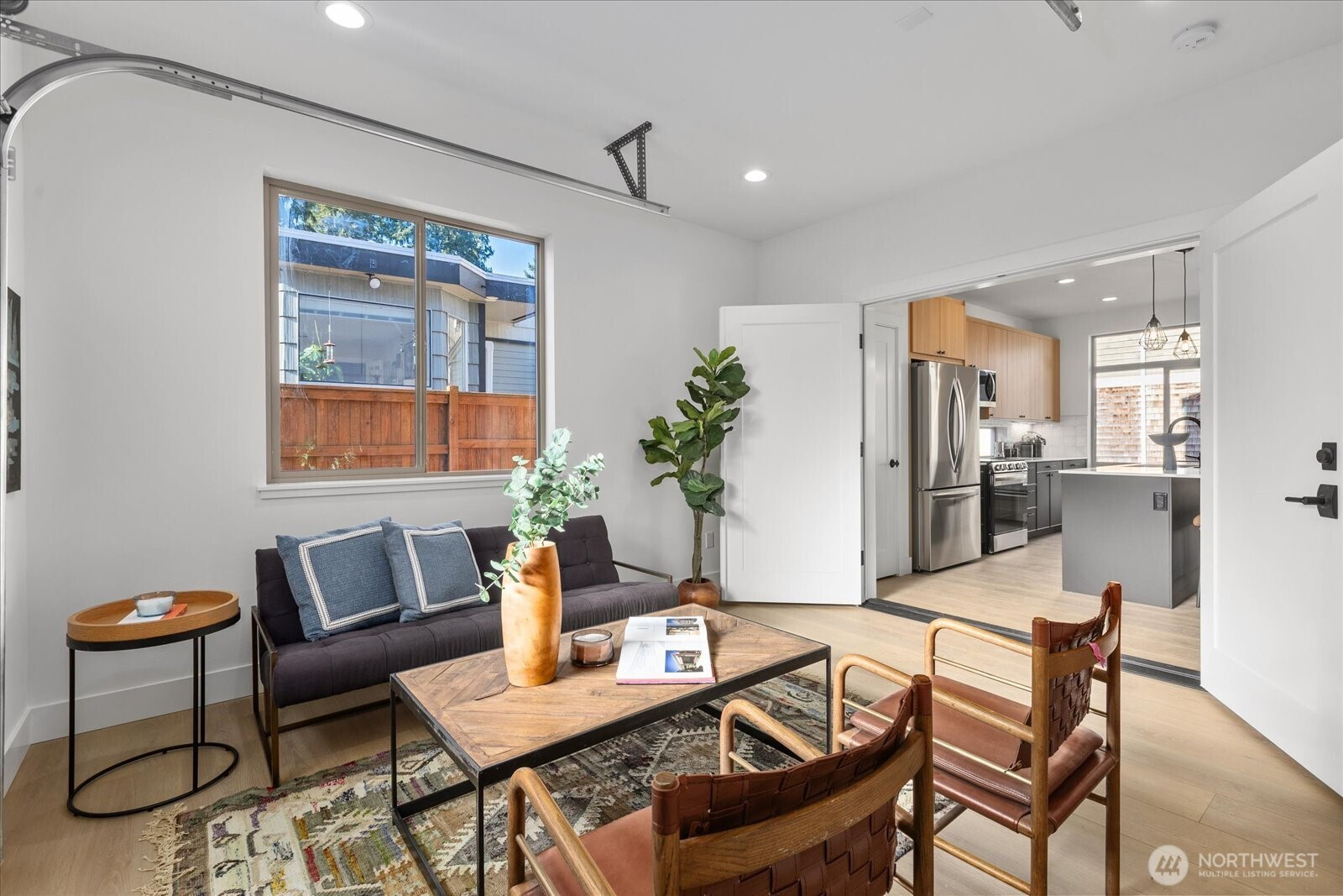 Experience sophisticated urban living in this stunning new construction home, where modern design meets effortless functionality. The heart of the home features a chef-inspired kitchen with sleek, dual-toned cabinetry, high-end stainless appliances, and expansive quartz countertops that flow into the light-filled living spaces. Retreat to the serene primary suite, boasting vaulted ceilings, a spacious walk-in closet, and a spa inspired ensuite bath.The versatile lower-level flex space could be used as a third bedroom, a home office, creative studio, or home gym. Outside, the private, low-maintenance fenced courtyard provides an intimate escape for relaxation or morning coffee. With designer fixtures, premium finishes, and a dedicated balcony for fresh air, this residence is perfectly tailored for the modern urban lifestyle. EV ready dedicated parking space included as well.