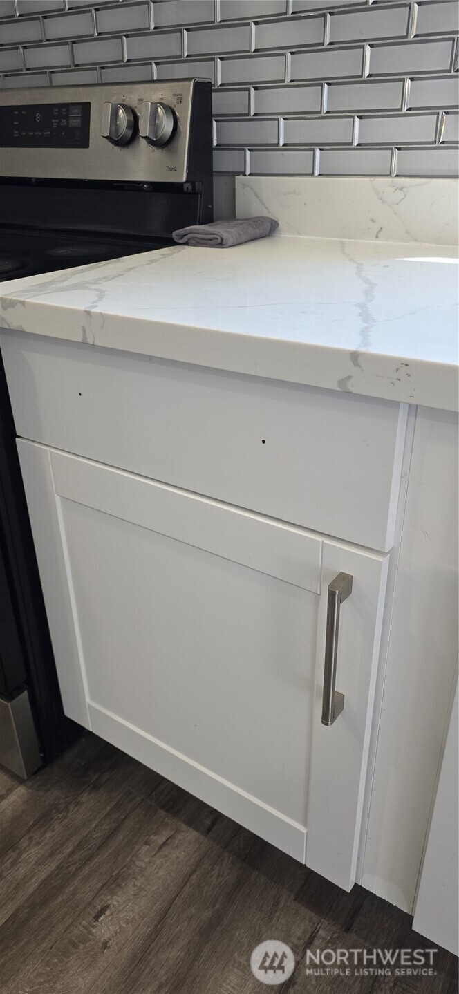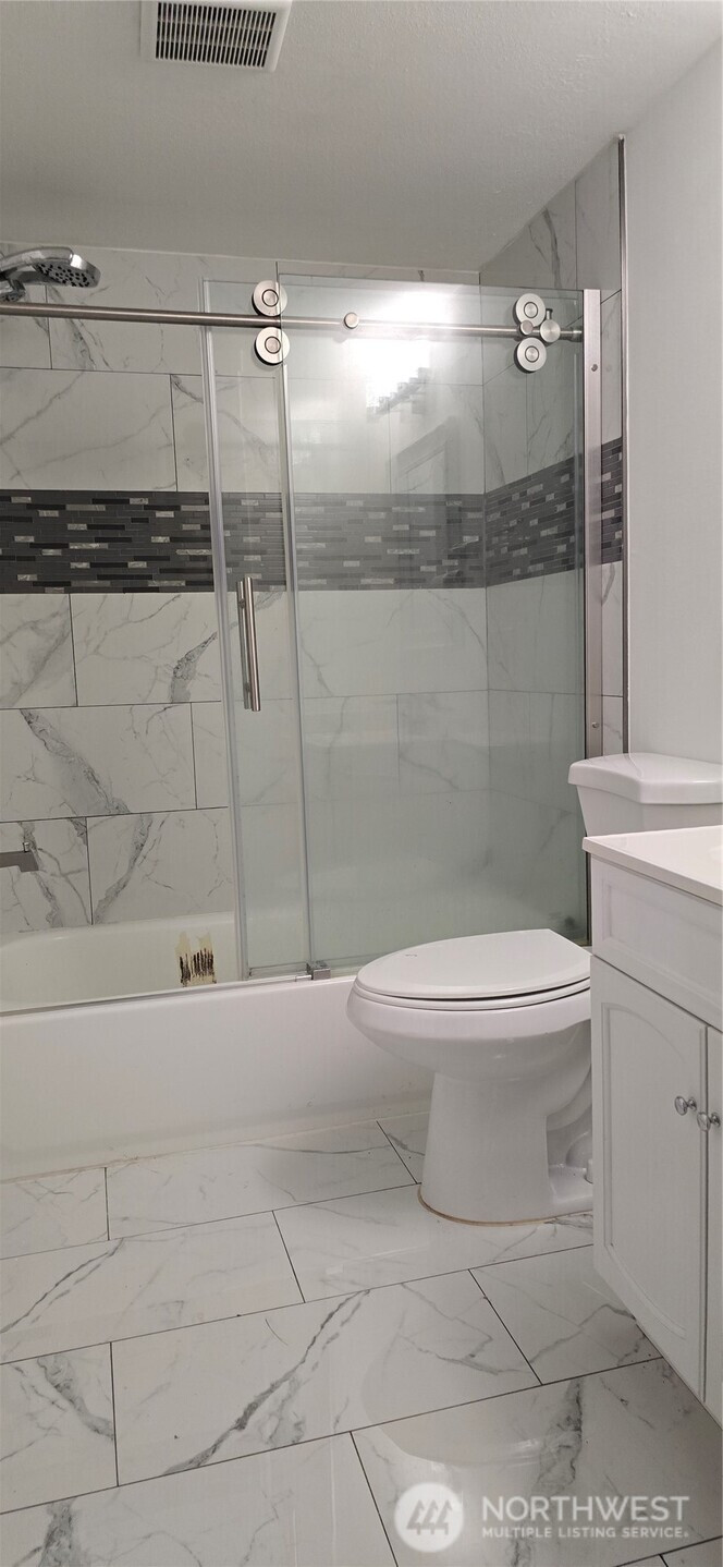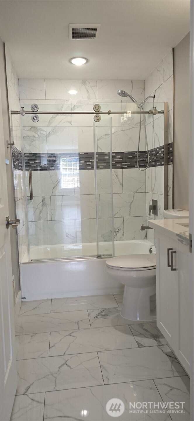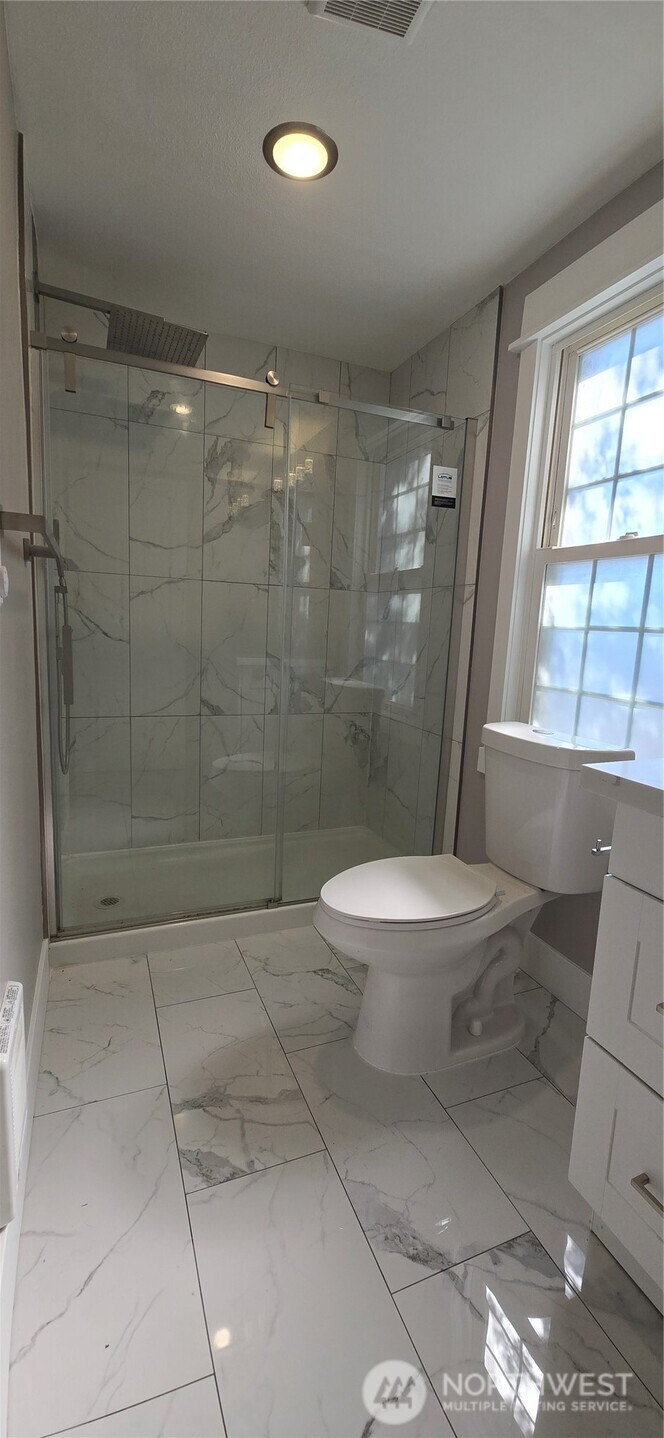 Completely remodeled in 2023, this house features 3 bedrooms and 2.75 bathrooms. The main level includes 2 bedrooms, an updated kitchen with stone countertops, and a laundry room. The downstairs area comprises 1 bedroom, a bonus room with a small kitchenette, a laundry space, and a full bathroom. 2023 upgrades include a new driveway, hardwood floors, new windows, and nearly new appliances. The property is conveniently located near an elementary school, bus routes, and shops. This home is not just beautiful; it also represents a strategic investment opportunity. Zoned R-48, the generously sized backyard and convenient side driveway entrance are ideal for building two Accessory Dwelling Units (ADUs), which offer significant development potential. Buyers should verify zoning details with the city.
