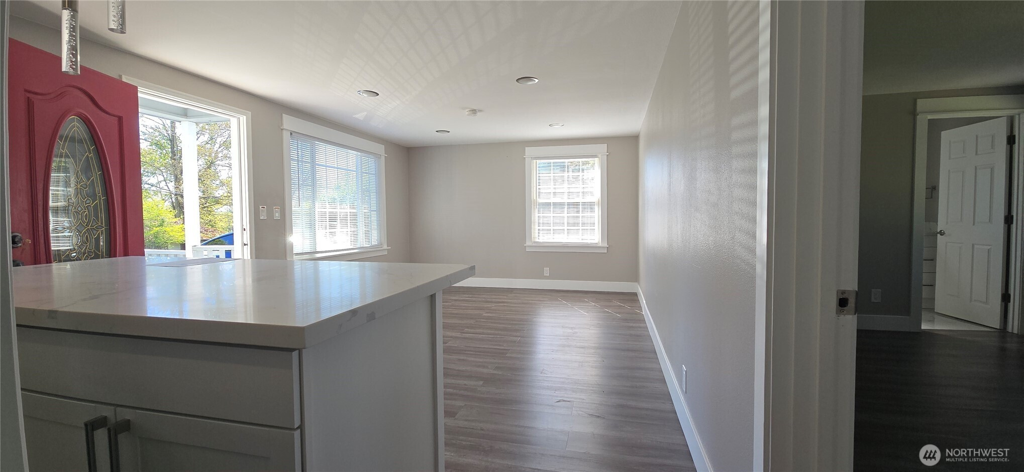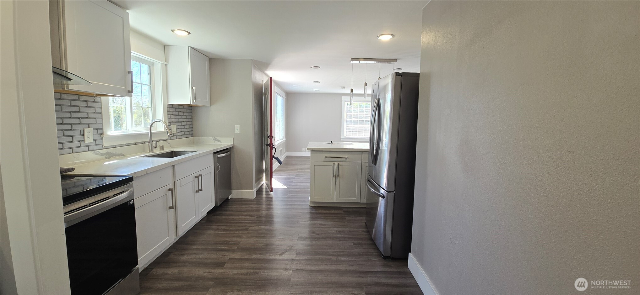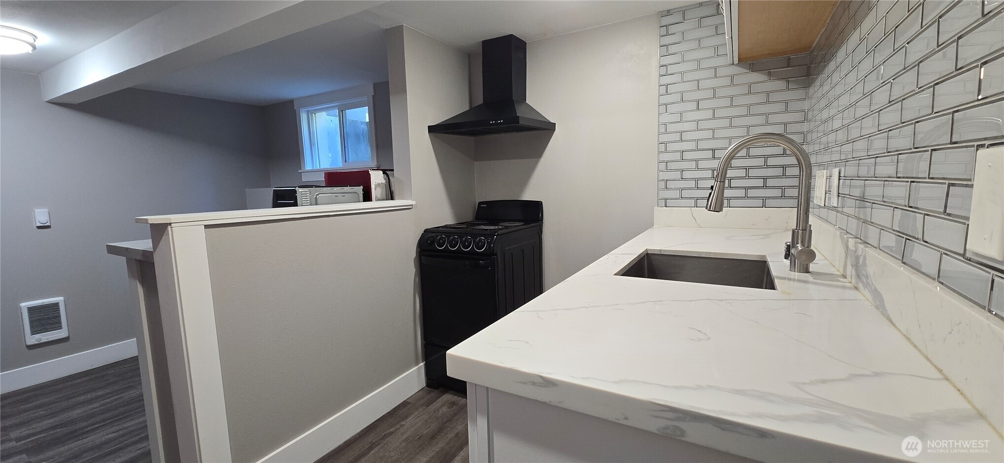 Completely remodeled in 2023, this house features 3 bedrooms and 2.75 bathrooms. The main level includes 2 bedrooms, an updated kitchen with stone countertops, and a laundry room. The downstairs area comprises 1 bedroom, a bonus room with a small kitchenette, a laundry space, and a full bathroom. 2023 upgrades include a new driveway, hardwood floors, new windows, and nearly new appliances. The property is conveniently located near an elementary school, bus routes, and shops. This home is not just beautiful; it also represents a strategic investment opportunity. Zoned R-48, the generously sized backyard and convenient side driveway entrance are ideal for building two Accessory Dwelling Units (ADUs), which offer significant development potential. Buyers should verify zoning details with the city.