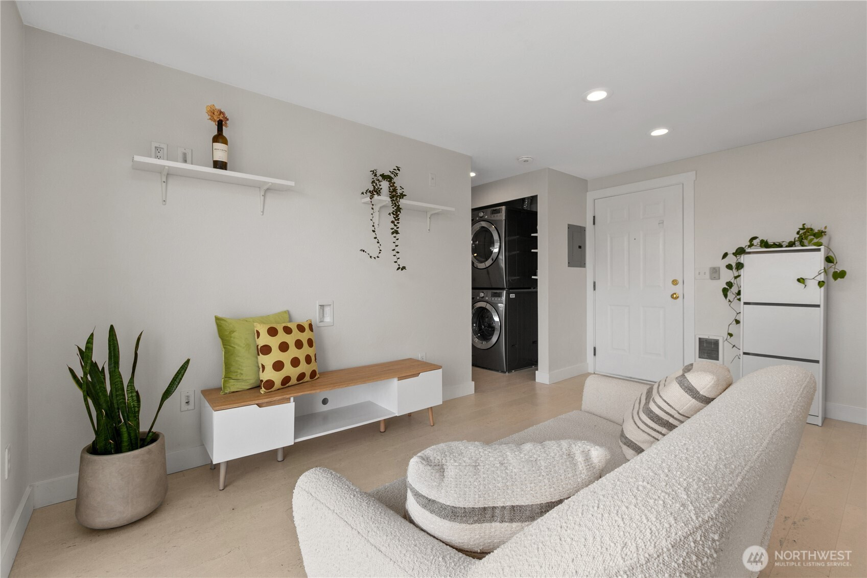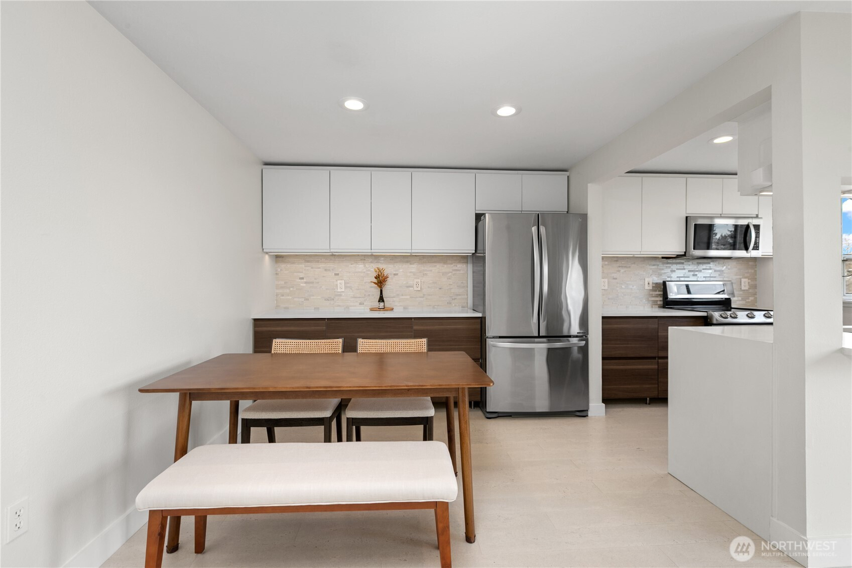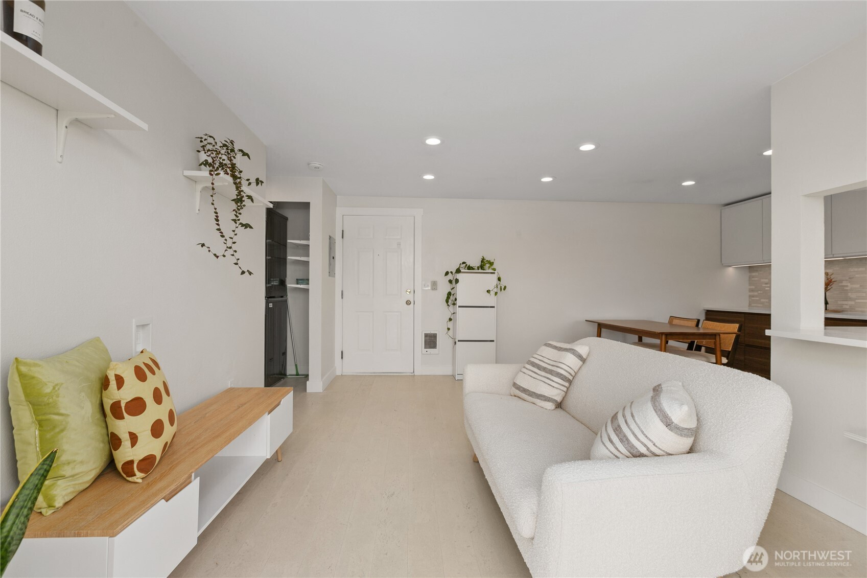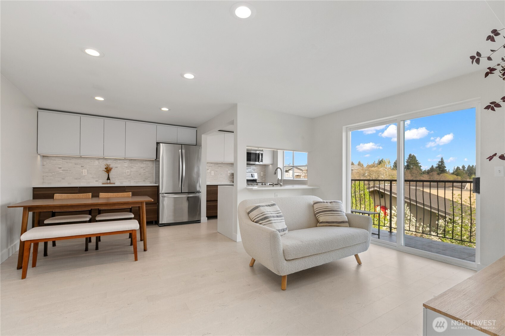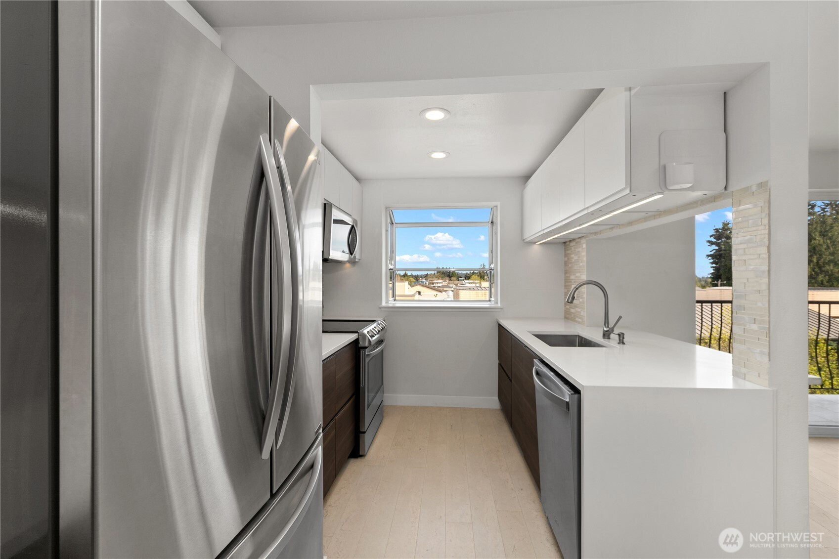 Crisp, sharp, modern top-floor unit with nice updates and lots of natural light! Open flow kitchen and living area allow for flexible use and opens to the balcony. Ample storage with soft-close drawers and plenty of countertop space for cooking and entertaining. Features like “under cabinet lighting” and a touchless kitchen faucet top it off. Nicely appointed bath and built-in storage system in the bedroom. Secure parking garage. Convenient location within reach of shopping, freeway, Metro and Light Rail.