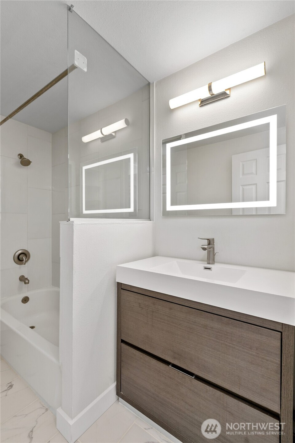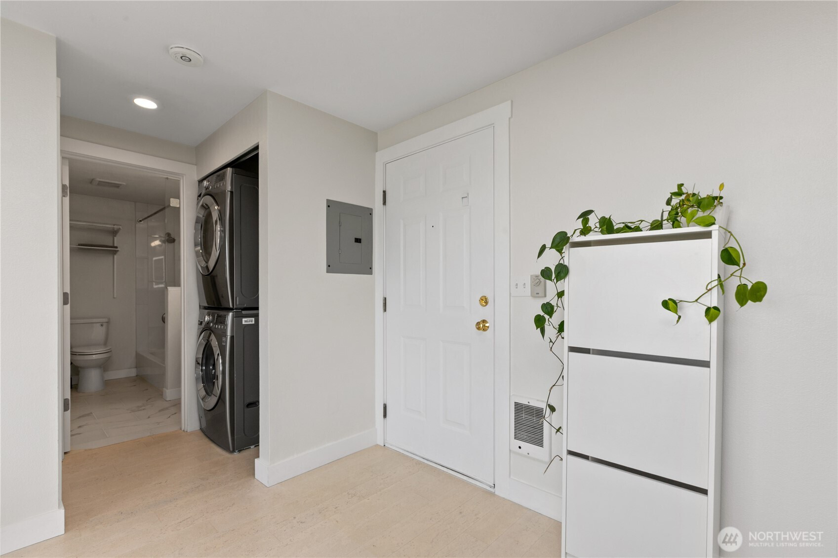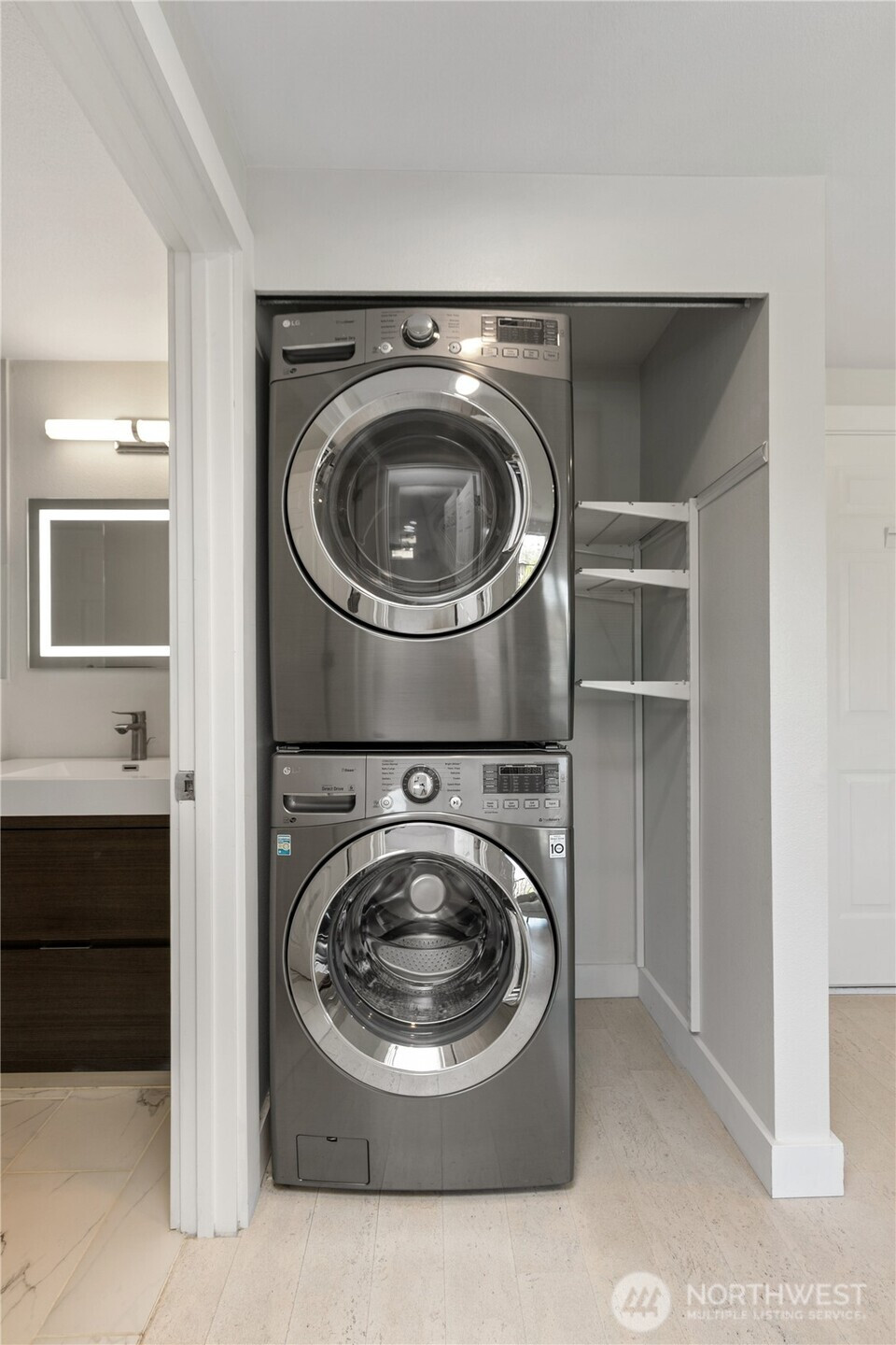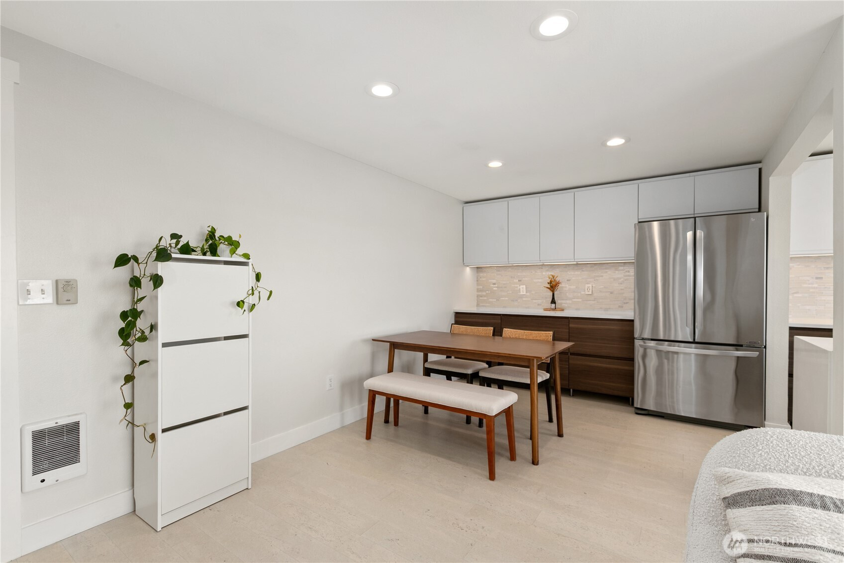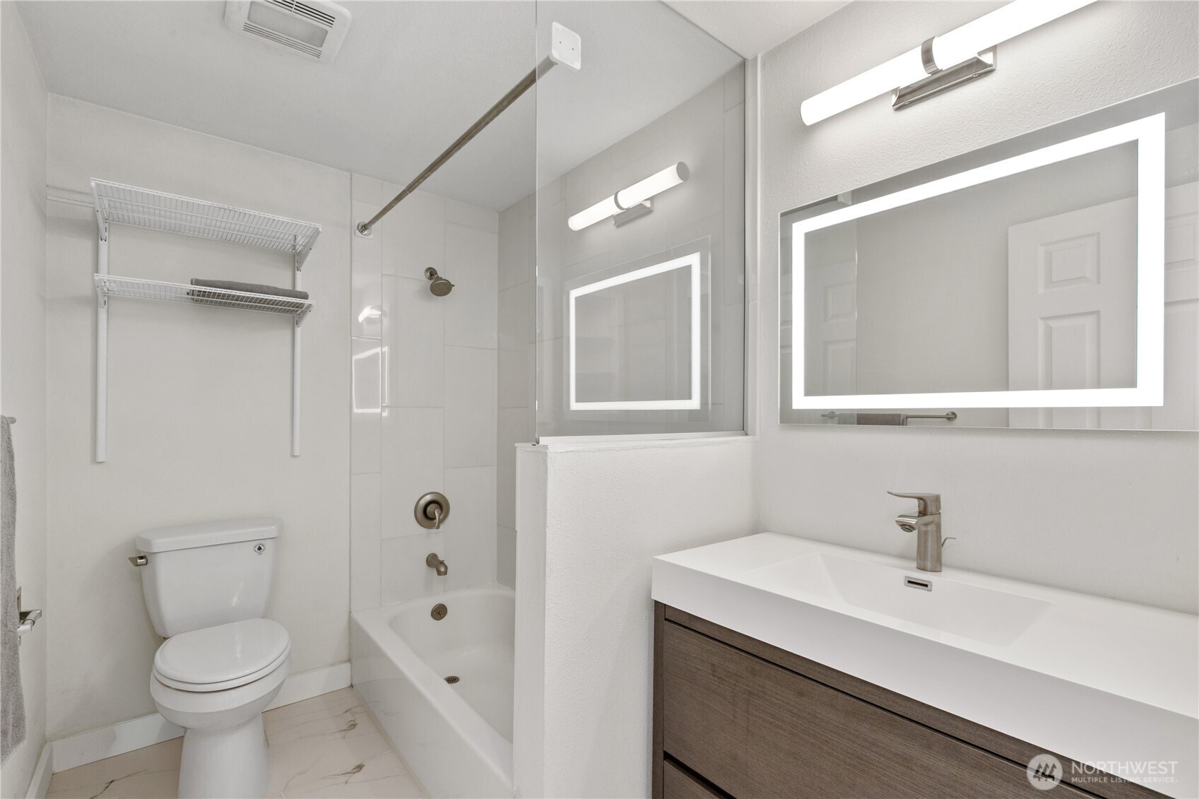 Crisp, sharp, modern top-floor unit with nice updates and lots of natural light! Open flow kitchen and living area allow for flexible use and opens to the balcony. Ample storage with soft-close drawers and plenty of countertop space for cooking and entertaining. Features like “under cabinet lighting” and a touchless kitchen faucet top it off. Nicely appointed bath and built-in storage system in the bedroom. Secure parking garage. Convenient location within reach of shopping, freeway, Metro and Light Rail.