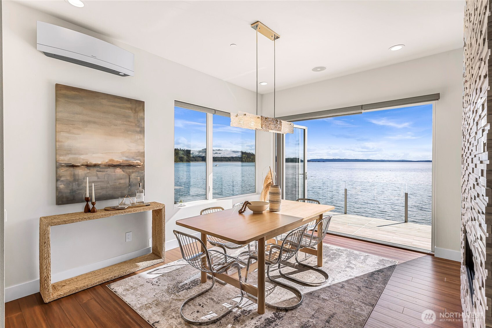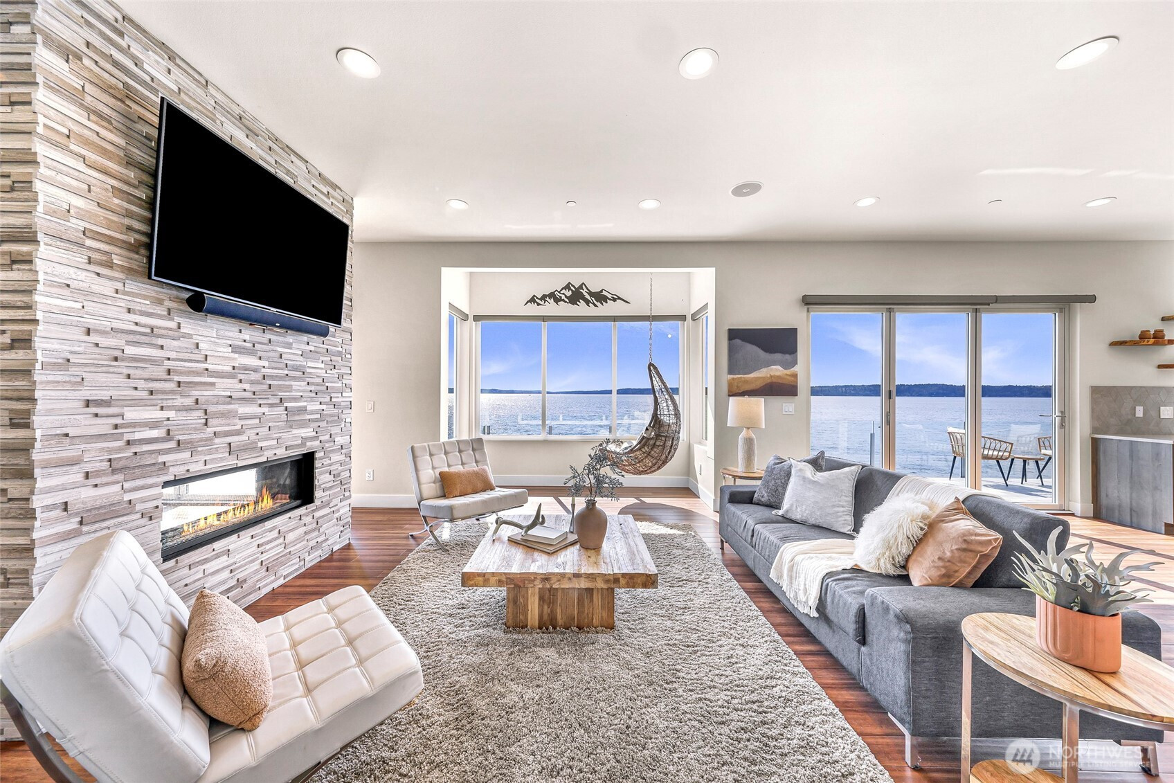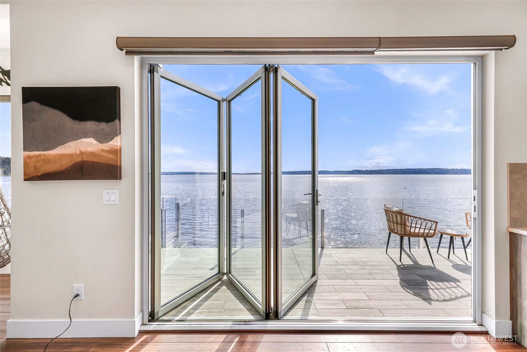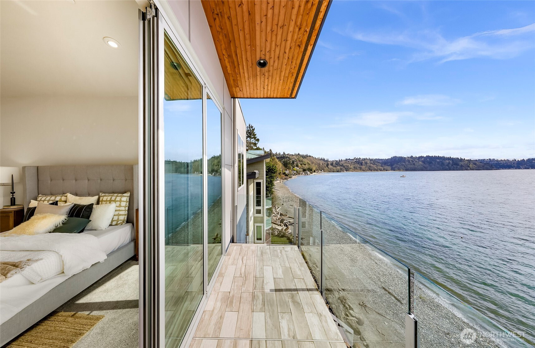 Experience the pinnacle of refined coastal elegance in this rare waterfront masterpiece. Nestled within the highly coveted Shorewood on the Sound's gated 12-home enclave, this masterpiece offers an unparalleled connection to the PNW landscape. With 62 feet of pristine low-bank shoreline and a semi-private boat ramp, your transition from morning coffee to the shimmering waters of Puget Sound is effortless. Step inside to a world of architectural brilliance where NanaWall systems dissolve the boundaries between the sophisticated interior and the breathtaking vistas outside. The heart of the home is a culinary sanctuary, featuring a premium Bluestar range, dual dishwashers, and double sinks, perfect for hosting grand soirées or intimate sunset dinners. Engineered for ultimate flexibility and extremely energy efficient, the entire 1,000 sq. ft. first floor, comprising three spacious bedrooms, functions as an optional bonus wing. Whether utilized as a guest sanctuary or kept as quiet "bonus" space, every room features individual heat exchangers, allowing you to curate the climate and energy use of each square inch of the home. From the soundproofed office and elevator-ready design to the heated bathroom floors and expansive garage with EV charging, no detail has been overlooked. This is a residence that scales to your lifestyle: a waterfront estate with the soul and efficiency of a modern retreat. Welcome home to the future of luxury.