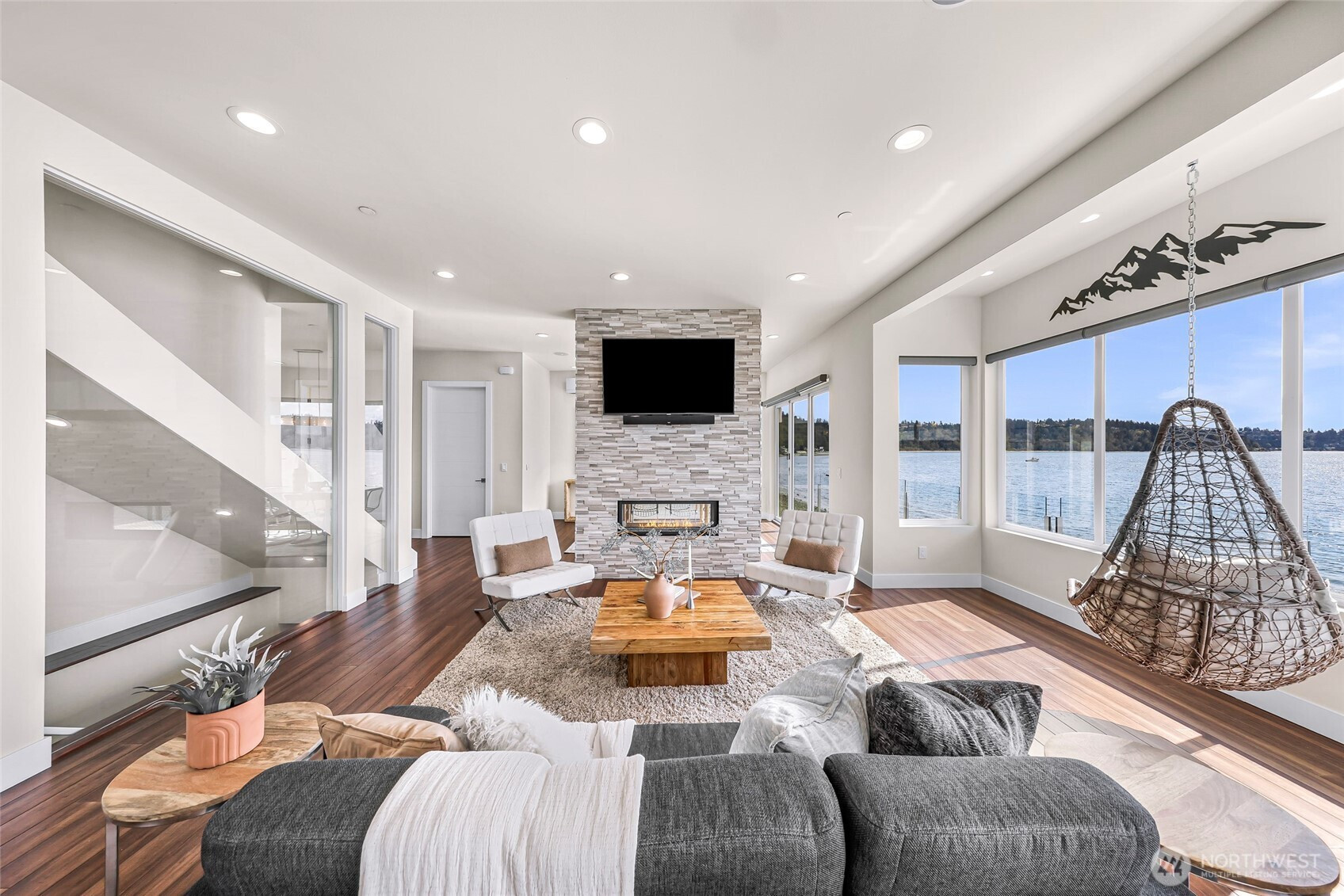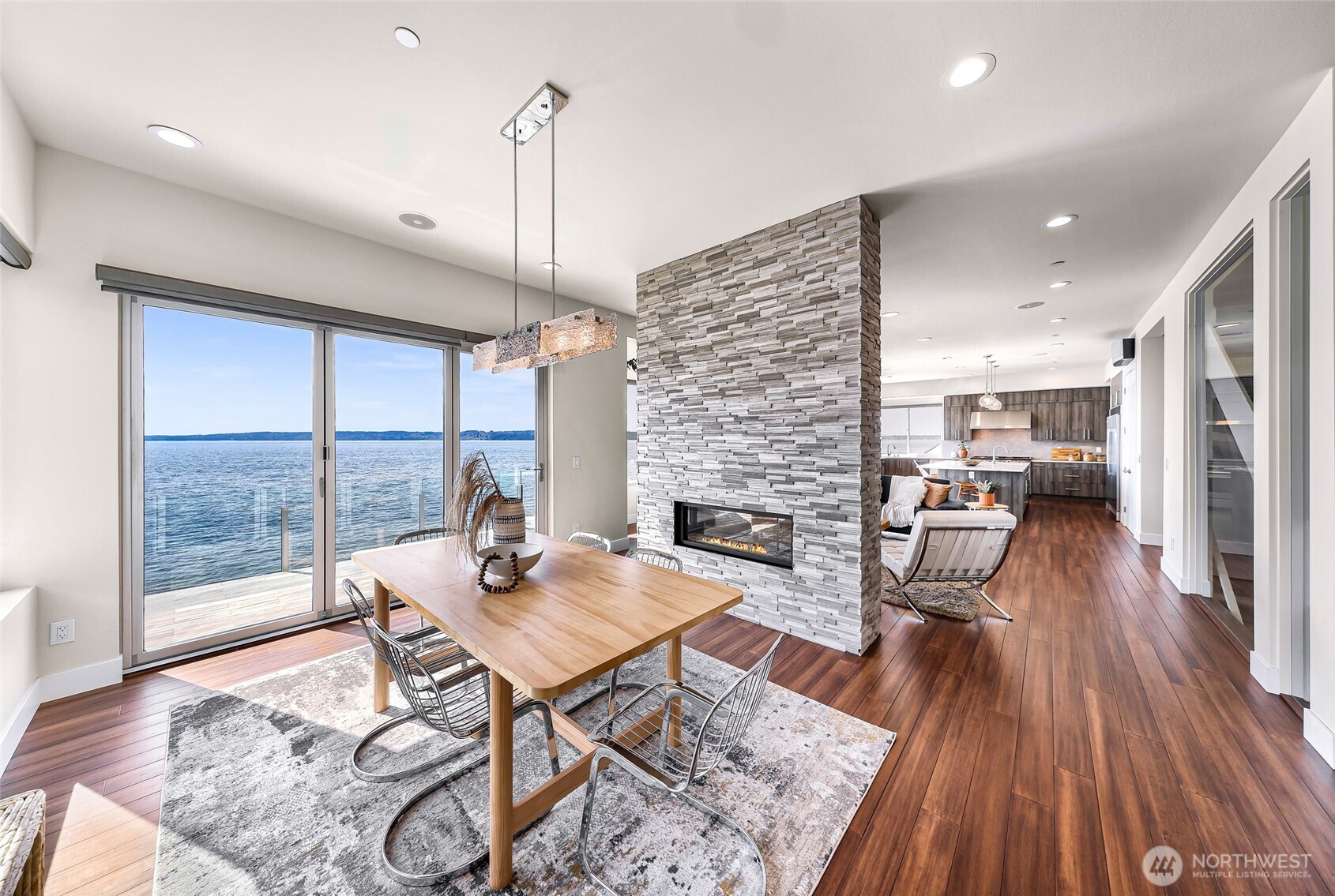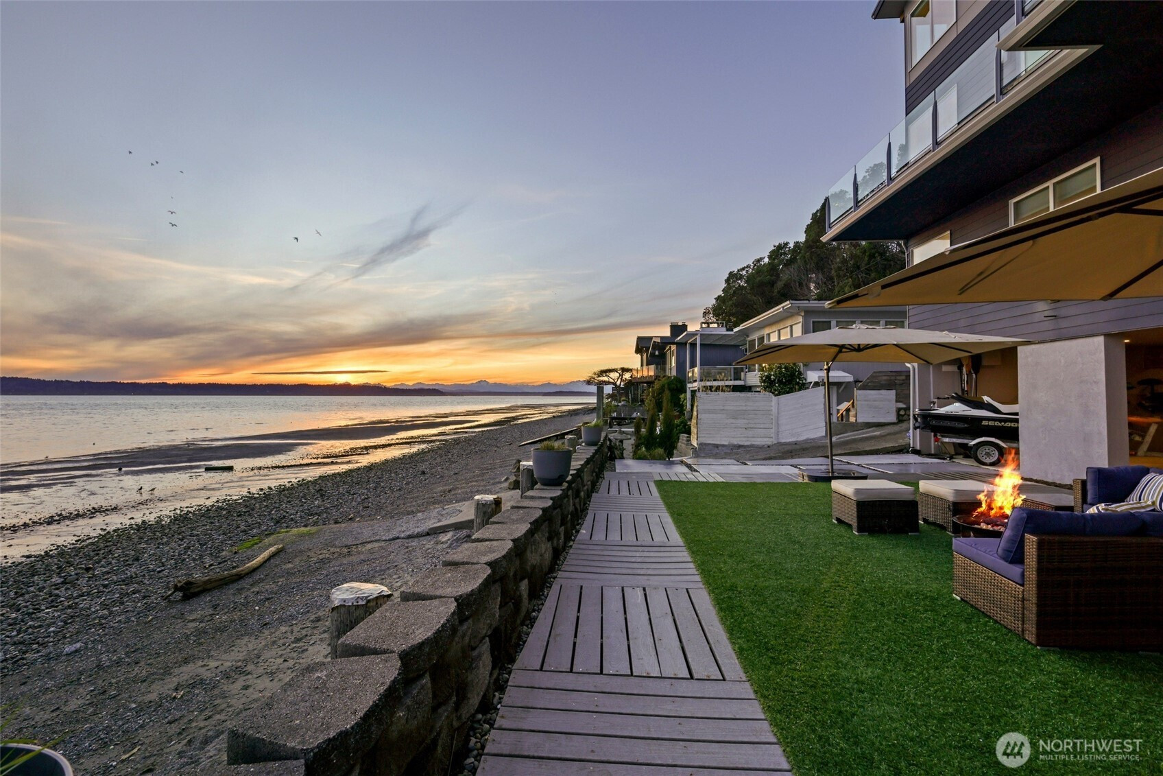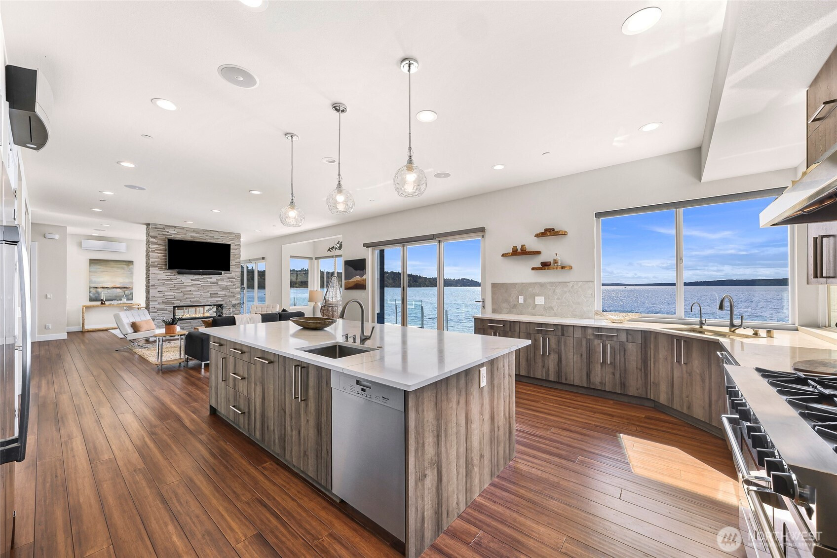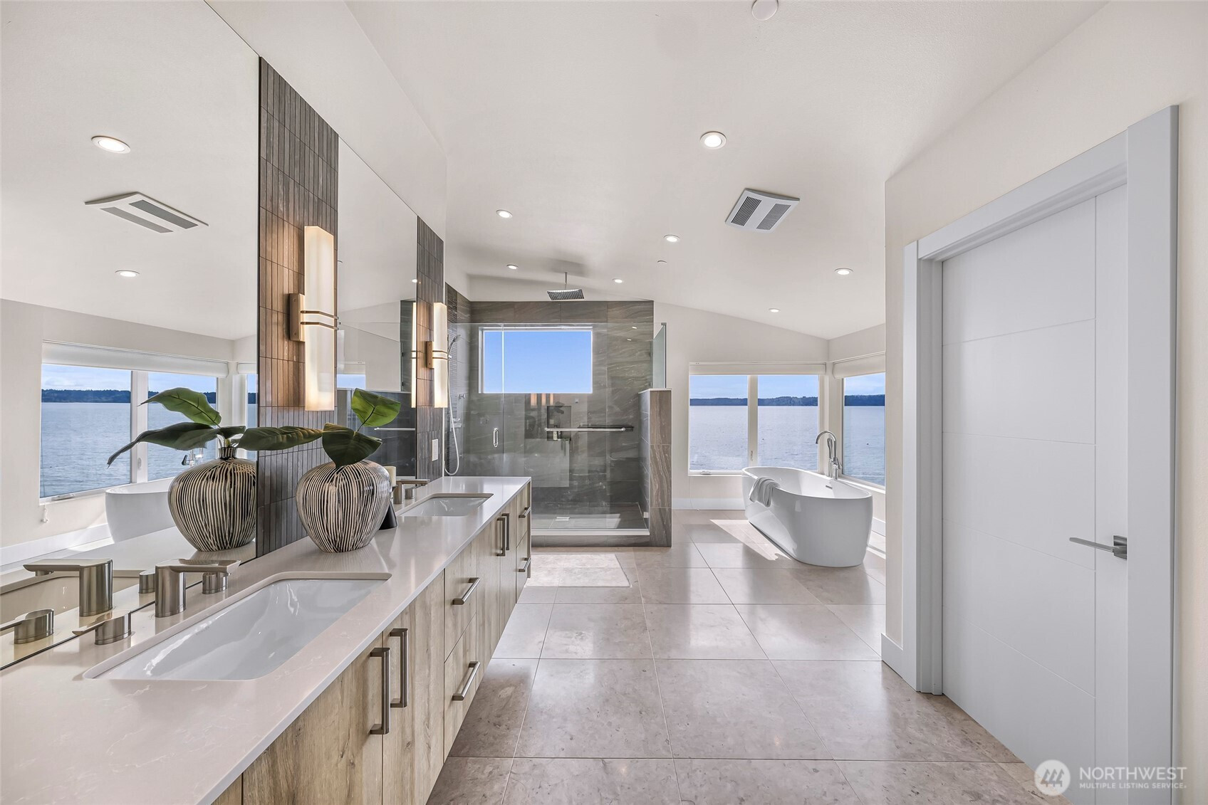 Experience the pinnacle of refined coastal elegance in this rare waterfront masterpiece. Nestled within the highly coveted Shorewood on the Sound's gated 12-home enclave, this masterpiece offers an unparalleled connection to the PNW landscape. With 62 feet of pristine low-bank shoreline and a semi-private boat ramp, your transition from morning coffee to the shimmering waters of Puget Sound is effortless. Step inside to a world of architectural brilliance where NanaWall systems dissolve the boundaries between the sophisticated interior and the breathtaking vistas outside. The heart of the home is a culinary sanctuary, featuring a premium Bluestar range, dual dishwashers, and double sinks, perfect for hosting grand soirées or intimate sunset dinners. Engineered for ultimate flexibility and extremely energy efficient, the entire 1,000 sq. ft. first floor, comprising three spacious bedrooms, functions as an optional bonus wing. Whether utilized as a guest sanctuary or kept as quiet "bonus" space, every room features individual heat exchangers, allowing you to curate the climate and energy use of each square inch of the home. From the soundproofed office and elevator-ready design to the heated bathroom floors and expansive garage with EV charging, no detail has been overlooked. This is a residence that scales to your lifestyle: a waterfront estate with the soul and efficiency of a modern retreat. Welcome home to the future of luxury.