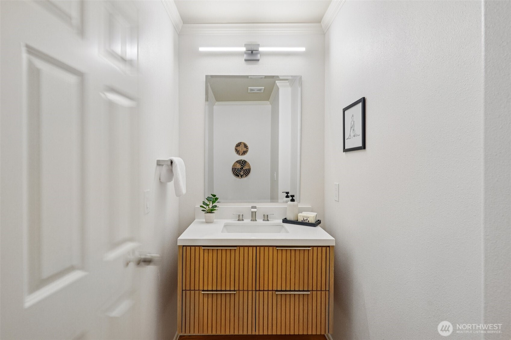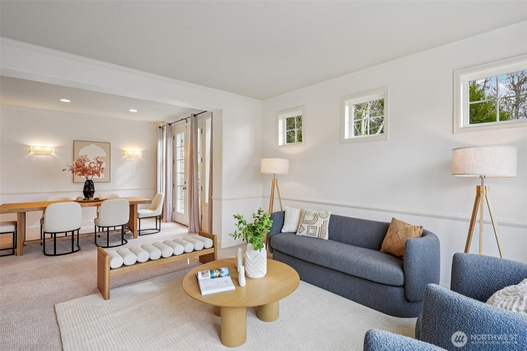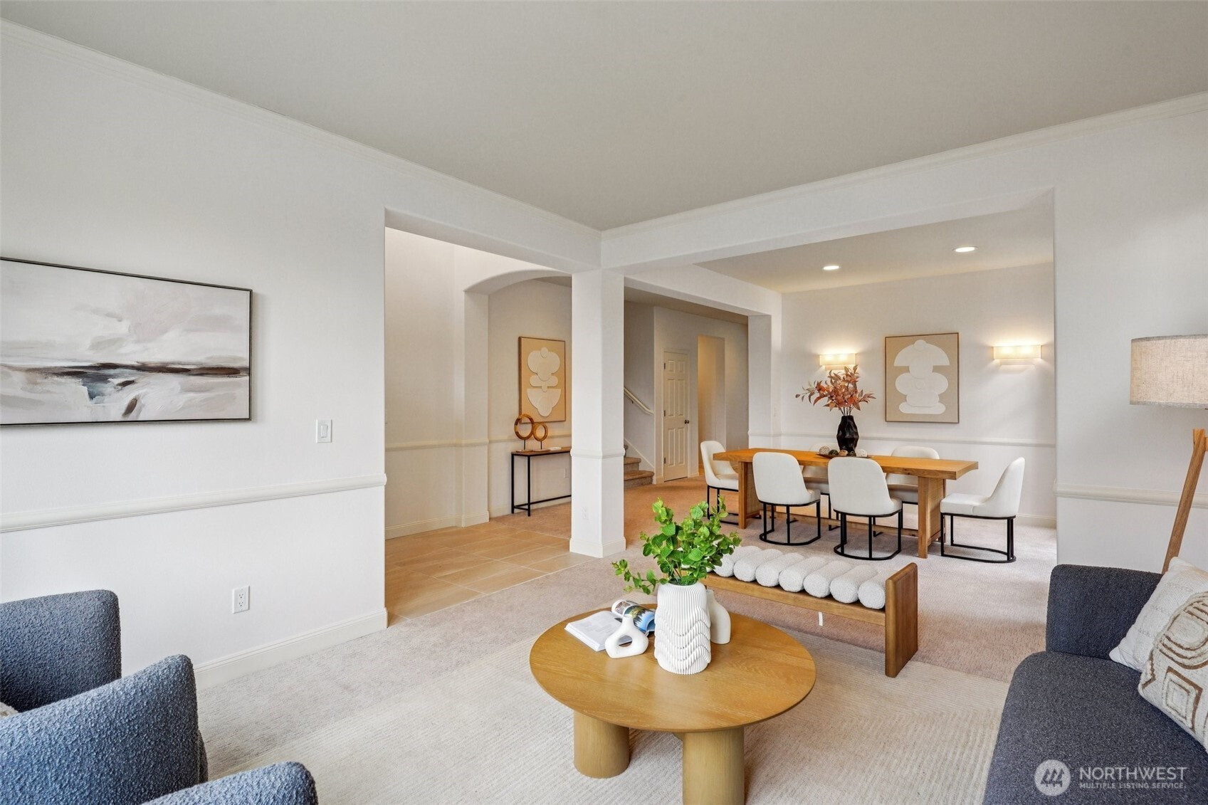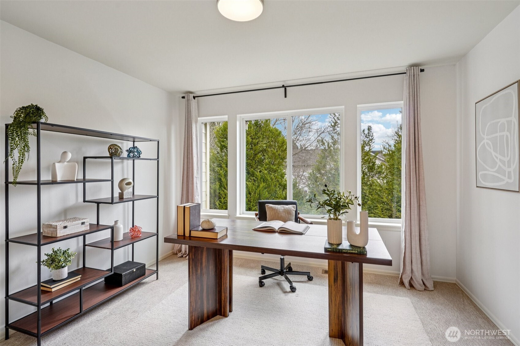 Fully renovated Redmond home redesigned with Scandinavian simplicity blended with modern Pacific Northwest style, featuring clean lines, natural materials, and bright, open living spaces. Large windows fill the home with natural light, creating warm and inviting spaces throughout the day. Step inside to a bright interior anchored by a dramatic entry and staircase feature wall that immediately sets the tone for the home’s thoughtful design. At the heart of the home is a fully renovated kitchen with an open-concept layout, featuring a large island with bar seating, quartz countertops, new appliances, and updated cabinetry—all designed for gathering, entertaining, and everyday living. The primary suite offers a spa-inspired bathroom with a marble shower and oversized soaking tub, complemented by hardwood and quartz dual vanities, creating a peaceful retreat. Guest bathrooms continue the same refined design with hardwood and quartz vanities and updated flooring. The 3,184 sq ft layout includes five bedrooms and multiple flexible living spaces, including a media or bonus room, guest or home office, and a spacious family loft, along with a three-car attached garage. Situated on a 6,608 sq ft corner lot, the newly landscaped backyard provides privacy and features two patios designed for outdoor dining, entertaining, and summer gatherings. Major updates include a new roof, fully renovated kitchen and bathrooms, new appliances, and refreshed interior finishes throughout.