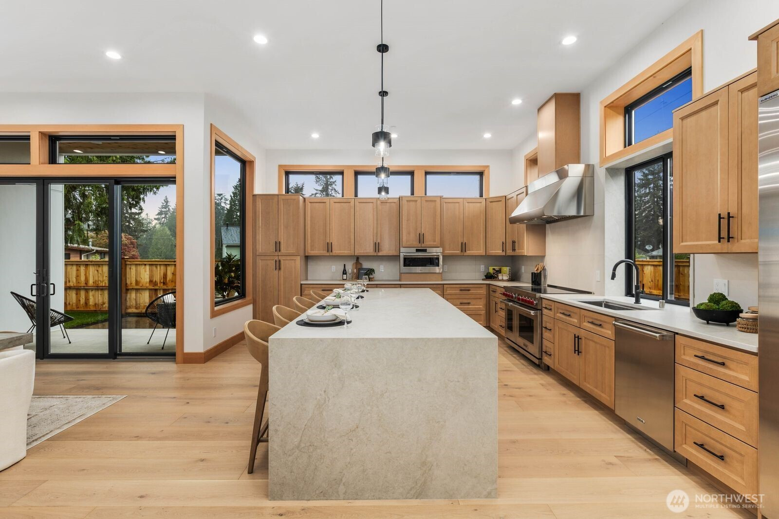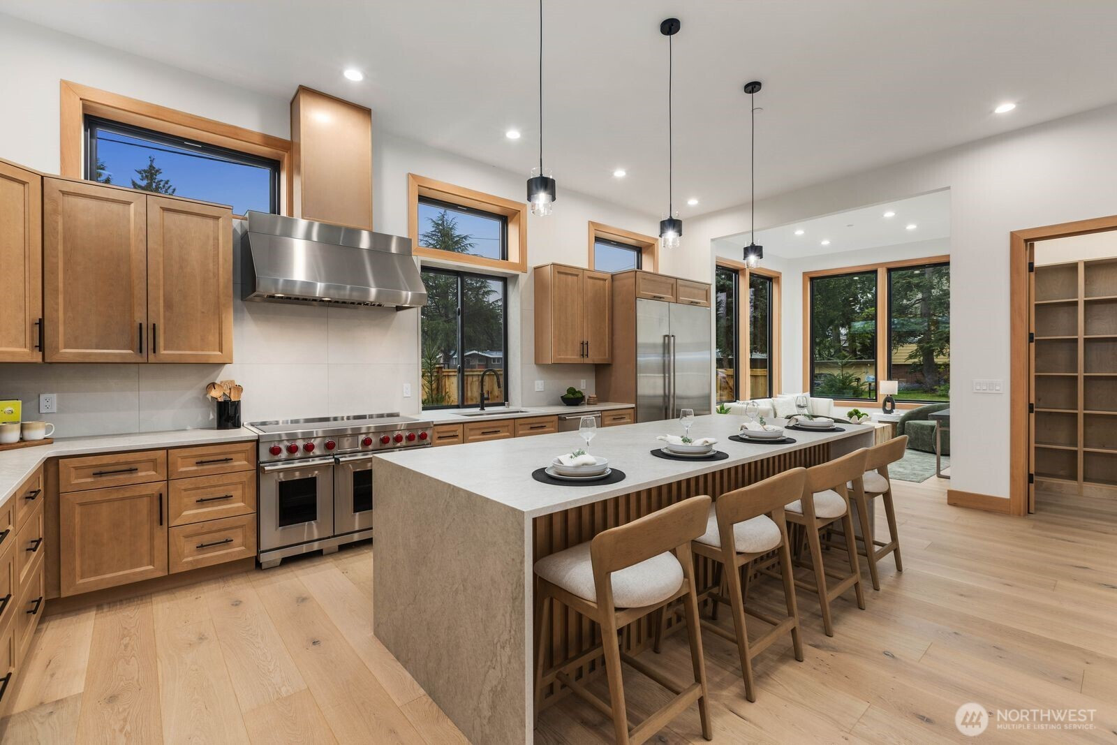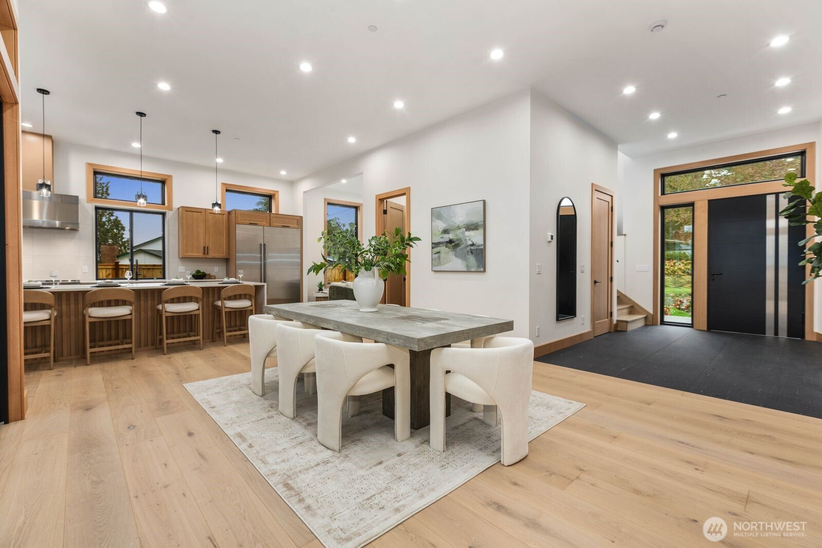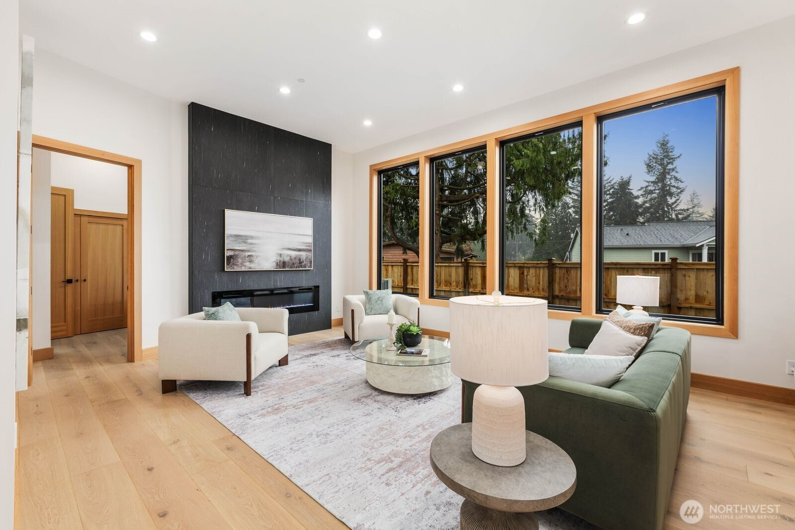 A rare expression of modern luxury in Bellevue’s coveted Lake Hills neighborhood. This new construction residence offers 4,214 sq ft of elevated living with soaring 12’ ceilings, expansive oversized windows that flood the east-facing home with natural light. The open concept design showcases a spectacular gourmet kitchen with Taj Mahal quartz countertops, Wolf appliances, Sub-Zero refrigerator, oversized island, and walk-in pantry flowing seamlessly into the dining and family rooms for effortless entertaining. Rich engineered hardwood and Italian porcelain tile span the home. Thoughtfully designed with 5 bedrooms plus an office and 5.25 baths, including a main level guest suite and flexible living spaces. Upstairs, the luxurious primary suite offers a serene retreat with a spa inspired bath, soaking tub, dual shower heads, heated towel warmer, and expansive walk-in closet. Built for modern comfort and efficiency with all electric systems, heat pump HVAC, ERV fresh air circulation, and a 50 year metal roof. Smart home & green features throughout, including solar panels, an EV-ready garage and fire sprinkler system. Enjoy a prime location just minutes to Downtown Bellevue with easy access to I-90 and I-405, parks, and top-rated schools.