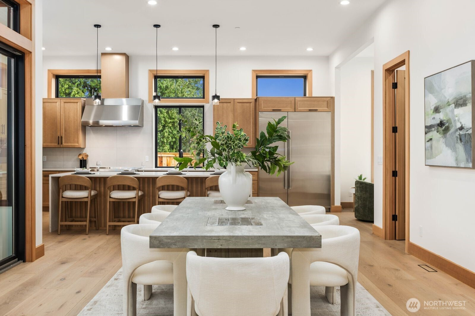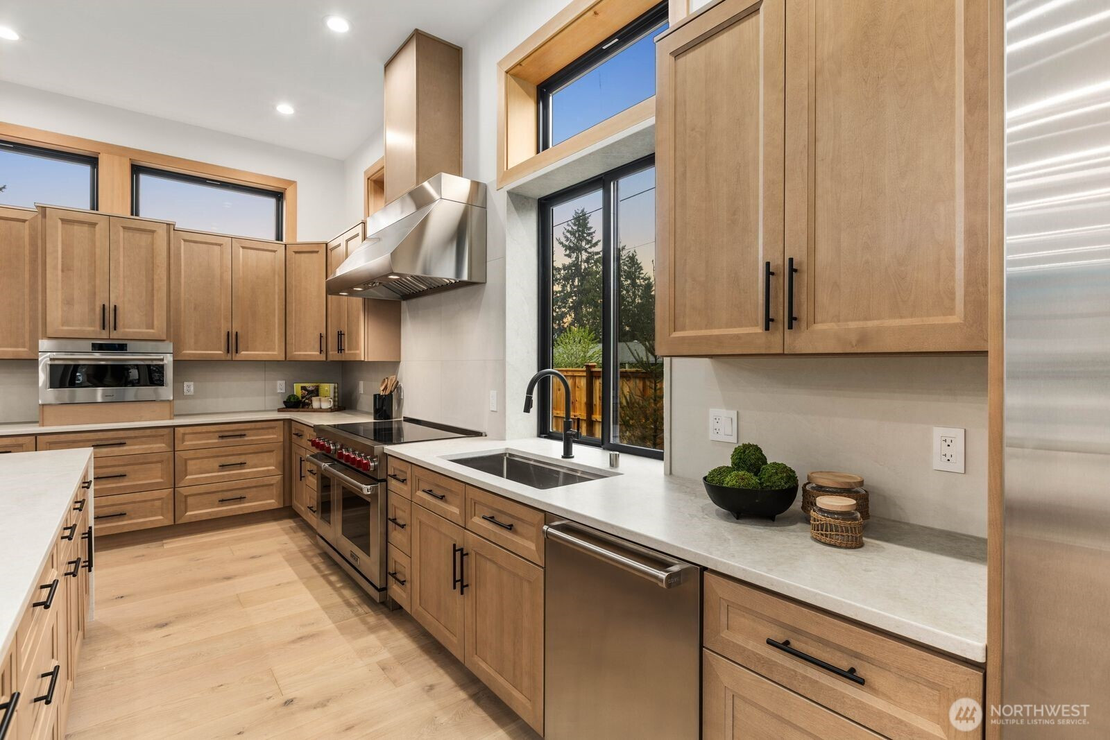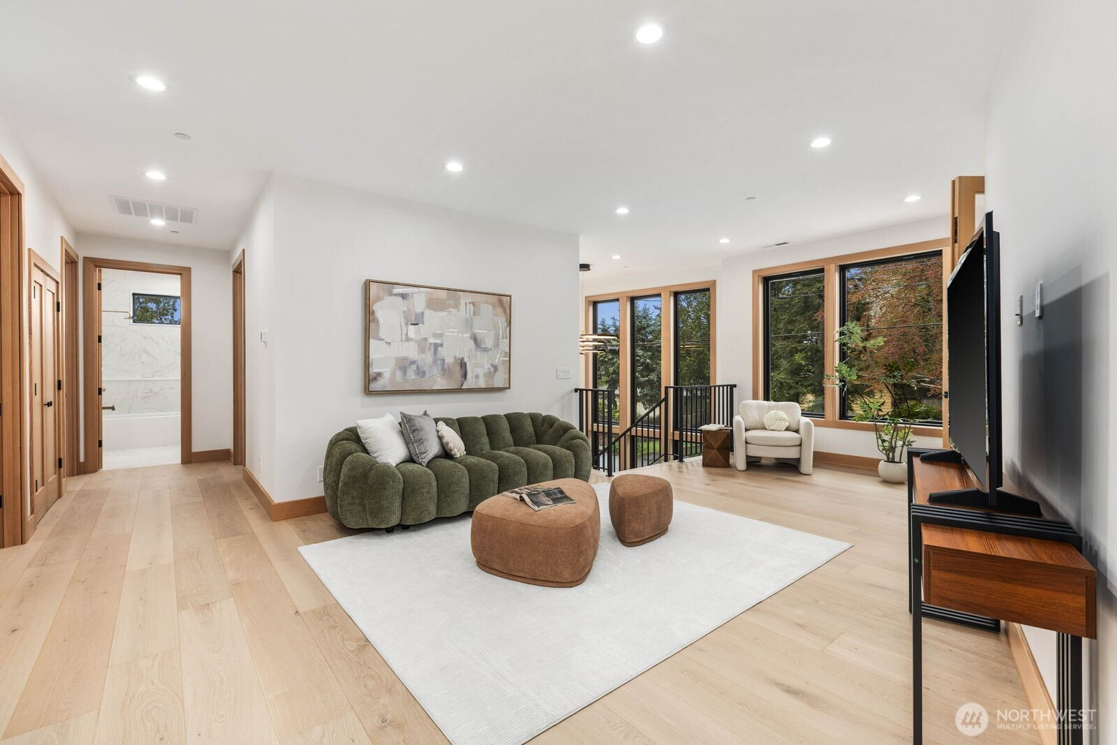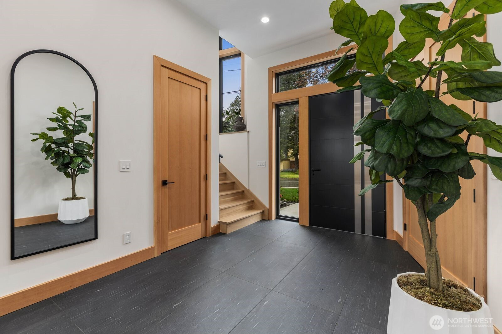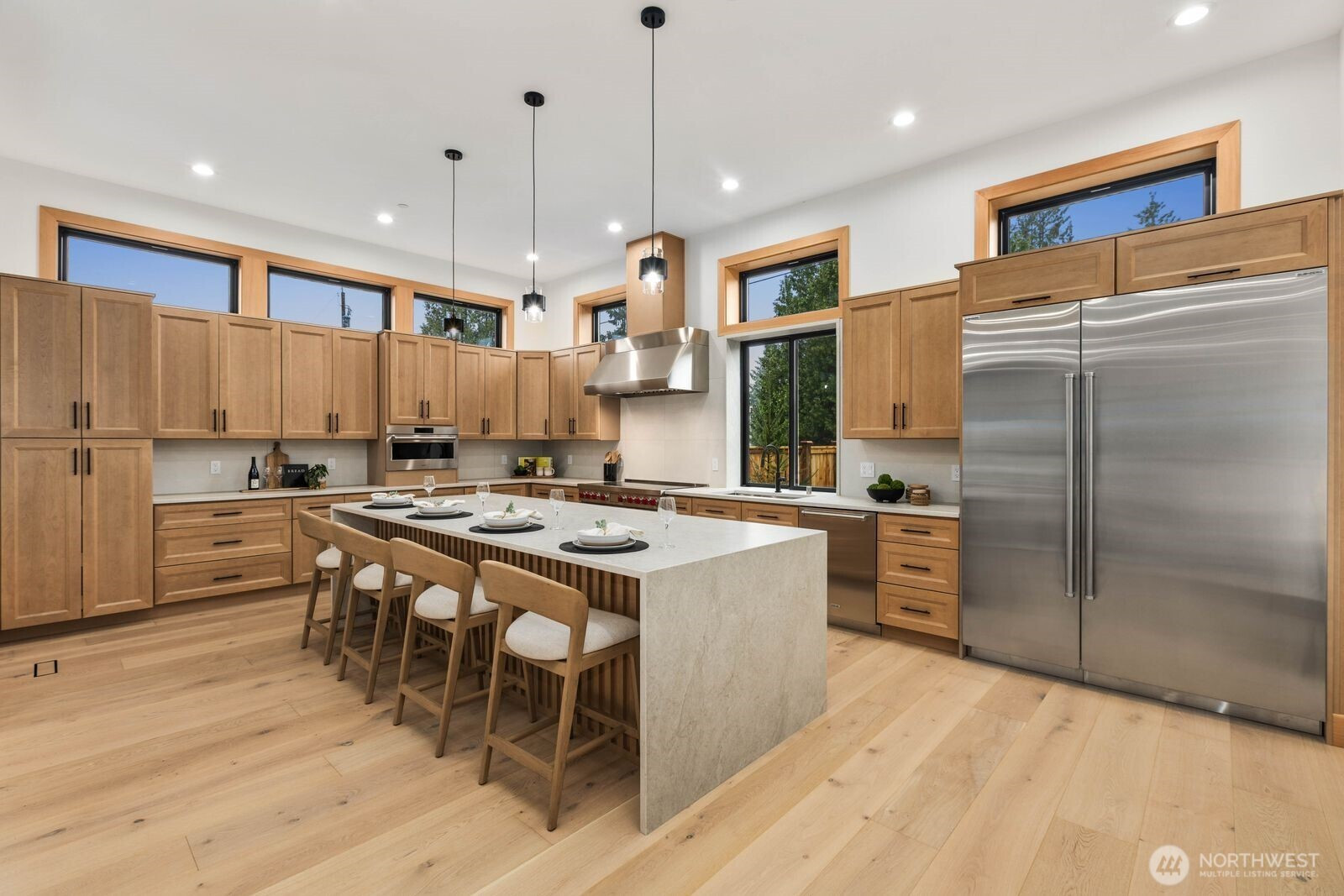 A rare expression of modern luxury in Bellevue’s coveted Lake Hills neighborhood. This new construction residence offers 4,214 sq ft of elevated living with soaring 12’ ceilings, expansive oversized windows that flood the east-facing home with natural light. The open concept design showcases a spectacular gourmet kitchen with Taj Mahal quartz countertops, Wolf appliances, Sub-Zero refrigerator, oversized island, and walk-in pantry flowing seamlessly into the dining and family rooms for effortless entertaining. Rich engineered hardwood and Italian porcelain tile span the home. Thoughtfully designed with 5 bedrooms plus an office and 5.25 baths, including a main level guest suite and flexible living spaces. Upstairs, the luxurious primary suite offers a serene retreat with a spa inspired bath, soaking tub, dual shower heads, heated towel warmer, and expansive walk-in closet. Built for modern comfort and efficiency with all electric systems, heat pump HVAC, ERV fresh air circulation, and a 50 year metal roof. Smart home & green features throughout, including solar panels, an EV-ready garage and fire sprinkler system. Enjoy a prime location just minutes to Downtown Bellevue with easy access to I-90 and I-405, parks, and top-rated schools.