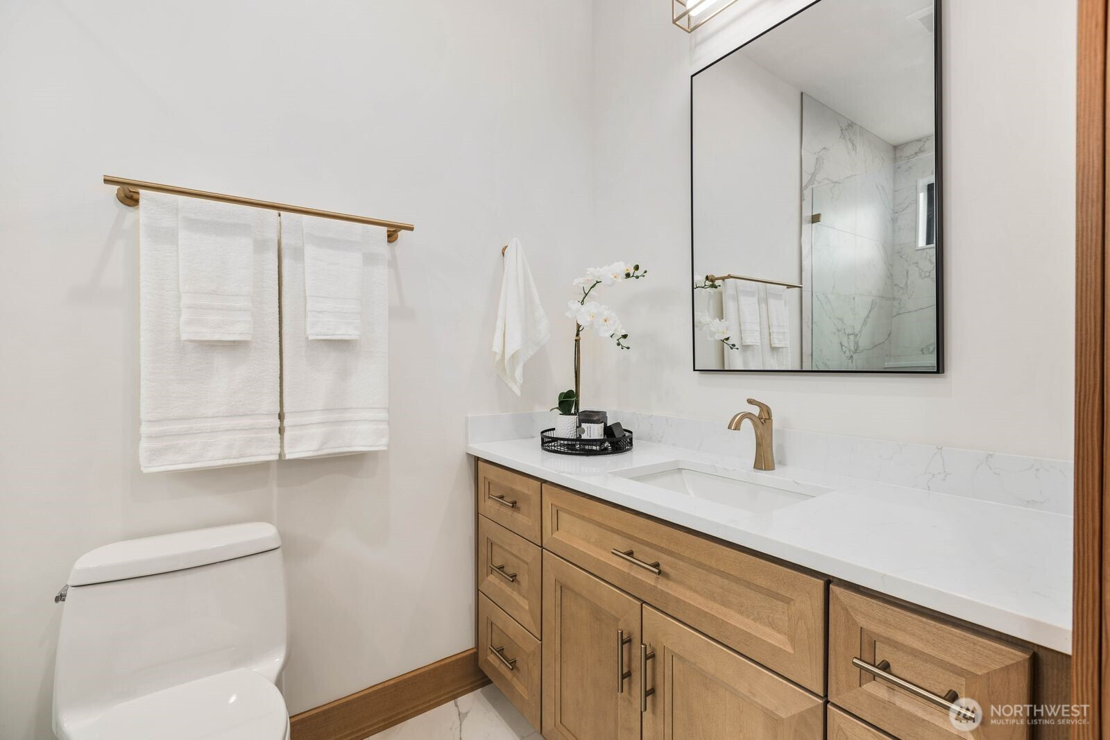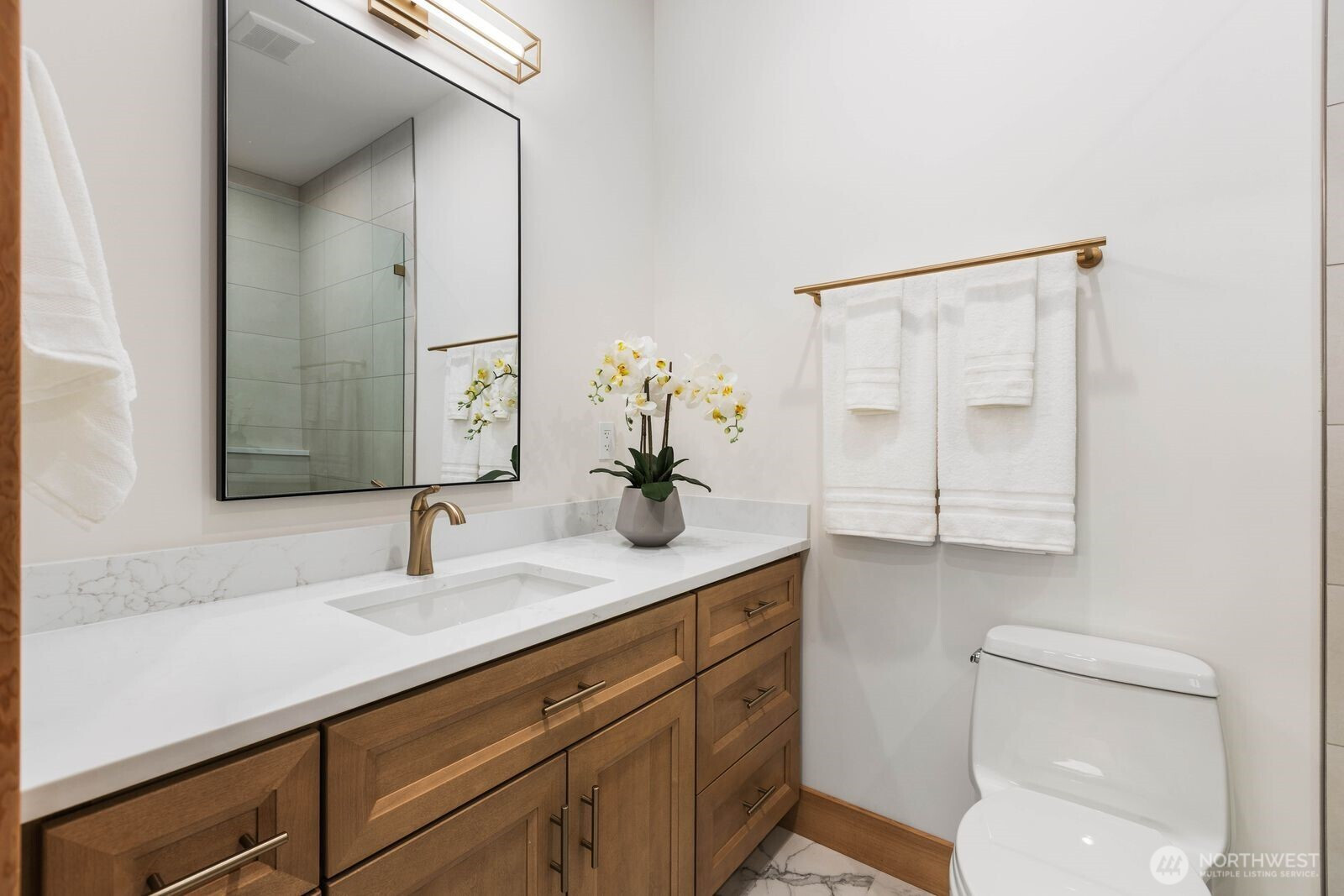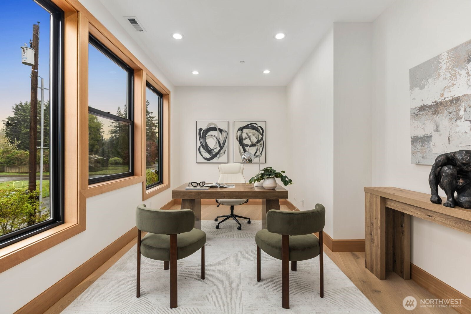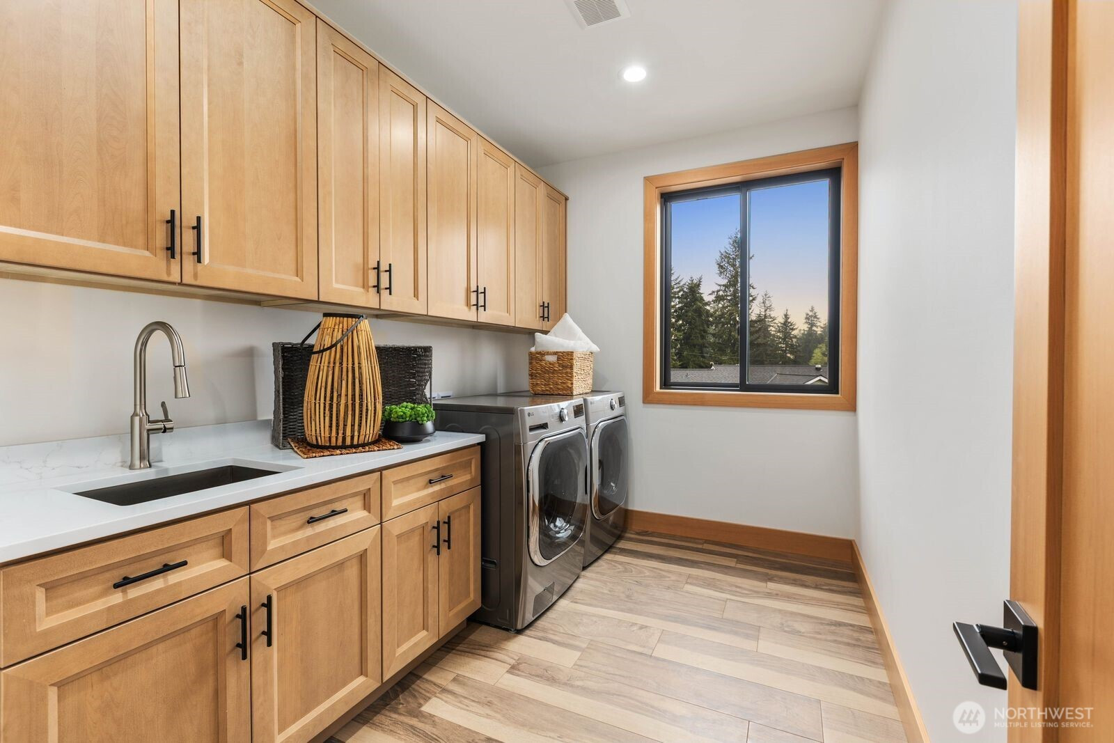 A rare expression of modern luxury in Bellevue’s coveted Lake Hills neighborhood. This new construction residence offers 4,214 sq ft of elevated living with soaring 12’ ceilings, expansive oversized windows that flood the east-facing home with natural light. The open concept design showcases a spectacular gourmet kitchen with Taj Mahal quartz countertops, Wolf appliances, Sub-Zero refrigerator, oversized island, and walk-in pantry flowing seamlessly into the dining and family rooms for effortless entertaining. Rich engineered hardwood and Italian porcelain tile span the home. Thoughtfully designed with 5 bedrooms plus an office and 5.25 baths, including a main level guest suite and flexible living spaces. Upstairs, the luxurious primary suite offers a serene retreat with a spa inspired bath, soaking tub, dual shower heads, heated towel warmer, and expansive walk-in closet. Built for modern comfort and efficiency with all electric systems, heat pump HVAC, ERV fresh air circulation, and a 50 year metal roof. Smart home & green features throughout, including solar panels, an EV-ready garage and fire sprinkler system. Enjoy a prime location just minutes to Downtown Bellevue with easy access to I-90 and I-405, parks, and top-rated schools.