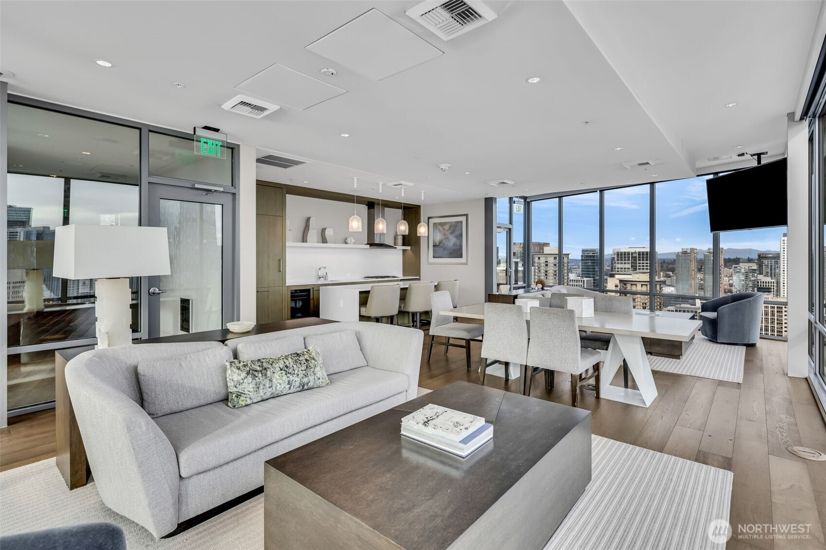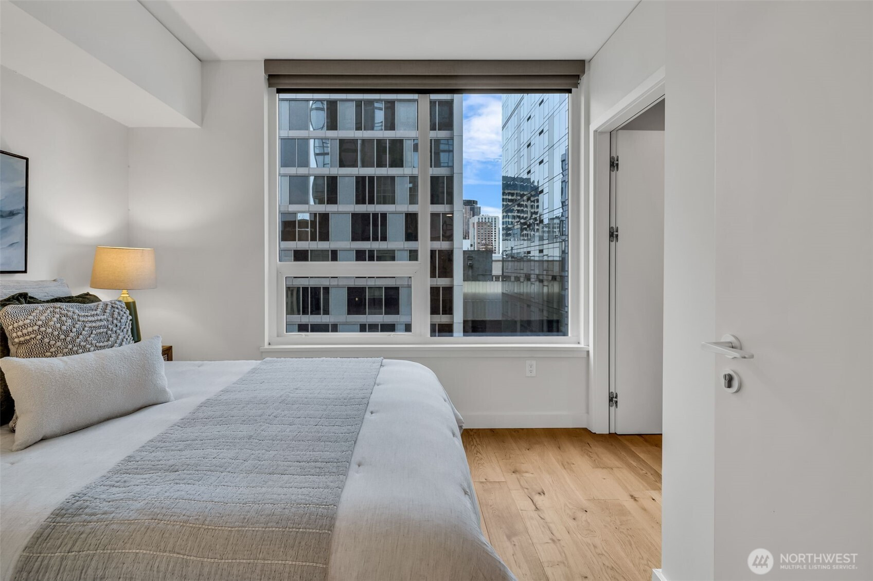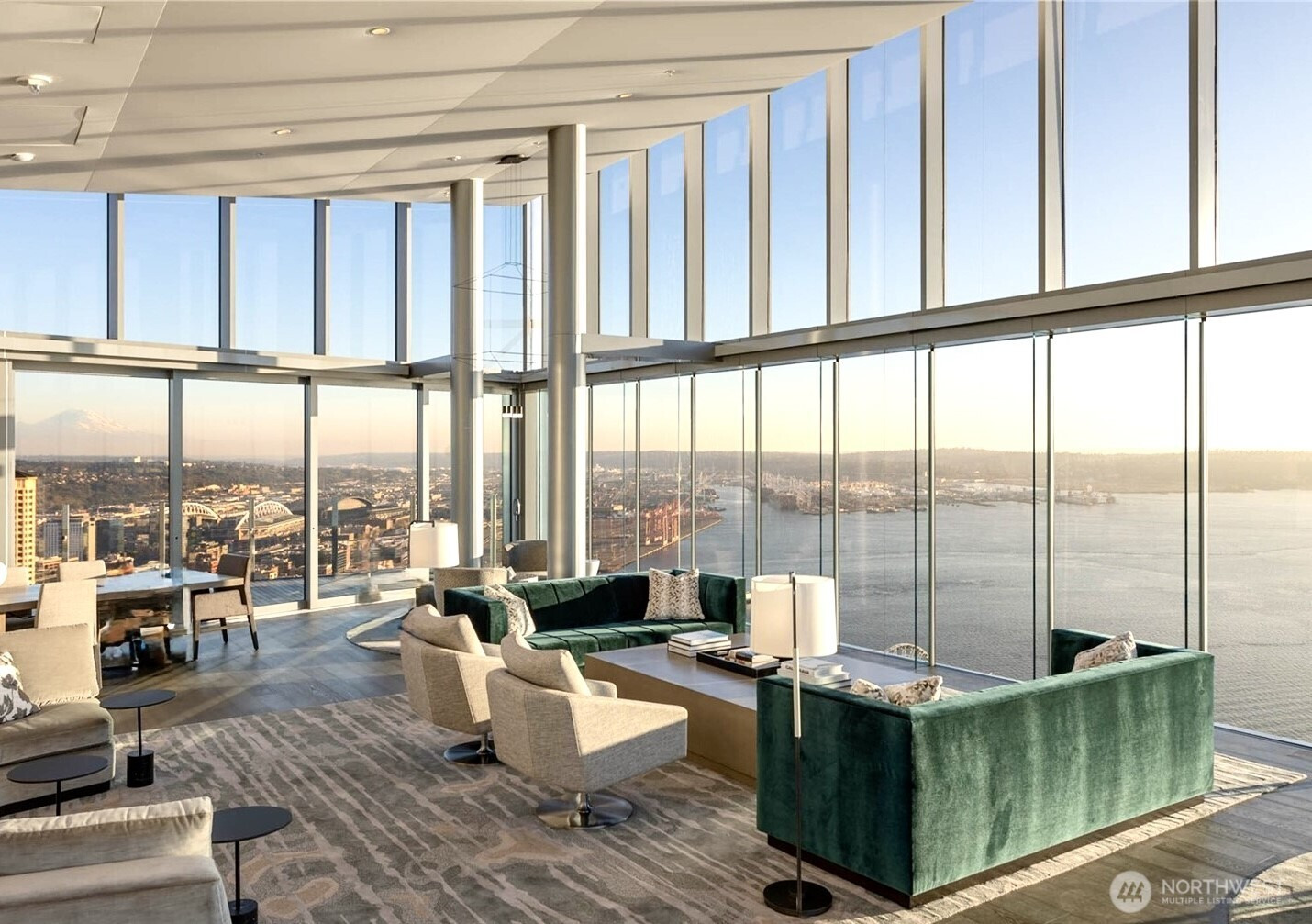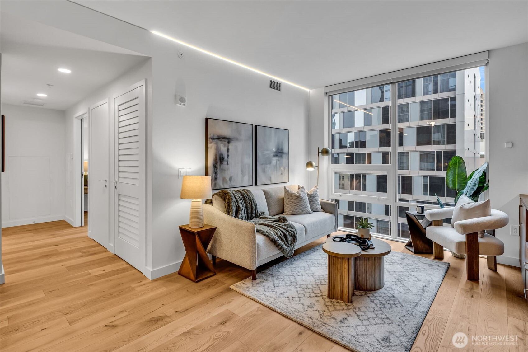 (503) 893-8874Seattle has a few true headliners, The Emerald is one of them. Rare downtown high rise home that feels thoughtfully curated, effortlessly elevated. Steps to Pike Place Market, Seattle’s reimagined waterfront, wrapped in floor to ceiling glass, tons of natural light, twinkly skyline, city views, 75k in upgrades you feel the second you walk into this spacious one bed + den home. Brand new wide plank hardwoods, custom lighting, scene settings in living, den, primary, bright by day, warm, cinematic at night. Showpiece kitchen, gas cooking, Pedini cabinetry, smart pull outs, built in drawer org, high end Bosch appliances (gas), marble style quartz, custom movable island, equal parts design statement and daily workhorse. Custom built in bookcases, integrated under cabinet lighting, den/office is the real deal, true bonus room for work or creative studio. Exceptional stg, huge walk-in custom closets and built-ins, everything has a place. Spacious primary w/large CC walk in, spa like en suite (think lavish hotel level feel) Hardwired sun shades, blackout shades for real rest. Central AC, sleek LG W/D, Latch keyless entry. Residents enjoy professional 24/7 concierge, executive level fitness, yoga, pet run, pet spa, guest suite, onsite electric carshare, full floor rooftop lounge, indoor outdoor spaces, panoramic views of the Sound, Mt. Rainier, Olympics and unreal Seattle skyline. Over 75k in handsome interior upgrades. Living at The Emerald in the Emerald City just hits different.