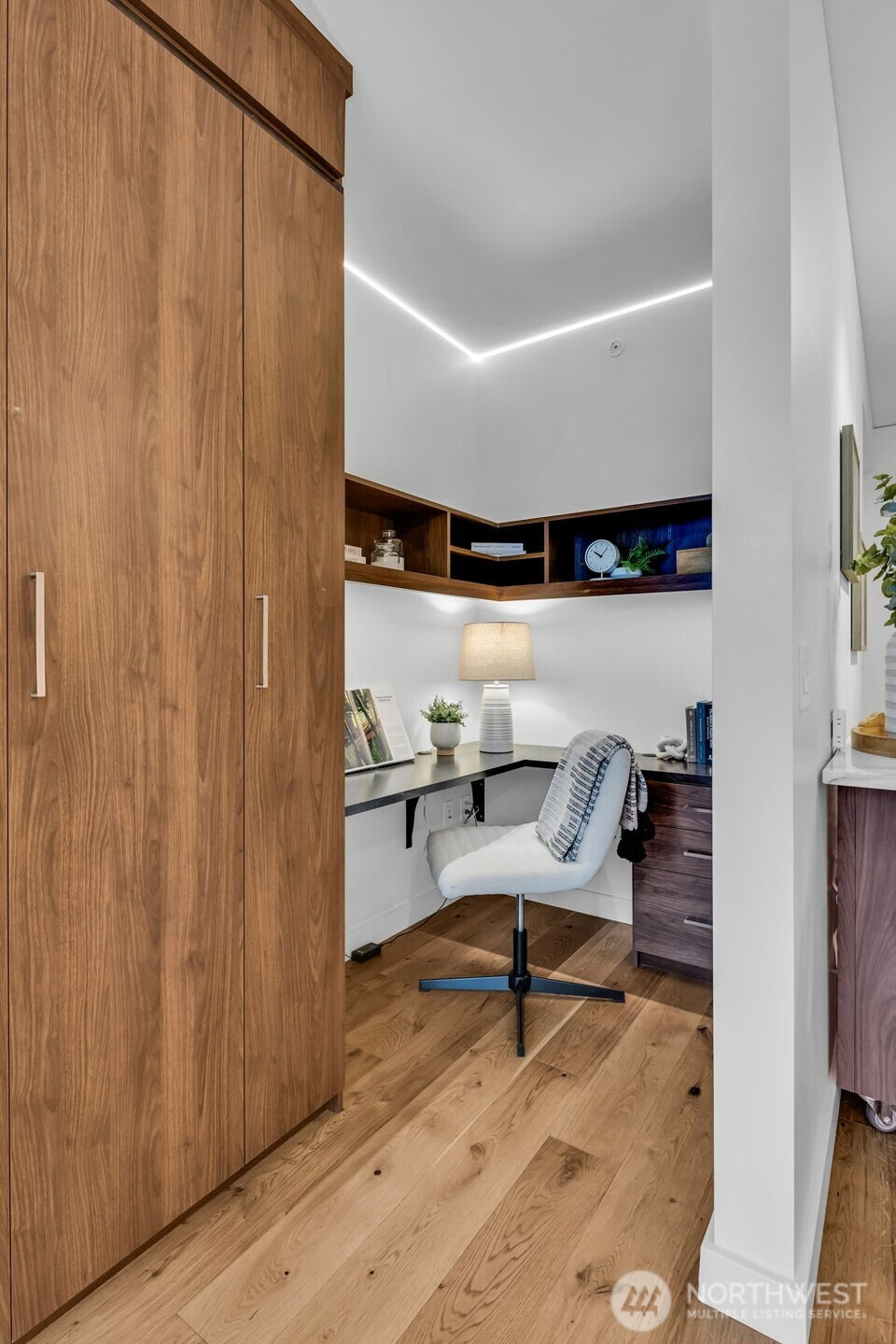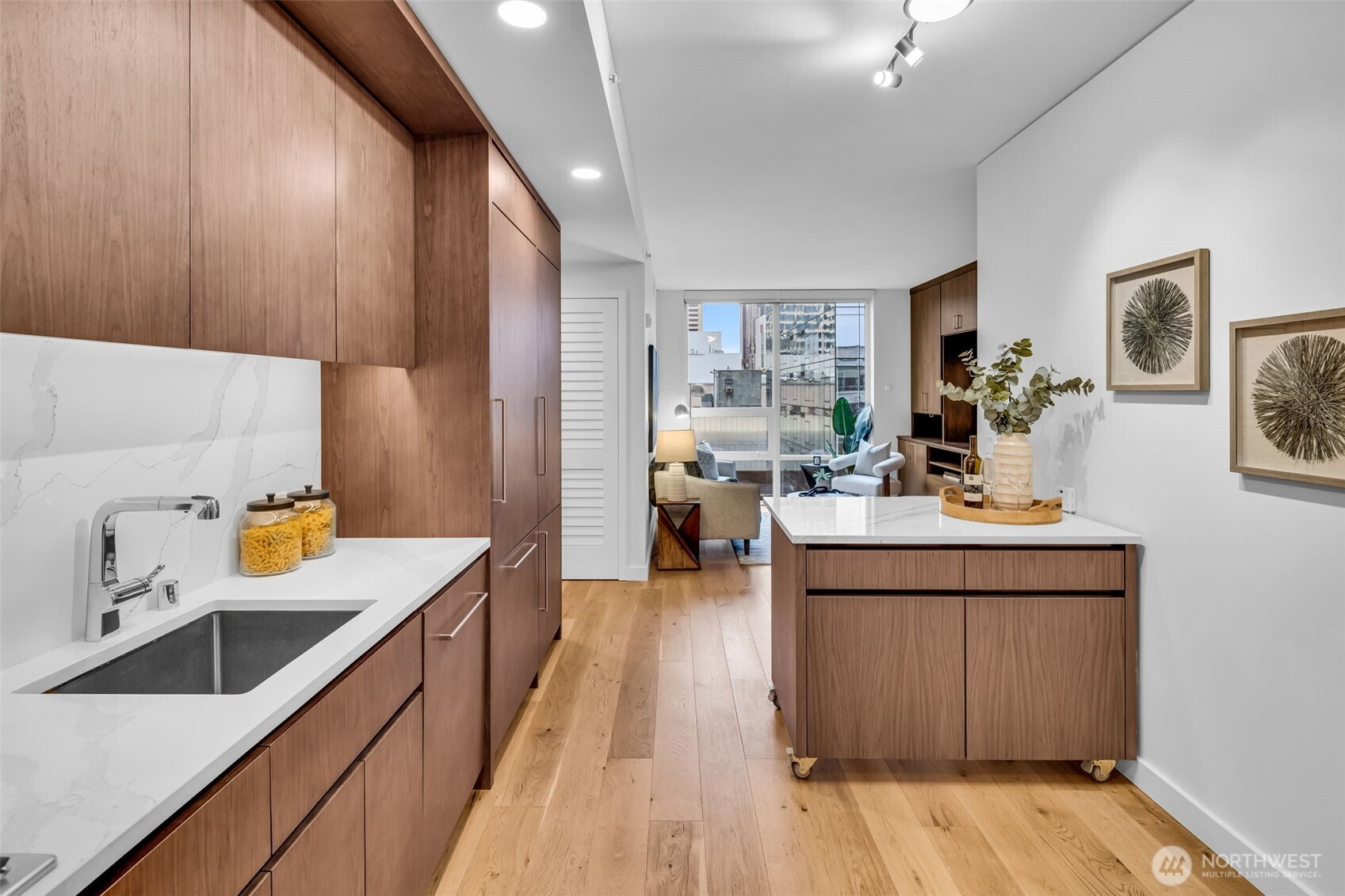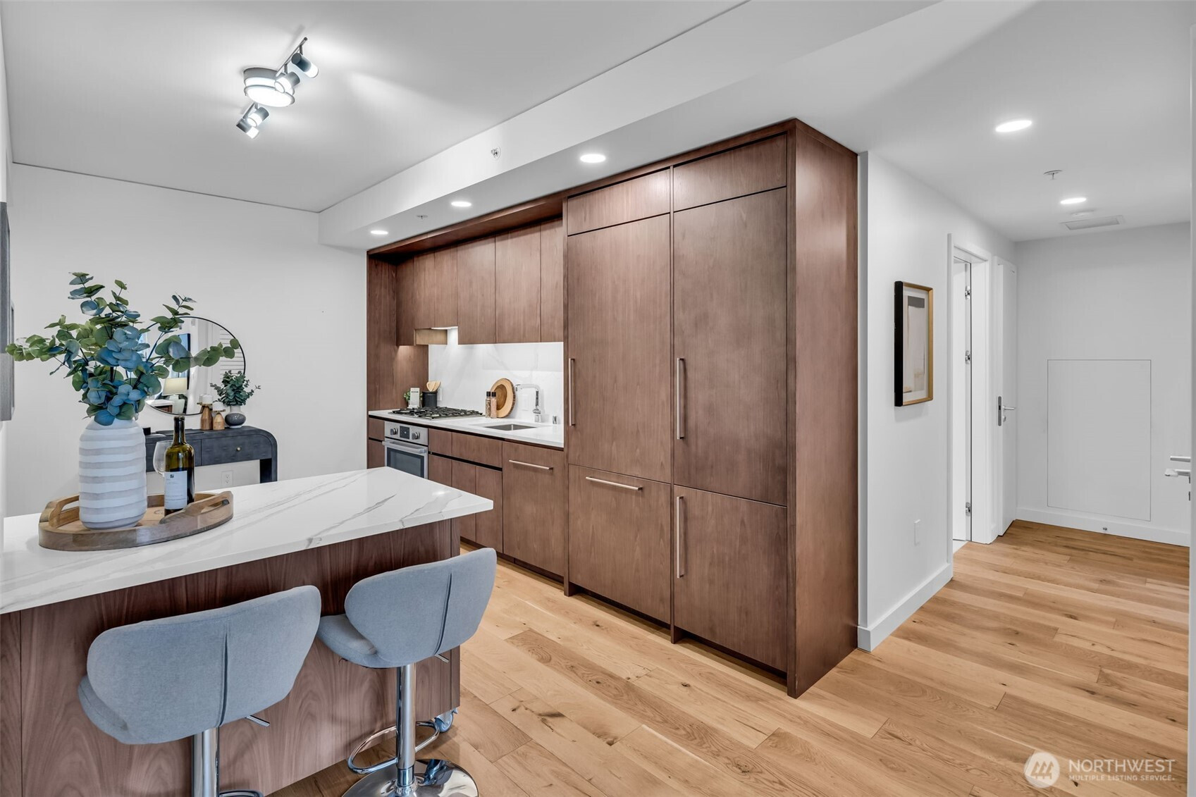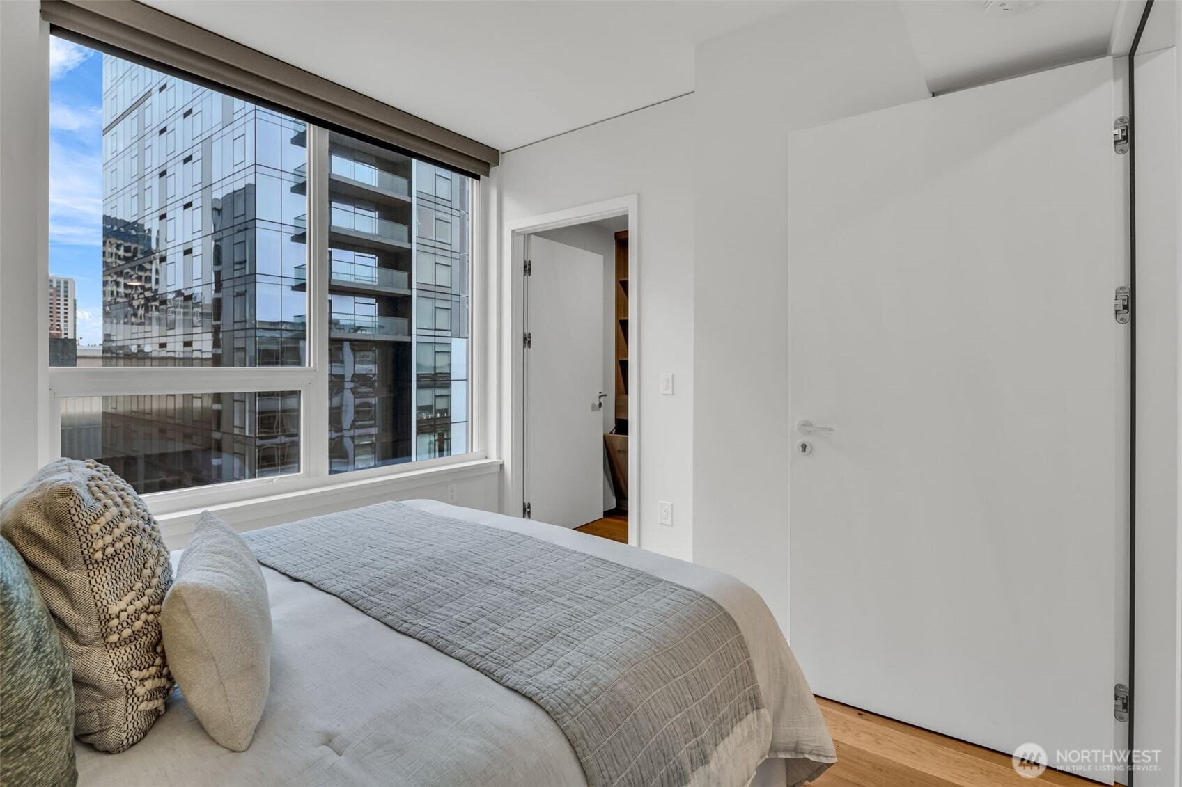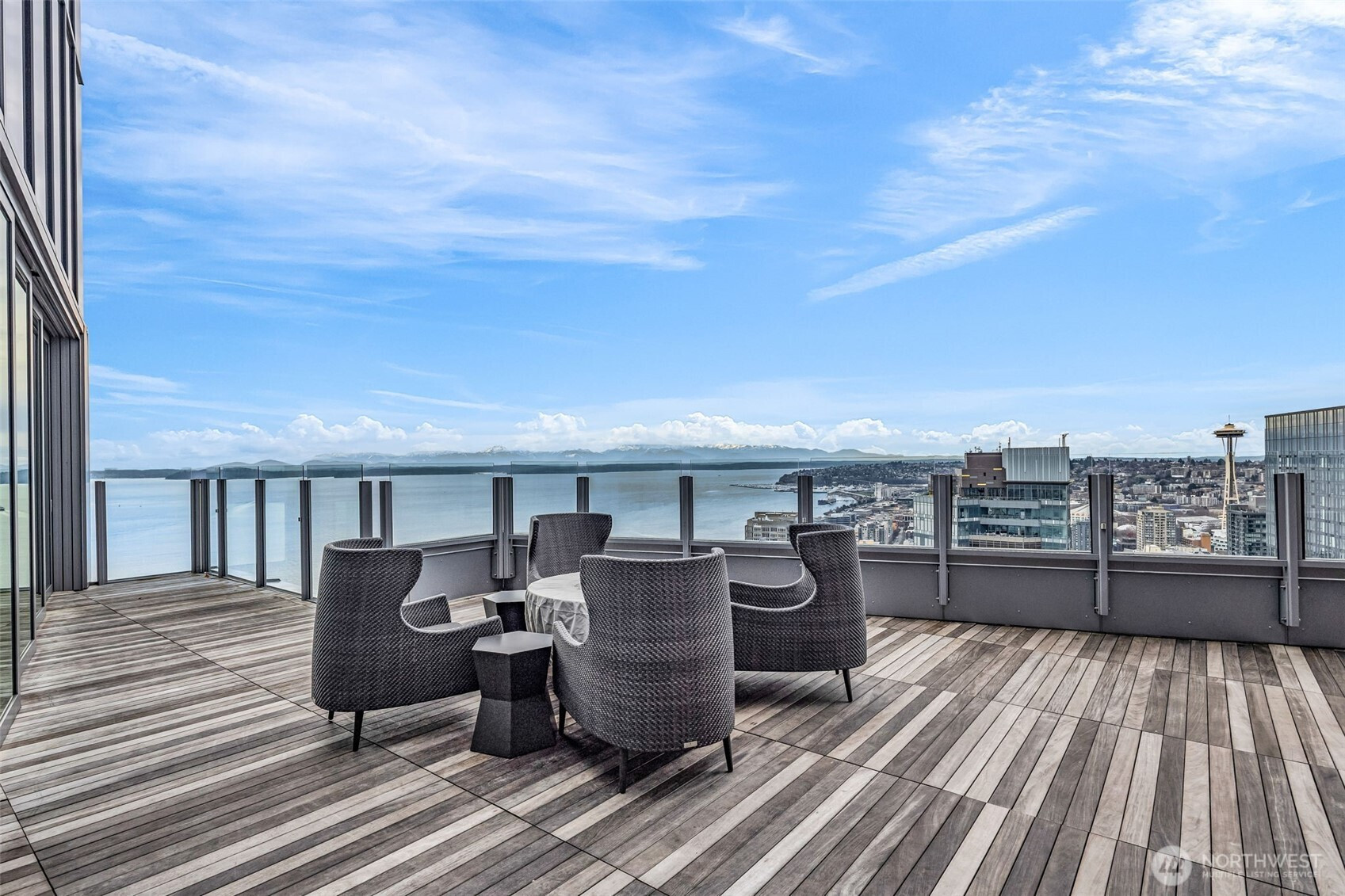 (503) 893-8874Seattle has a few true headliners, The Emerald is one of them. Rare downtown high rise home that feels thoughtfully curated, effortlessly elevated. Steps to Pike Place Market, Seattle’s reimagined waterfront, wrapped in floor to ceiling glass, tons of natural light, twinkly skyline, city views, 75k in upgrades you feel the second you walk into this spacious one bed + den home. Brand new wide plank hardwoods, custom lighting, scene settings in living, den, primary, bright by day, warm, cinematic at night. Showpiece kitchen, gas cooking, Pedini cabinetry, smart pull outs, built in drawer org, high end Bosch appliances (gas), marble style quartz, custom movable island, equal parts design statement and daily workhorse. Custom built in bookcases, integrated under cabinet lighting, den/office is the real deal, true bonus room for work or creative studio. Exceptional stg, huge walk-in custom closets and built-ins, everything has a place. Spacious primary w/large CC walk in, spa like en suite (think lavish hotel level feel) Hardwired sun shades, blackout shades for real rest. Central AC, sleek LG W/D, Latch keyless entry. Residents enjoy professional 24/7 concierge, executive level fitness, yoga, pet run, pet spa, guest suite, onsite electric carshare, full floor rooftop lounge, indoor outdoor spaces, panoramic views of the Sound, Mt. Rainier, Olympics and unreal Seattle skyline. Over 75k in handsome interior upgrades. Living at The Emerald in the Emerald City just hits different.