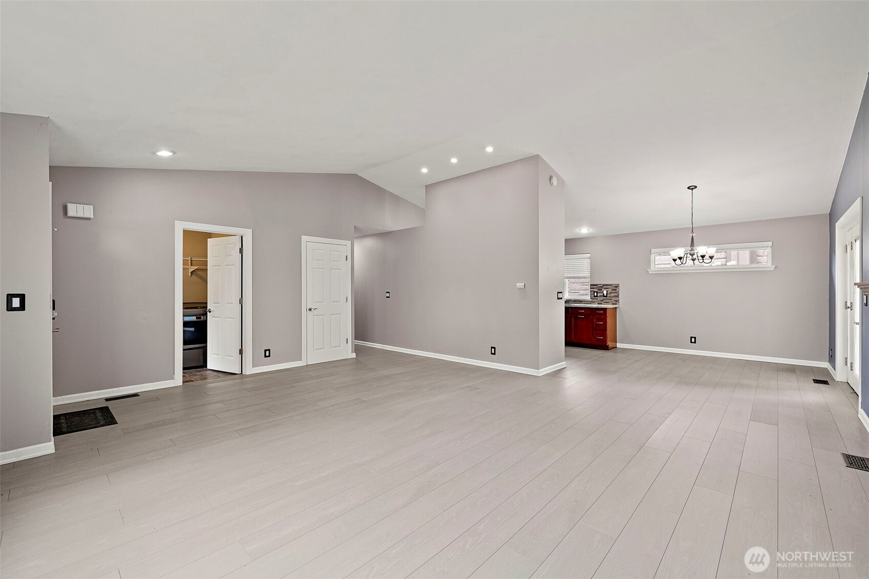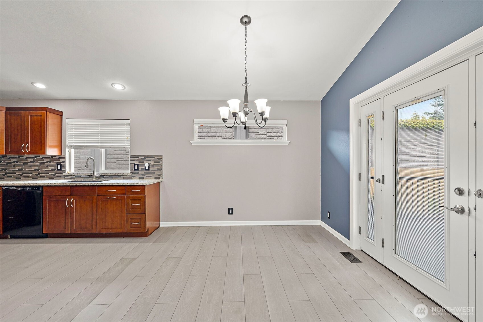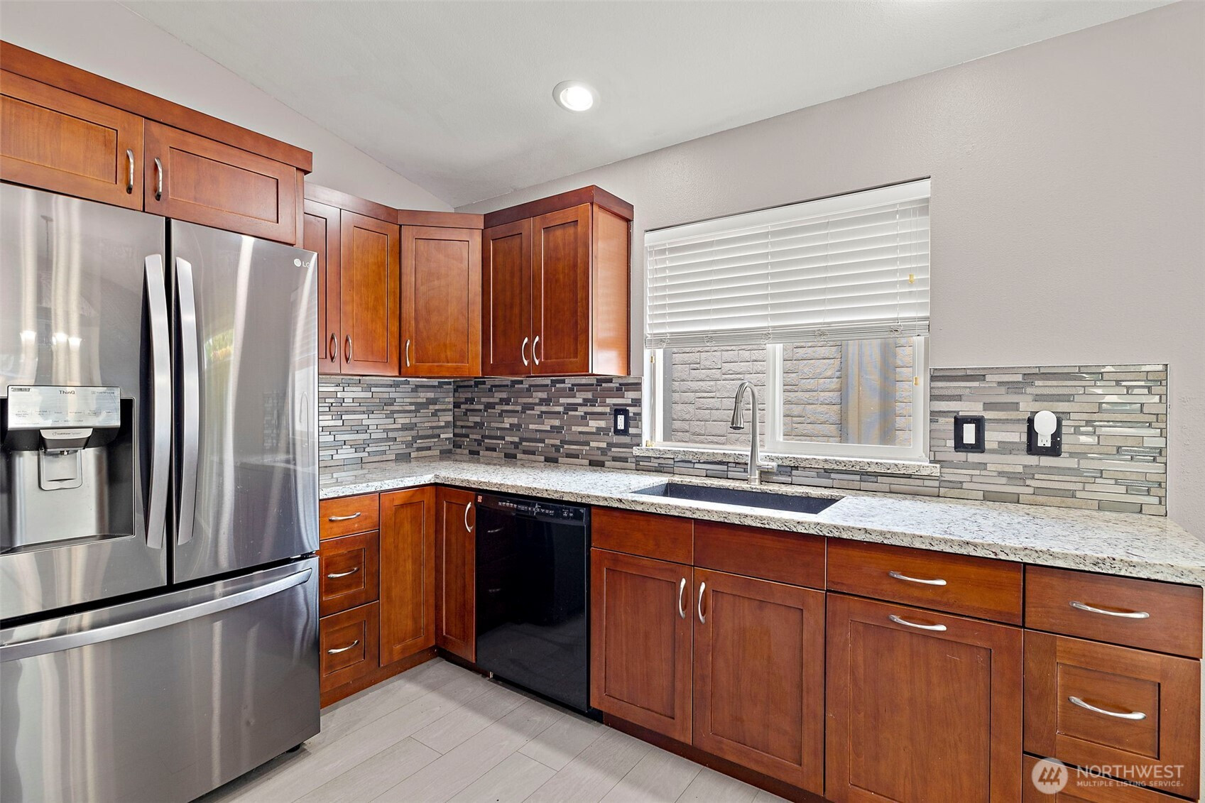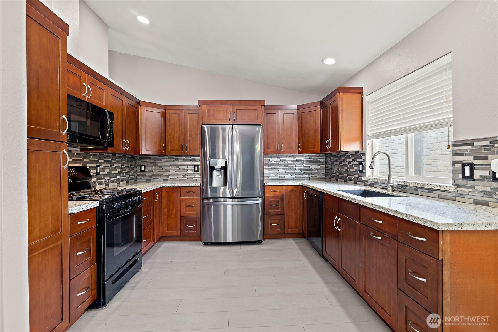Fantastic opportunity in the heart of Kirkland! This beautifully updated 3-bedroom, 1.75-bath rambler offers a spacious, open layout featuring a gourmet kitchen with cherry wood cabinets and granite countertops. The kitchen flows seamlessly into the dining area and generous living room with a cozy gas fireplace. Enjoy wood floors throughout, a primary suite with private bath, and two additional large bedrooms. Outside, you’ll find a fully fenced yard, perfect for entertaining, plus an attached two-car garage—all tucked away on a quiet cul-de-sac. Conveniently located just minutes from I-405, top-rated schools, shopping, and the waterfront - you don't want to miss this one!
