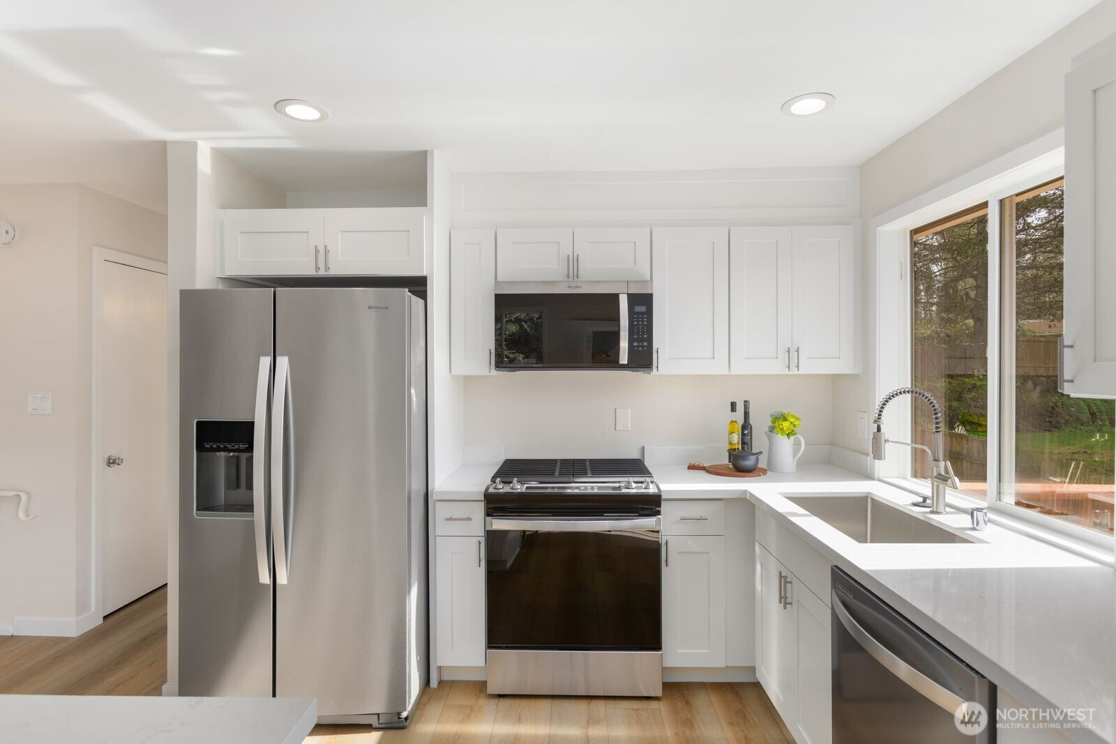 Situated on a corner lot in a quiet cul-de-sac, this beautifully refreshed home feels like the one you’ve been waiting for. Enjoy brand new LVP floors and carpet, fresh paint throughout, and numerous windows bringing in natural light. The newly remodeled kitchen offers quartz countertops, new cabinetry, and an island with seating. The open concept centers around a cozy brick fireplace and opens up to the expansive new deck overlooking a fully-fenced backyard framed by mature trees. With RV parking, top-rated schools nearby, parks, dining, and quick freeway access, this is truly a must-see. Home has been pre-inspected!