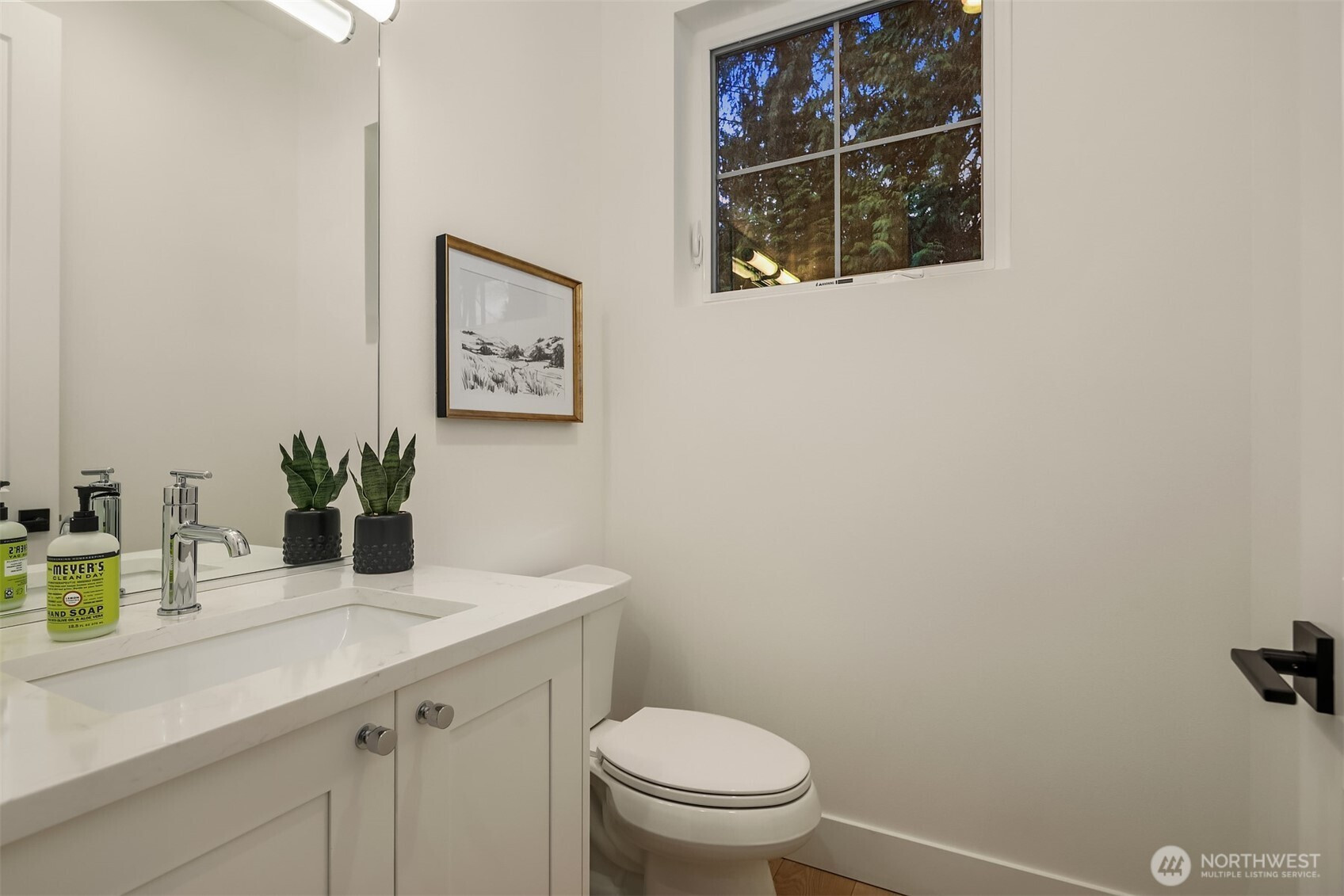 North Rose Hill home, built by Shelter Homes in 2022 including full basement suite with ADU potential (needs kitchenette). On a cul-de-sac, this stunning like-new home features 14' main floor ceilings, an expansive great room and full designer chef's kitchen. Enjoy AC and real hardwood floors throughout. Kitchen includes island, wine refrigerator, full quartz slab island and beams with natural light. Three bedrooms - including large primary suite with five-piece bath and full walk-in closet - on second story with a full oversized utility room. Fabulous, covered deck with built in heat lamps overlooking lush green scenery. The daylight basement, which could be converted to an ADU, boasts a large rec. room with walkout covered outdoor space. Two car garage with paver driveway. Landscape is "zero" maintenance with turf and established, mature native trees. You are a five-minute drive to Downtown Kirkland and the waterfront from here. Thanks for looking!