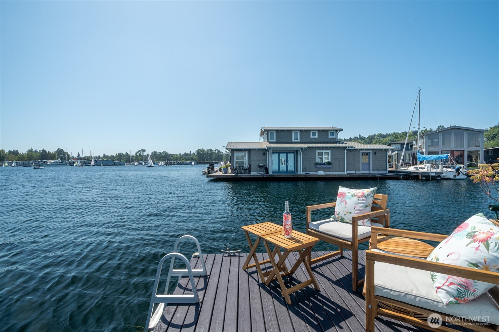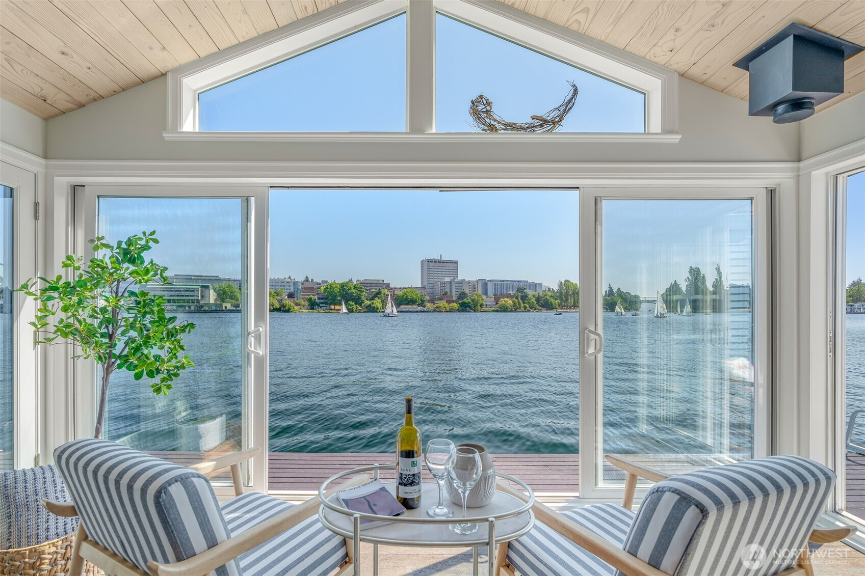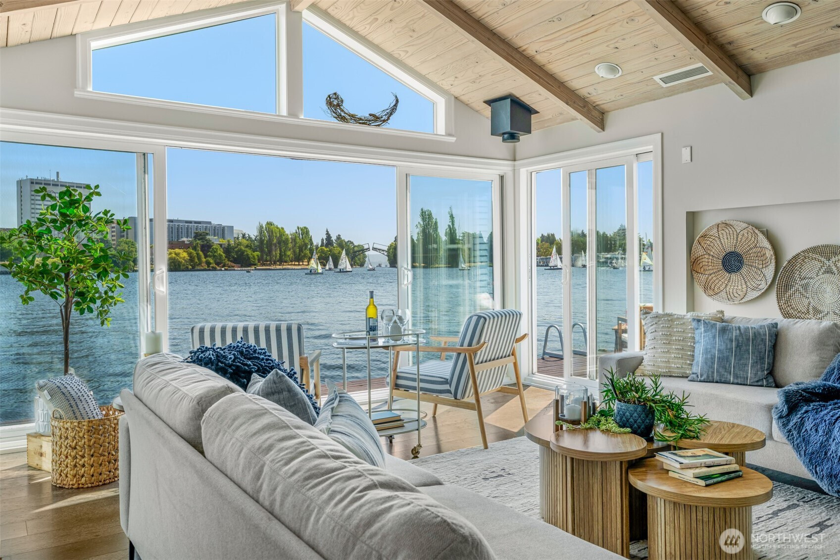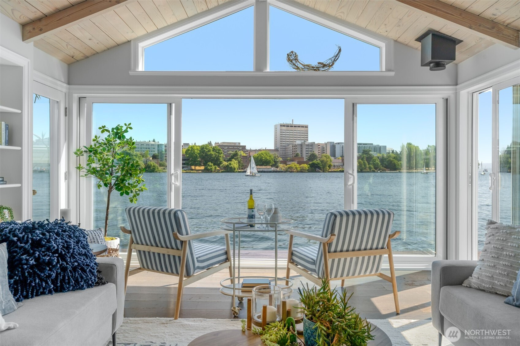 (503) 893-8874Extraordinarily rare Seattle floating home with stunning unobstructed water views on three sides, with private marina and boat moorage included. Expansive living room and open eat-in kitchen with beautiful, vaulted ceilings. All main floor living, a very rare find, has gorgeous hard wood floors. All the bedrooms have panoramic views and brand-new windows. Enjoy watching winter migratory birds arrive at your head-to-toe windows. 38' of low-bank bulkhead waterfront and two outdoor seating areas, including one with access directly from the master bedroom through sliding glass doors. All new interior and exterior paint. Designed by architect Eric Hogeboom. Home comes with a boat slip.