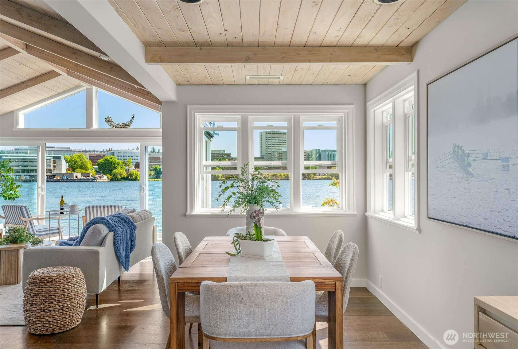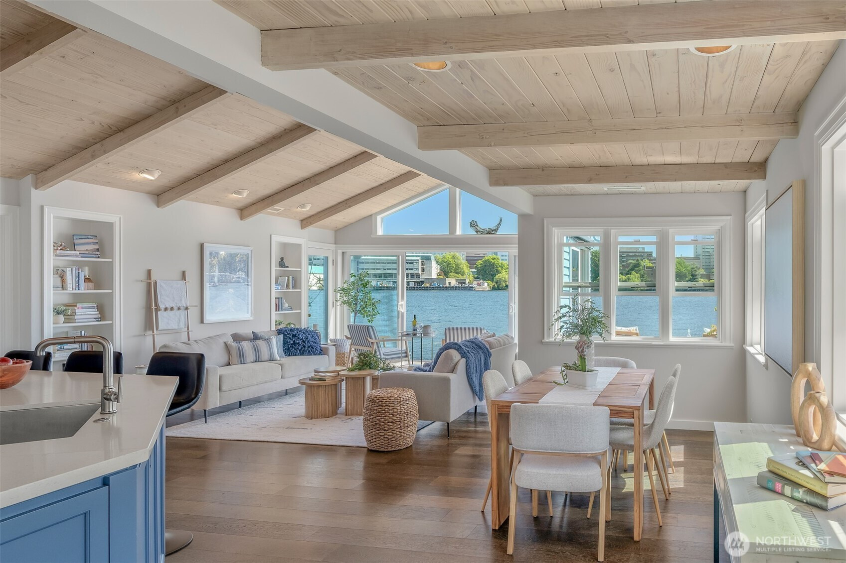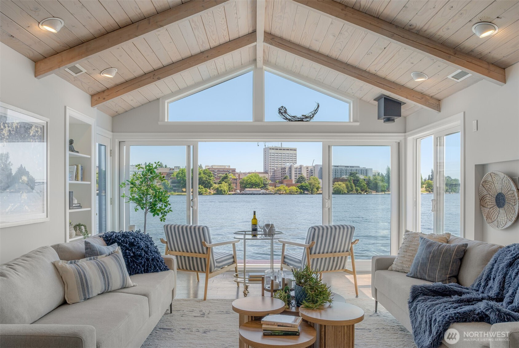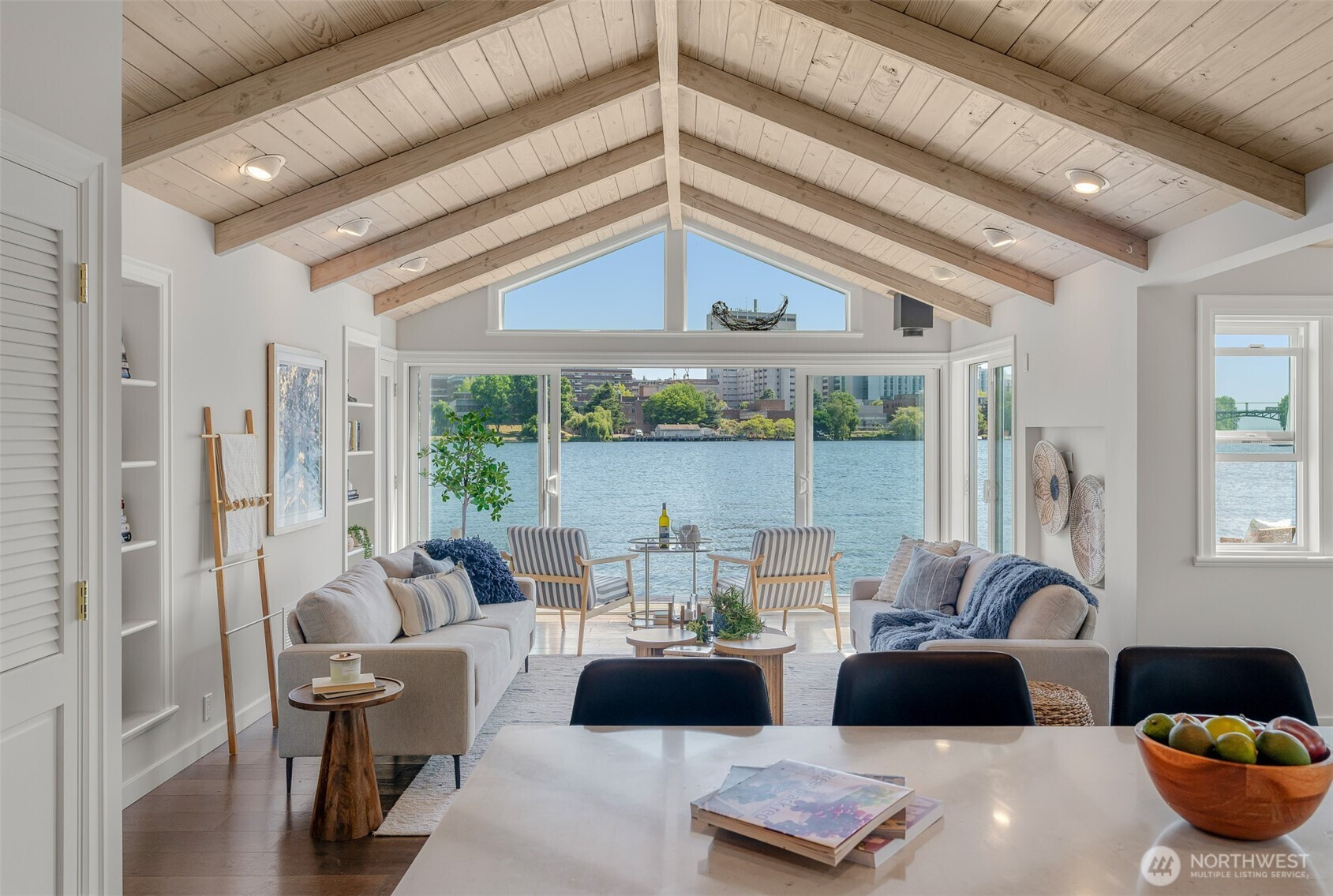(503) 893-8874Extraordinarily rare Seattle floating home with stunning unobstructed water views on three sides, with private marina and boat moorage included. Expansive living room and open eat-in kitchen with beautiful, vaulted ceilings. All main floor living, a very rare find, has gorgeous hard wood floors. All the bedrooms have panoramic views and brand-new windows. Enjoy watching winter migratory birds arrive at your head-to-toe windows. 38' of low-bank bulkhead waterfront and two outdoor seating areas, including one with access directly from the master bedroom through sliding glass doors. All new interior and exterior paint. Designed by architect Eric Hogeboom. Home comes with a boat slip.