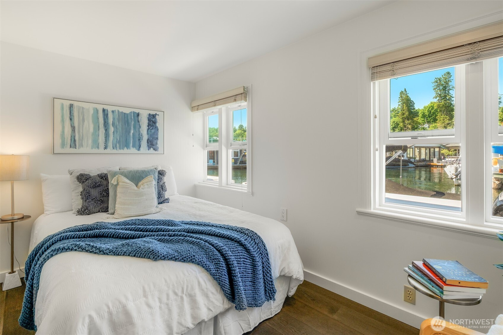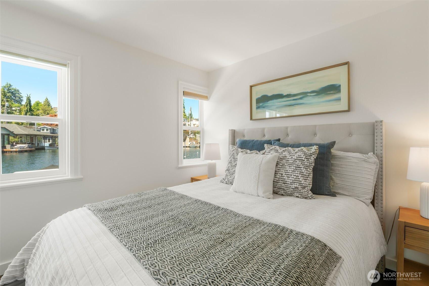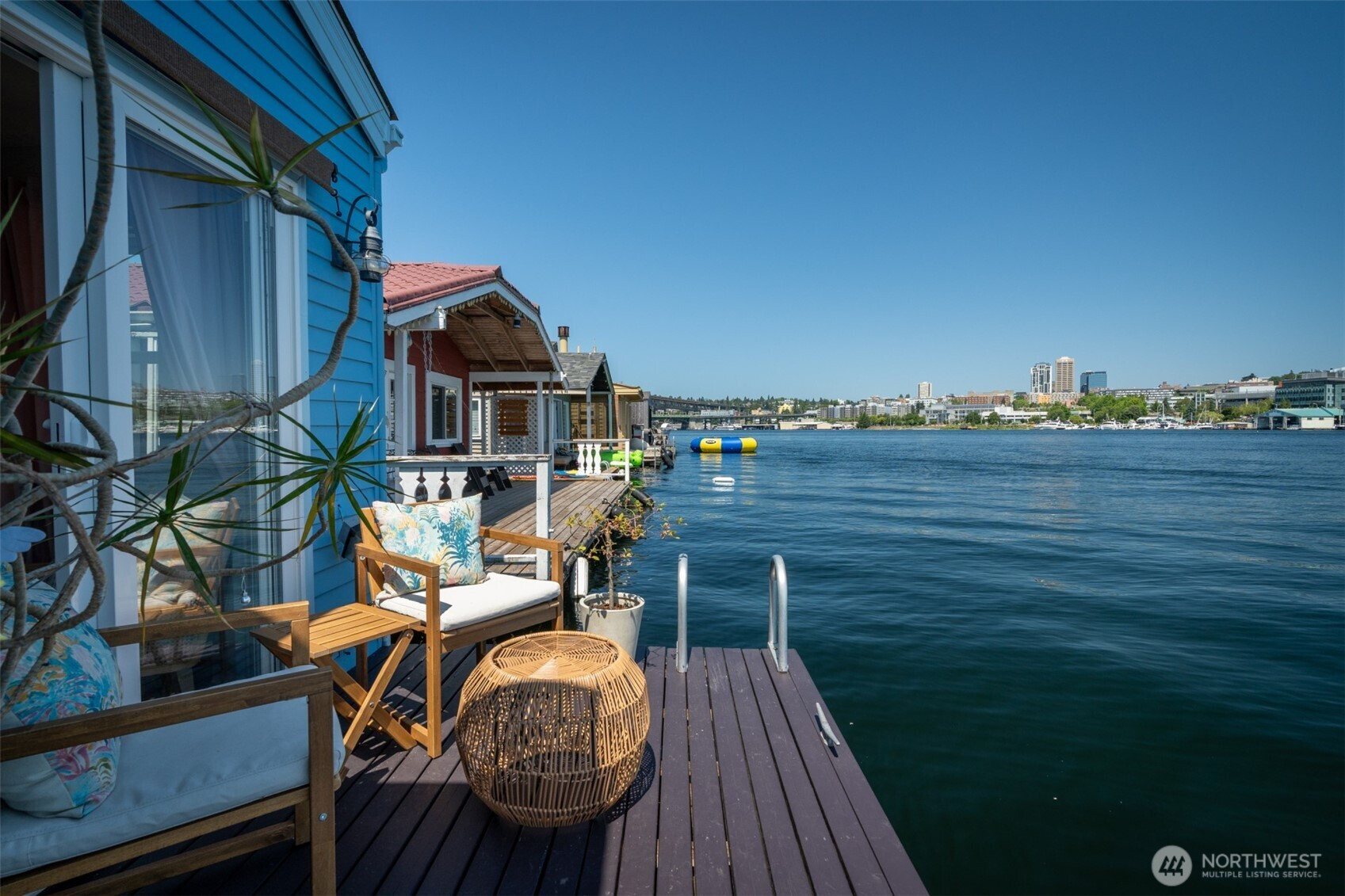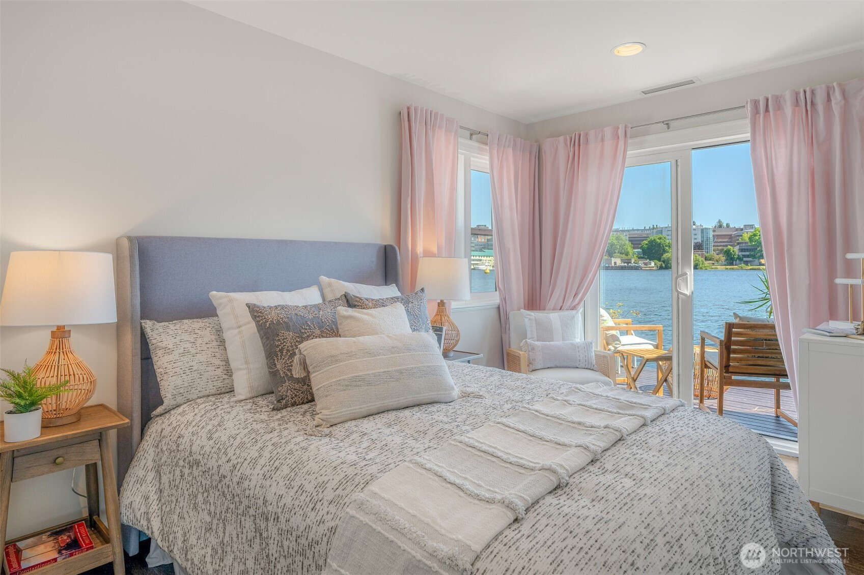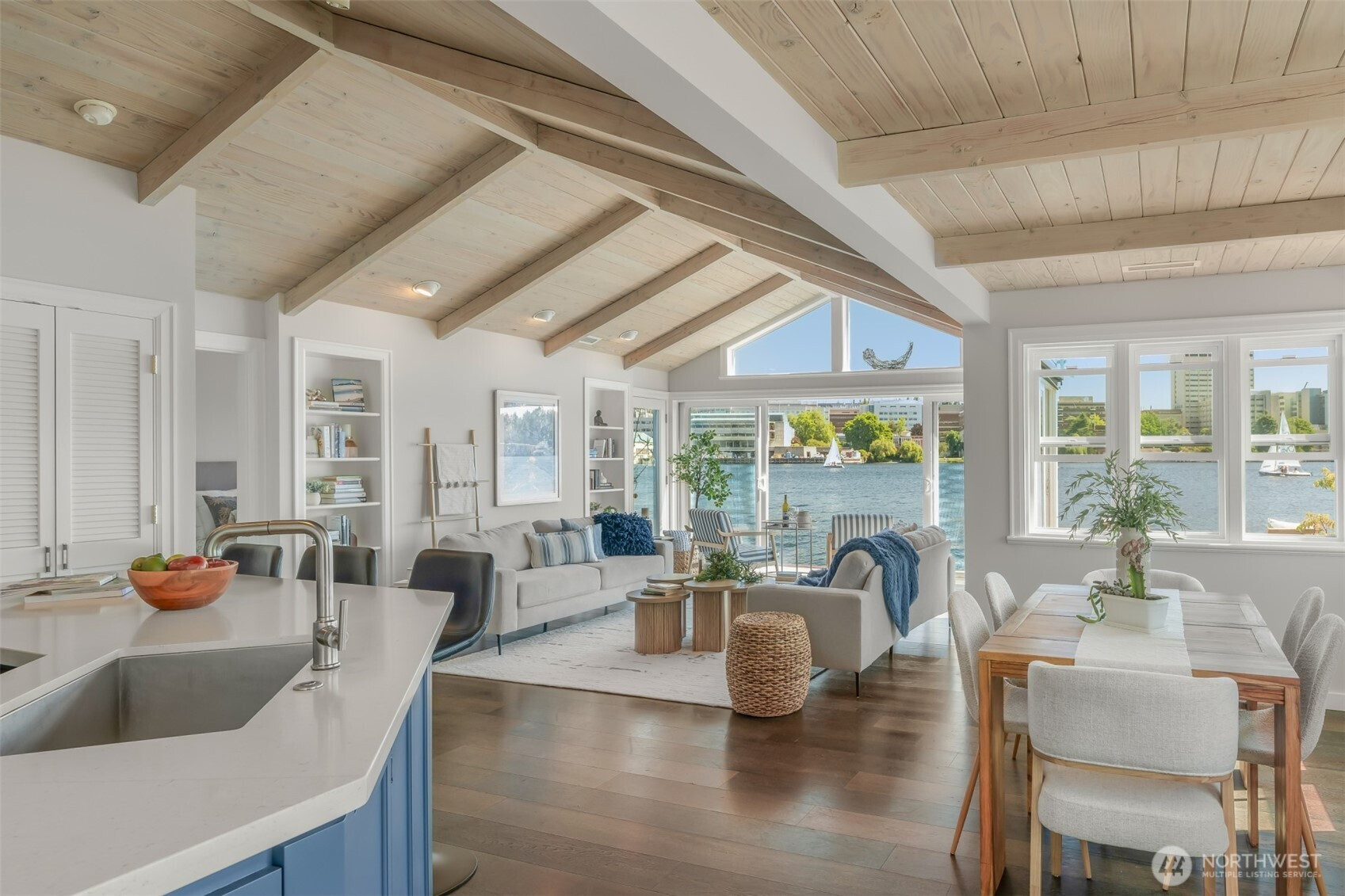 (503) 893-8874Extraordinarily rare Seattle floating home with stunning unobstructed water views on three sides, with private marina and boat moorage included. Expansive living room and open eat-in kitchen with beautiful, vaulted ceilings. All main floor living, a very rare find, has gorgeous hard wood floors. All the bedrooms have panoramic views and brand-new windows. Enjoy watching winter migratory birds arrive at your head-to-toe windows. 38' of low-bank bulkhead waterfront and two outdoor seating areas, including one with access directly from the master bedroom through sliding glass doors. All new interior and exterior paint. Designed by architect Eric Hogeboom. Home comes with a boat slip.