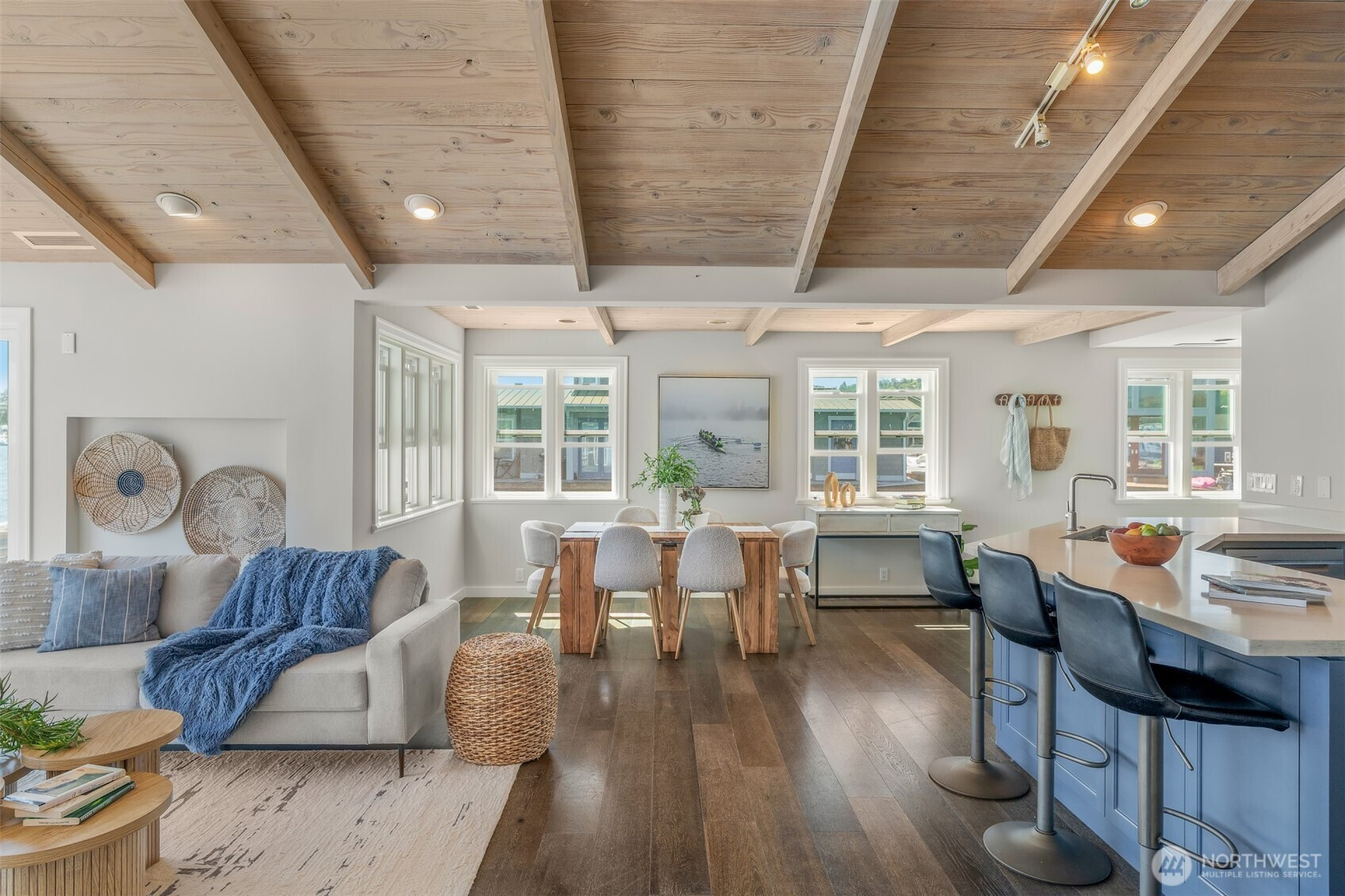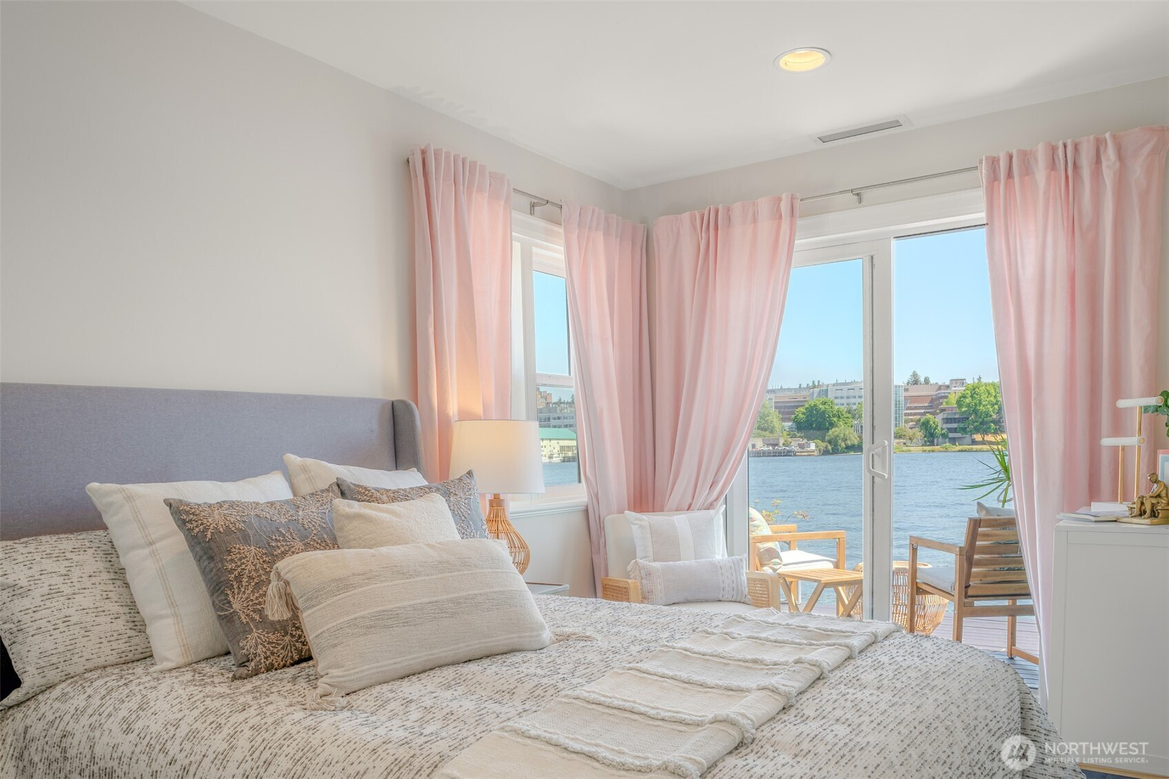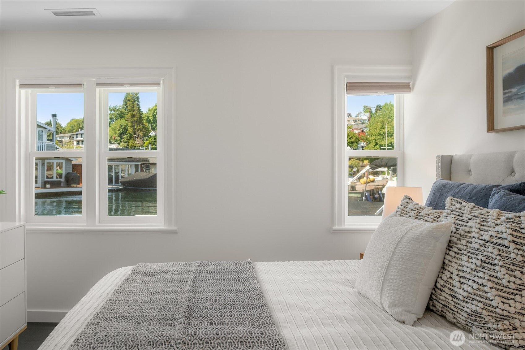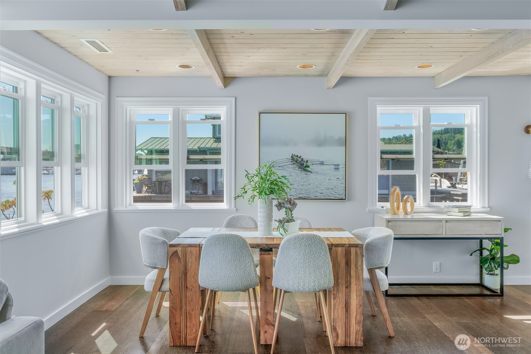 (503) 893-8874Extraordinarily rare Seattle floating home with stunning unobstructed water views on three sides, with private marina and boat moorage included. Expansive living room and open eat-in kitchen with beautiful, vaulted ceilings. All main floor living, a very rare find, has gorgeous hard wood floors. All the bedrooms have panoramic views and brand-new windows. Enjoy watching winter migratory birds arrive at your head-to-toe windows. 38' of low-bank bulkhead waterfront and two outdoor seating areas, including one with access directly from the master bedroom through sliding glass doors. All new interior and exterior paint. Designed by architect Eric Hogeboom. Home comes with a boat slip.