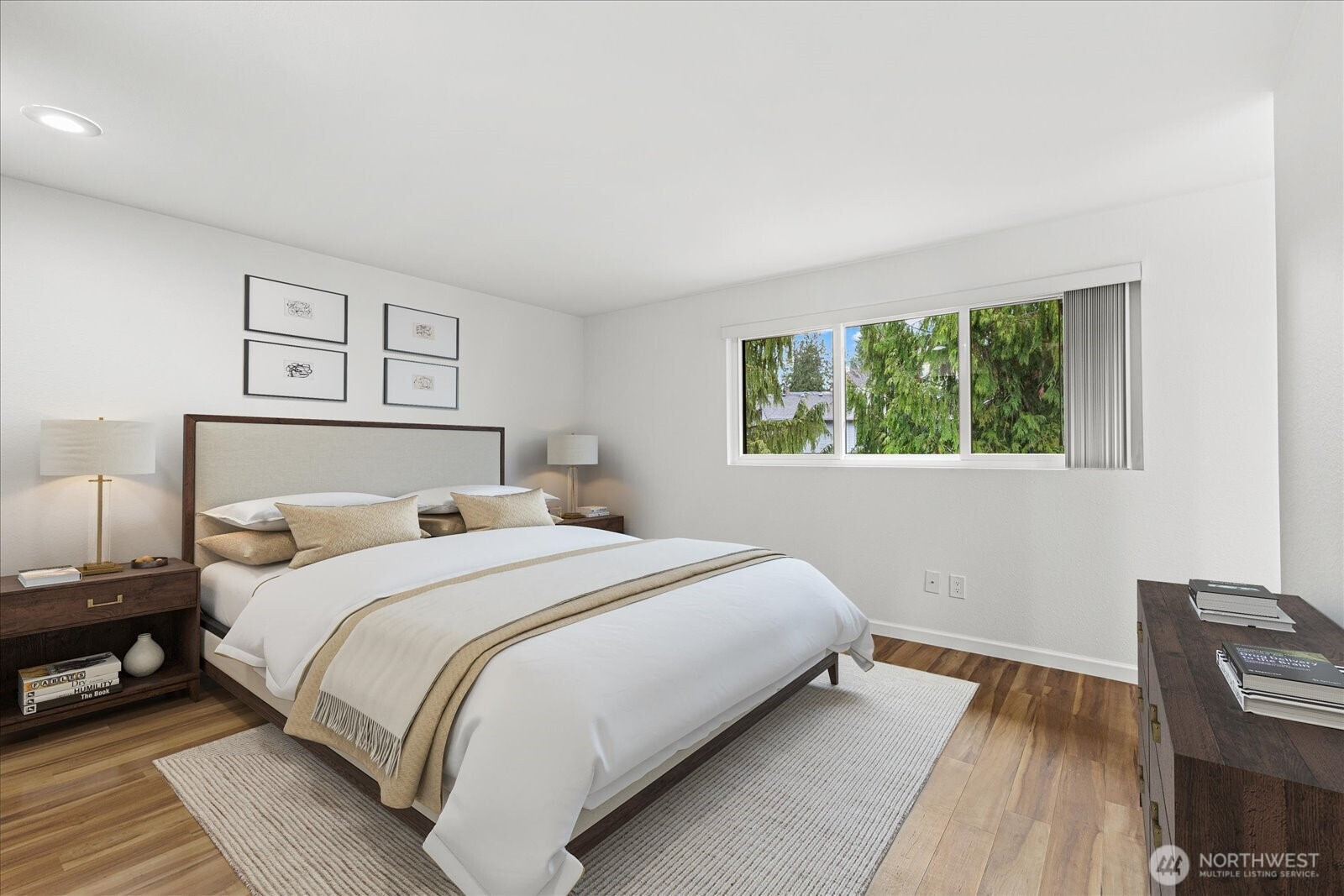 Meticulously cared for and thoughtfully updated, this Bothell home is set on a quiet cul-de-sac where location and livability come together. Just minutes to top-rated elementary and middle schools, with easy freeway access for commuters and close proximity to Totem Lake Village, Woodinville wineries, dining, shopping, and everyday amenities. Inside, the layout feels open and welcoming with abundant natural light throughout. Vaulted ceilings highlight the spacious kitchen and eating area, creating a comfortable gathering space that opens directly to a large upper deck for easy indoor and outdoor living. A formal dining room and sun-filled living room with expansive windows provide flexible spaces for everyday living and entertaining. Fresh interior paint and upgraded upper-level bathrooms contribute to a move-in-ready feel. The lower level offers a very large finished walk-out basement, well suited for an additional living area, media room, or recreation space, along with a dedicated work-from-home office. Outside, enjoy a generous backyard and covered patio backing to a peaceful greenbelt, offering privacy and a calm natural setting. Bright, spacious, and well maintained, this home delivers a rare combination of comfort, functionality, and location, making it an exceptional place to call home.