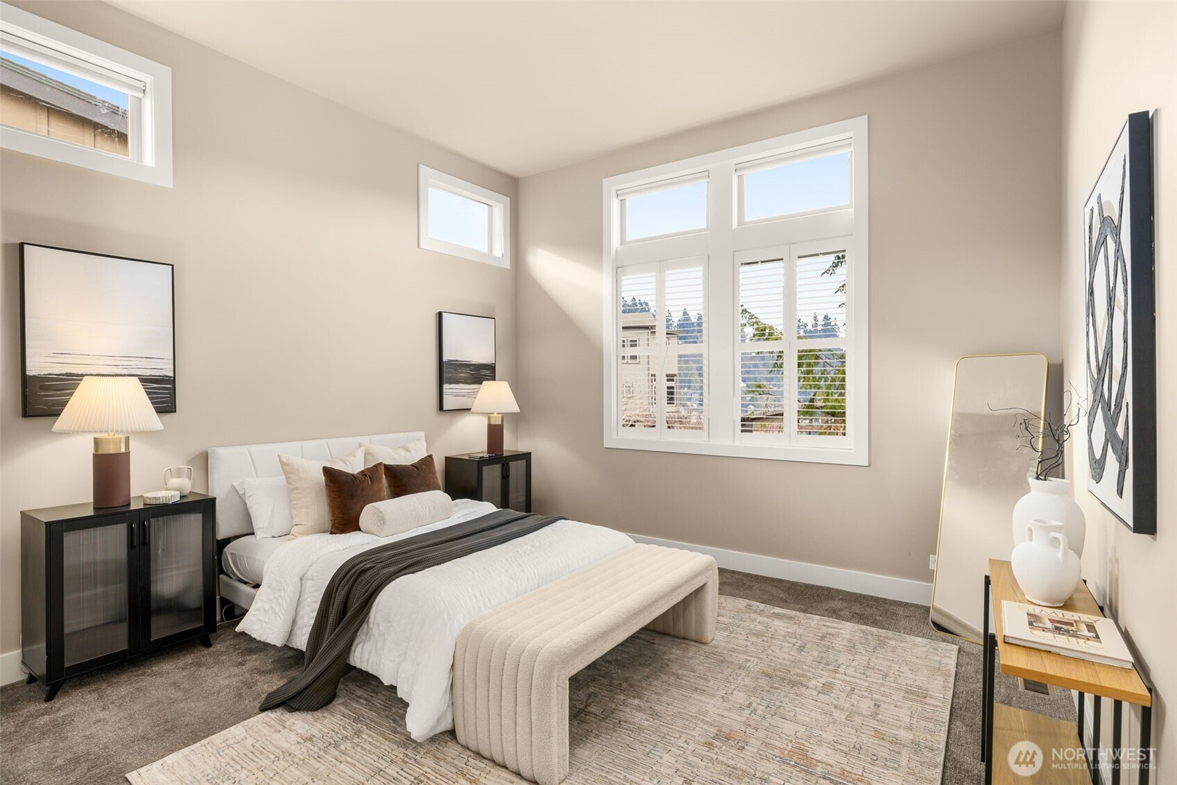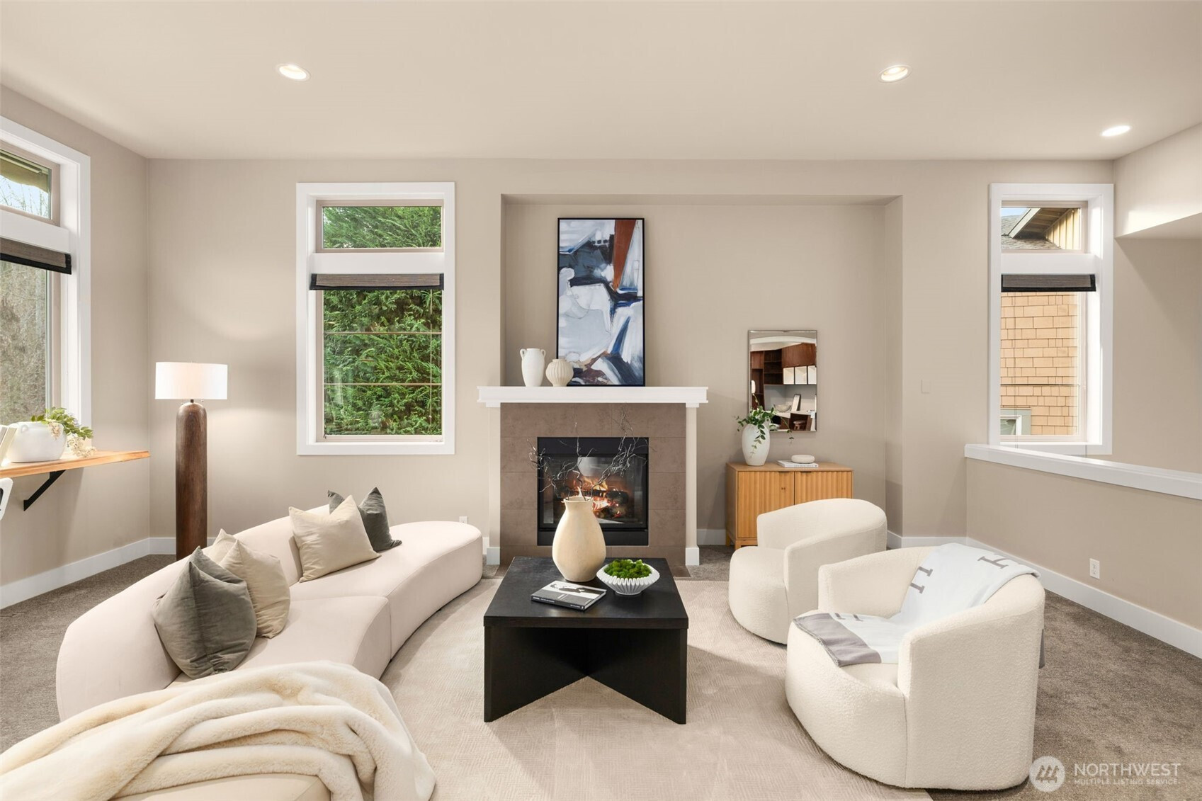 Experience resort-style living in this exceptional Barbee Mill home near the shores of Lake Washington. The 2nd-floor main living area features an expansive open design with soaring 12-foot ceilings. Right off the stairs is an office with custom built-ins which could be a 3rd bedroom. The gourmet kitchen offers granite countertops, premium cabinetry, a 6-burner range and impressive oversized island. The primary suite with a spa-like bath and custom WIC is also on the 2nd floor. The main level includes a family room, bedroom and full bath. An exceptional outdoor living space awaits in the fully fenced, meticulously landscaped yard, highlighted by a covered patio with a TV, fireplace, and motorized shades—perfect for elegant entertaining or quiet evenings at home, with direct access to a nearby scenic walking path. This upscale community features a clubhouse, dock, fire pits, and May Creek trails. Just 5 miles to Bellevue with easy access to I-405, Sea-Tac, dining and shopping. Don't miss this rare opportunity!