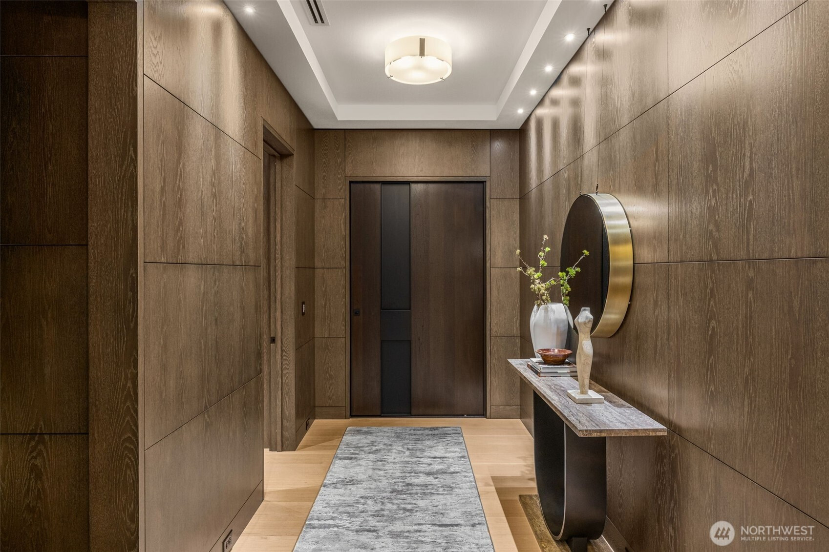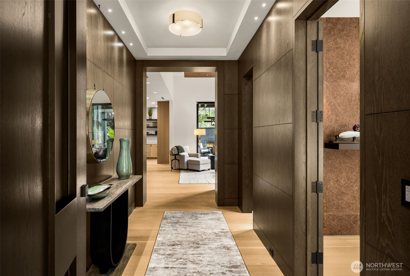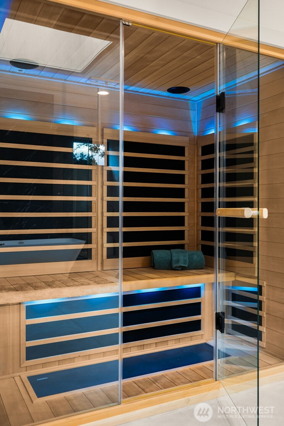 Sophisticated living in West Bellevue's Enatai community. Impressive architecture and design this one is sure to please. Moments from all things Bellevue yet tucked away at the edge of Bellevue's iconic Chism Beach Park. A fresh, open floor plan, drenched in West facing natural sunlight. This home has been meticulously designed with quality and detail unlike any other home currently availalbe. From rich, wood-paneled walls providing warmth & character, to flush base detailing for seamless integration, things seen and unseen, this beautiful property is balanced by light-filled spaces, and a tapestry of textures throughout. A Bellevue retreat blending timeless elegance & modern comfort. Enjoy an open and spacious Great Room design where you will find the chef’s kitchen featuring a suite of luxurious Thermador appliances, built-in coffee machine, warming drawer and microwave & Sub Zero wine cooler. The primary suite is truly a private sanctuary with a retreat inspired bath experience. Complete with a freestanding, stone soaking tub, dual shower & spacious infrared sauna w/ambient lighting. A distinctive main level den features a moody leather paneled wall offering unmatched character & sophistication. Step onto the private covered deck with oversized, capped wood beams for coffee or evening wine or dine al fresco by your outdoor fireplace. A home where every detail invites luxury & ease. If you've been looking for quality in design and craftsmanship, you have found it!