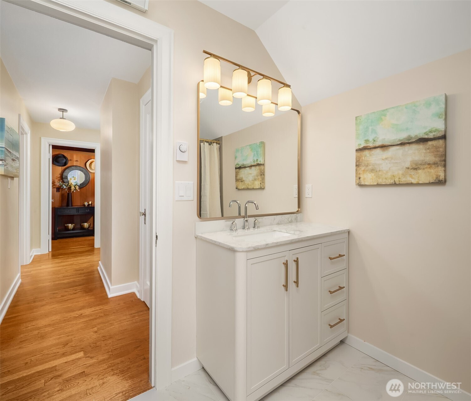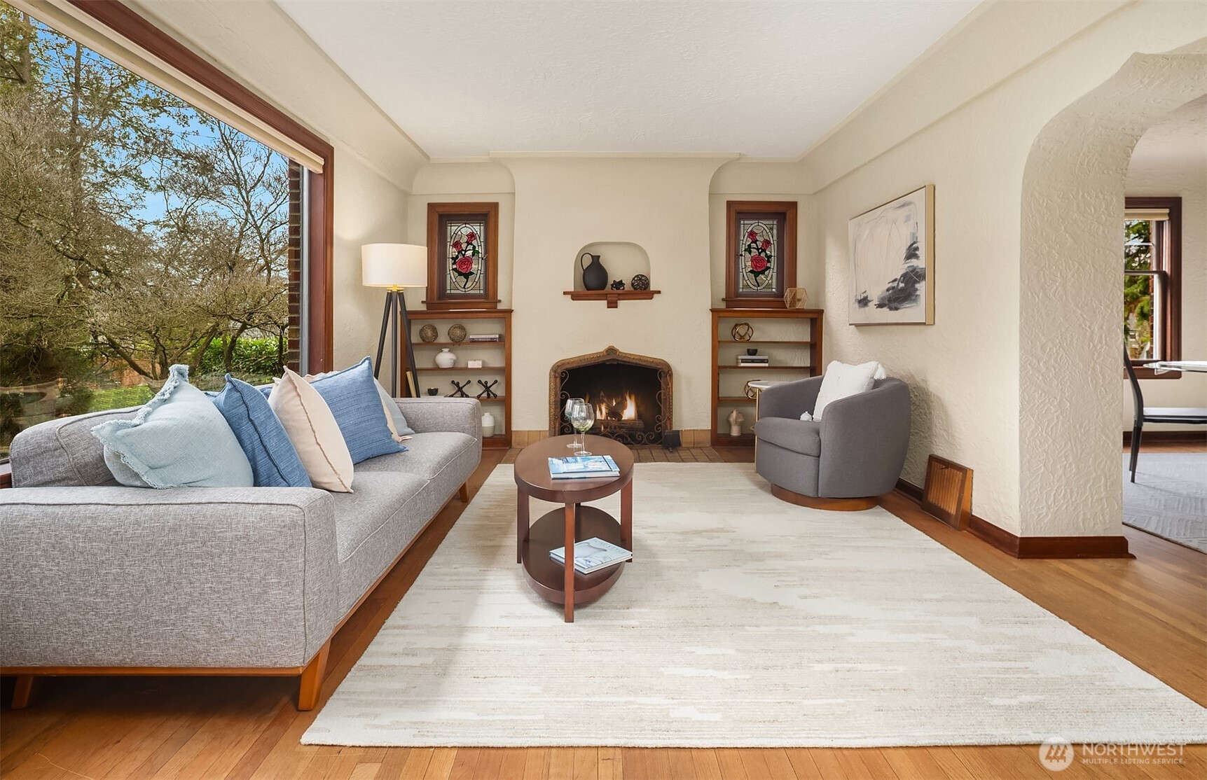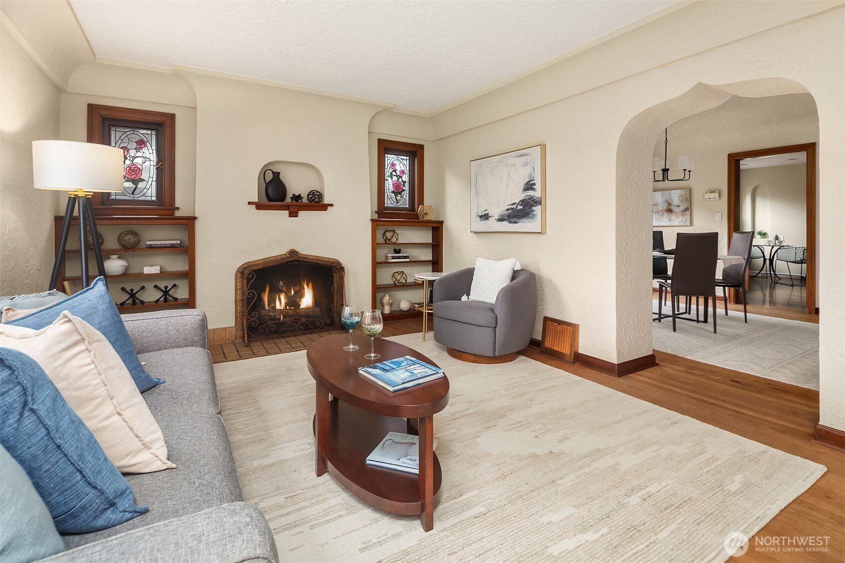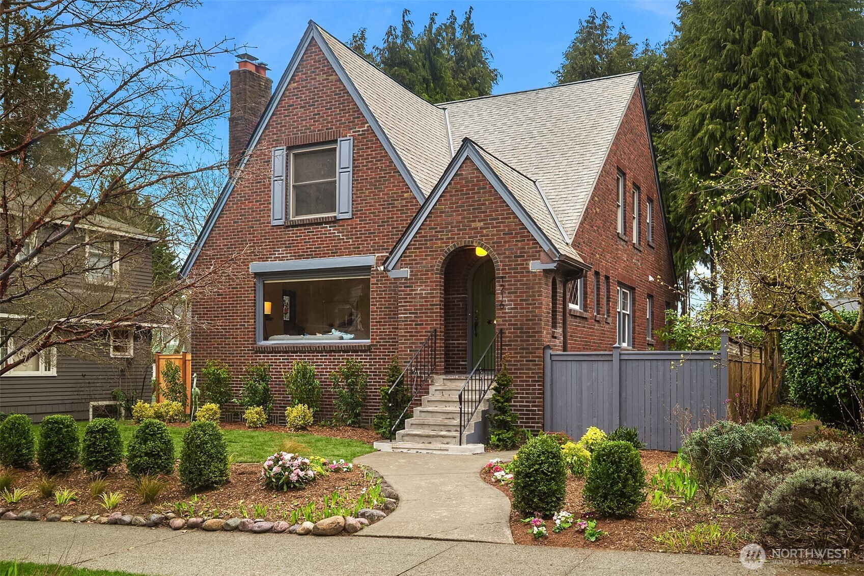 Beautifully remodeled classic Tudor in Seattle’s desirable Maple Leaf neighborhood. This light-filled home blends timeless character with thoughtful modern updates. Original woodwork and built-ins highlight the home’s historic charm, complemented by a stunning new kitchen and fully remodeled bathrooms featuring tile and natural stone. Recent upgrades include new plumbing and electrical, fresh interior paint, and hardwood floors throughout. The inviting living room features a fully operable brick fireplace and charming stained-glass windows. The well-designed layout includes two bedrooms on the main level and two upstairs, offering flexibility for a variety of living arrangements. The newly insulated and finished lower level adds valuable living space with a family room and office. Set on an oversized city lot, the fully fenced backyard has been professionally landscaped and offers a perfect outdoor setting for entertaining. The property also includes a garage and additional off-street parking pad. Ideally located near the University of Washington, Seattle Children’s Hospital, University Village, restaurants, and shopping, with easy access to light rail, bus lines, and I-5. A rare opportunity to own a beautifully updated Seattle Tudor in a prime location.