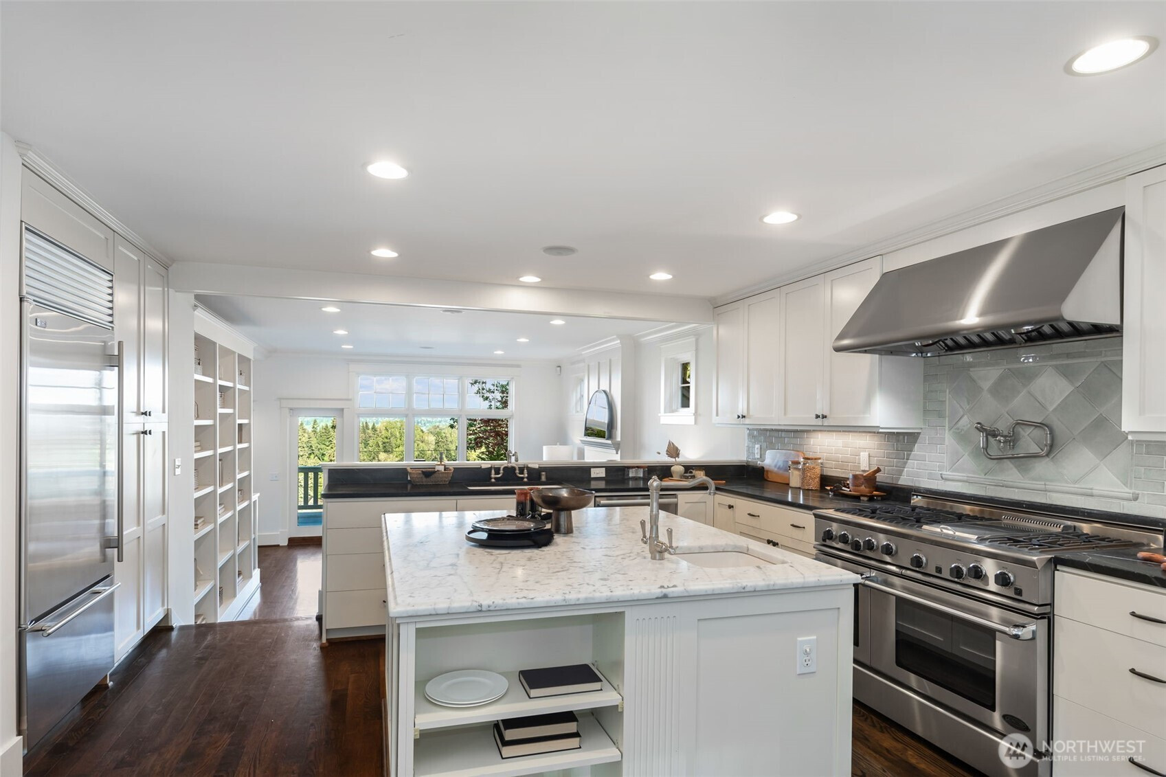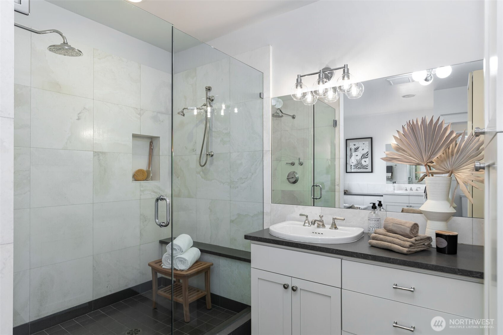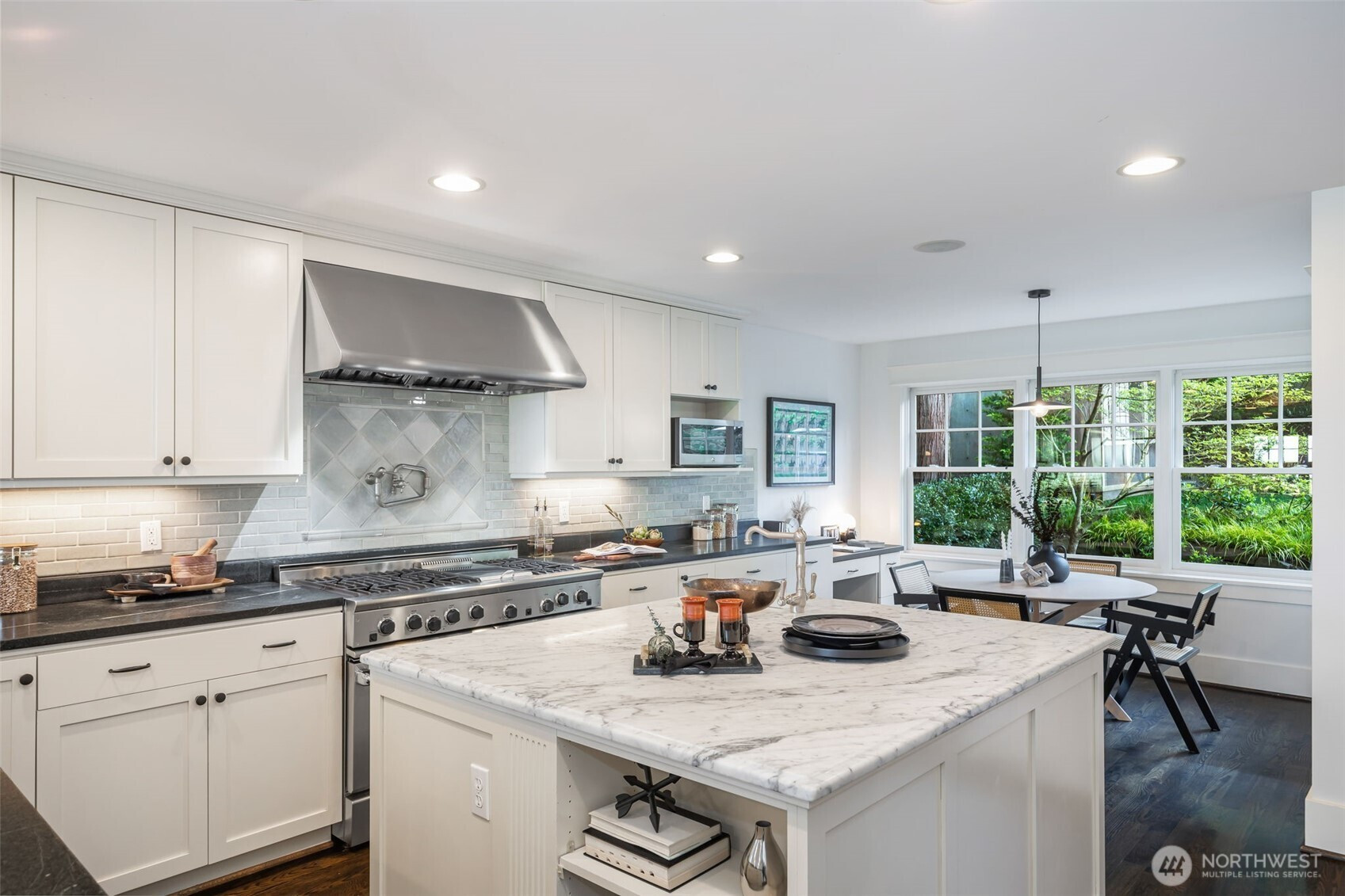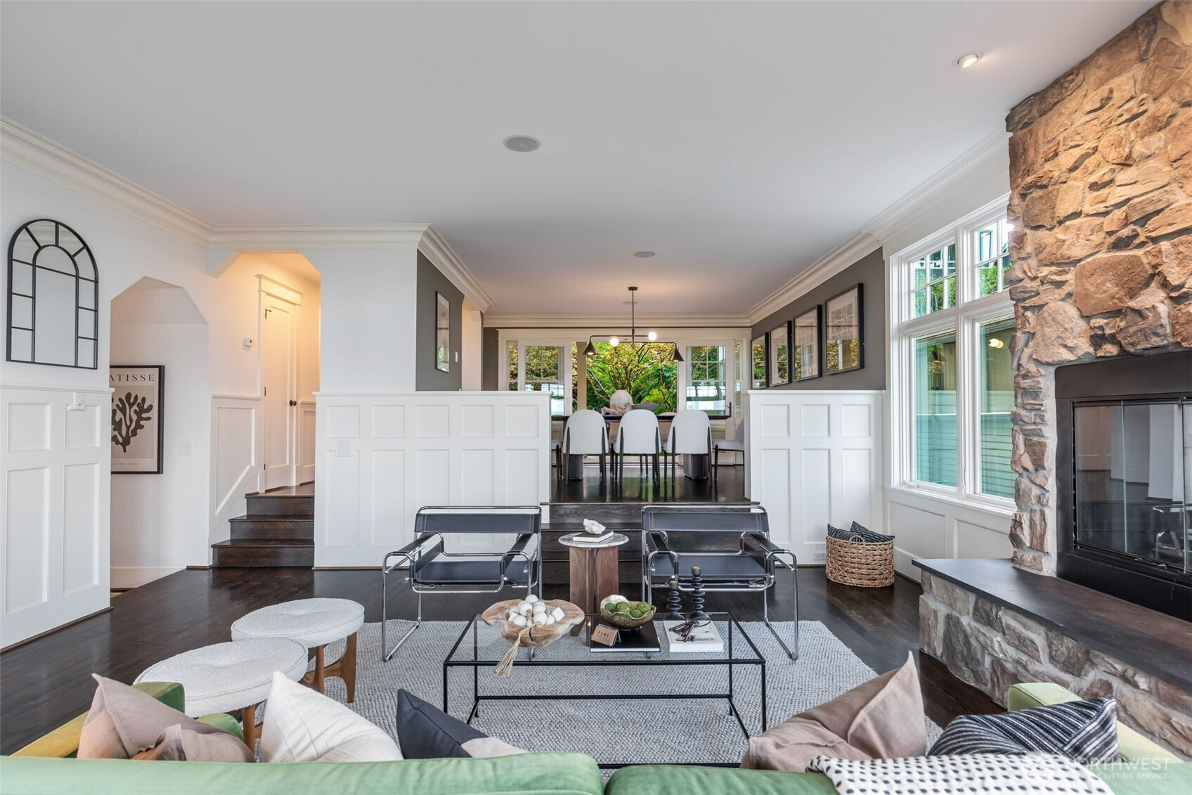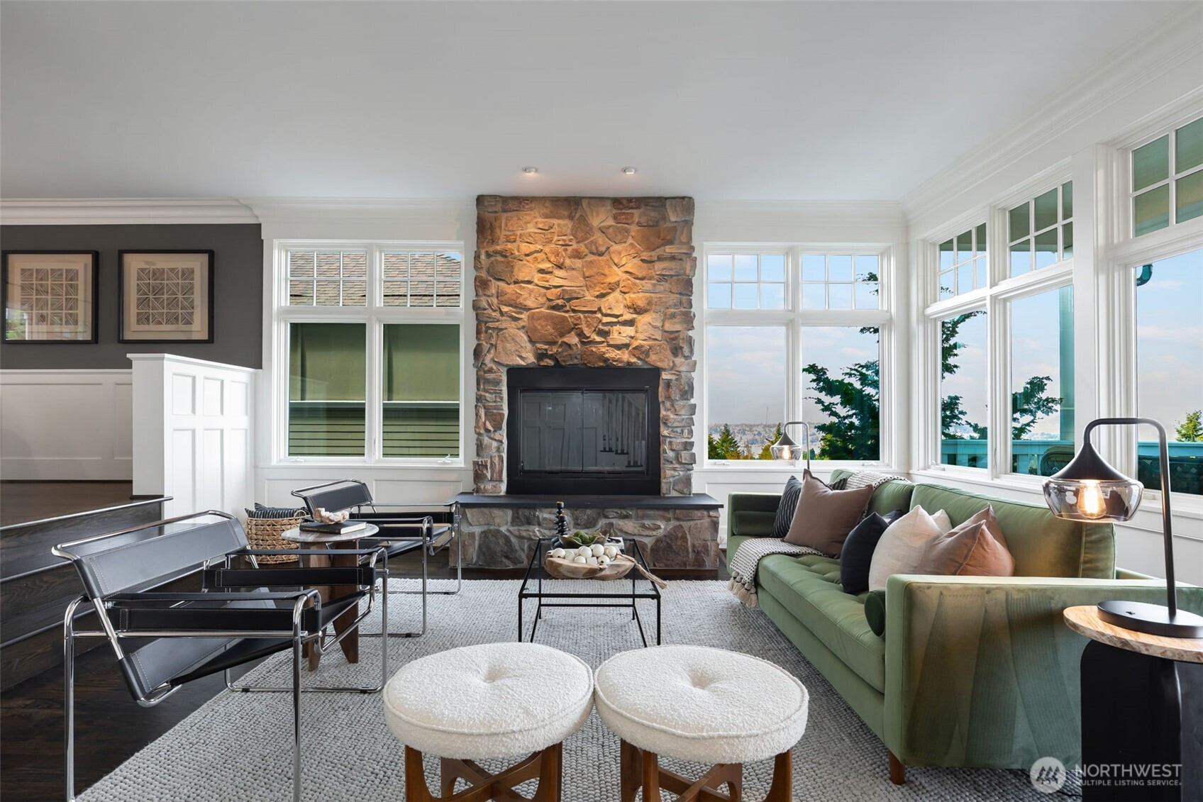 Anchored high above the street in North Capitol Hill, this Northwest Contemporary home strikes the perfect balance between premium luxury and casual approachability. Built in 2003, it’s been designed to capitalize on incredible 180° views of the Cascades from every level. Skip the stairs when you arrive—an elevator whisks you from the roomy 2-car garage straight to the main floor. This level is the heart of the home, with a fabulous circular layout. A true chef’s kitchen and formal dining in the rear of the house open to a private, park-like backyard. Back inside, the living spaces drop down in front like a theater, preserving the view from the kitchen and creating more intimate everyday moments in a house made to entertain. The showstopper? A massive terrace spans the front of the house, complete with a gas fireplace for chilly nights with friends. Outstanding functionality continues in the private quarters, with separate guest accommodations downstairs joining a large media room and office. Upstairs are three large secondary bedrooms served by a full bath with a walk-in shower (no bathtub) and laundry. The massive primary suite leaves nothing to be desired, featuring best-in-house views of the sunrise from bed or the private deck. This house does it all!