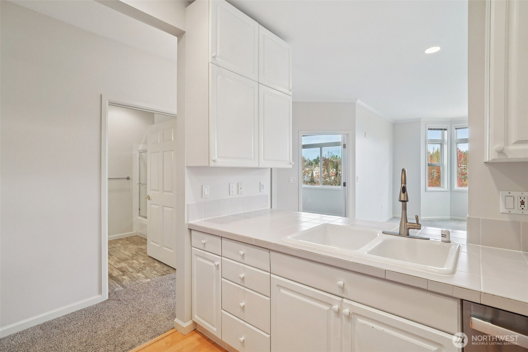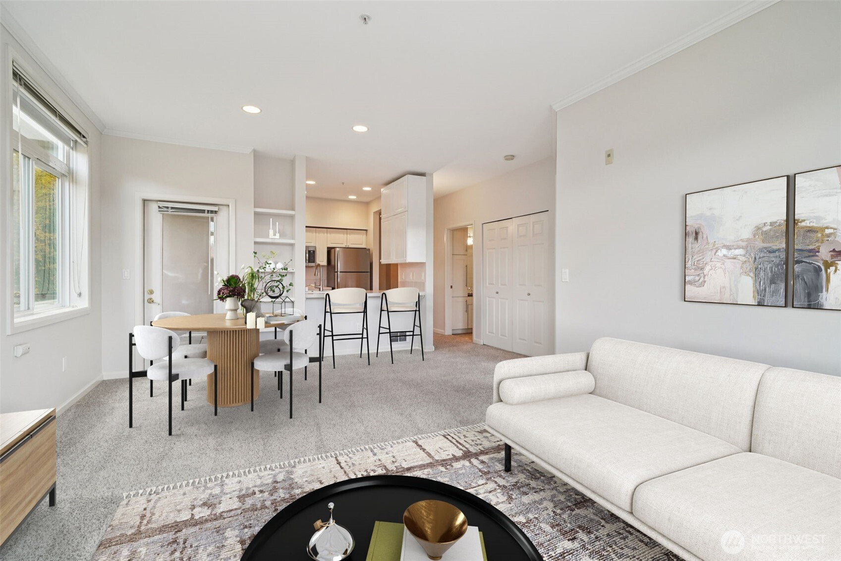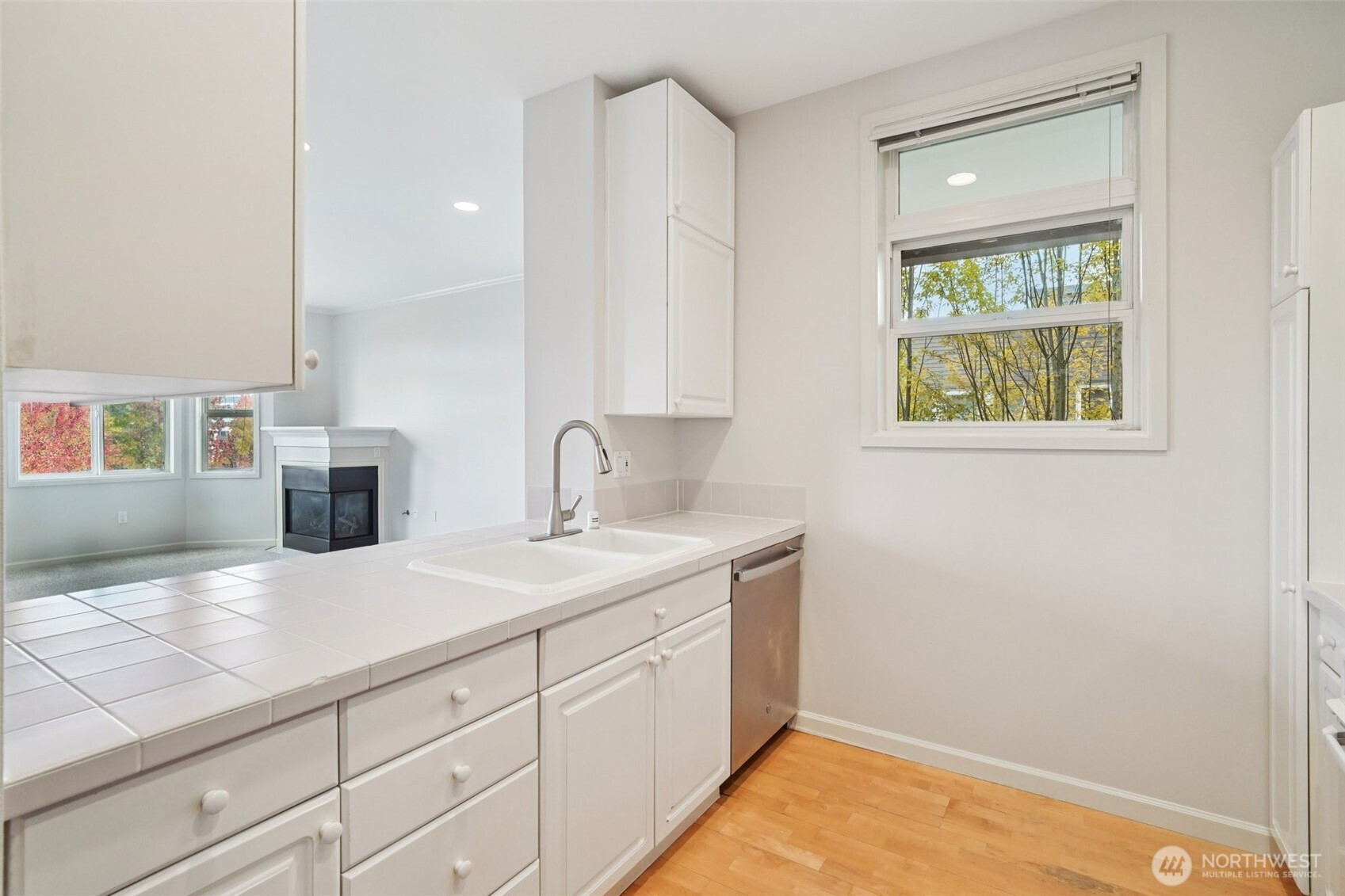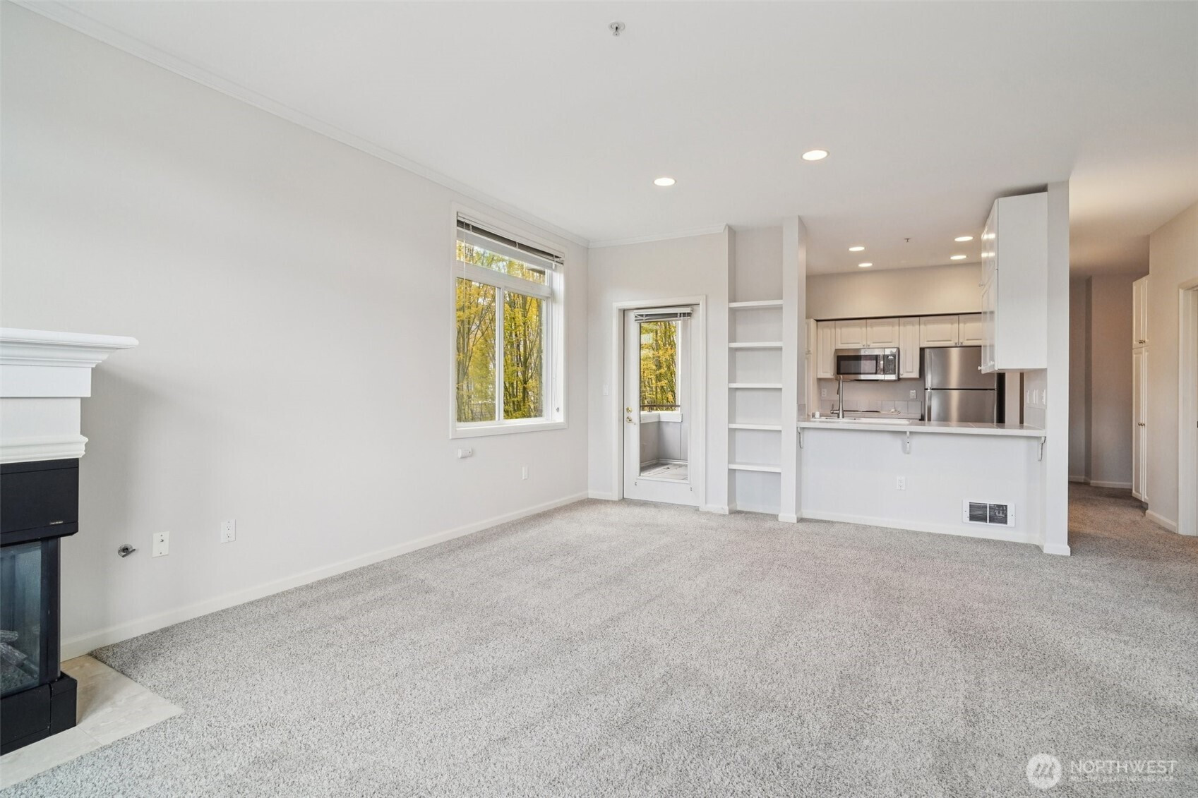 Welcome to Plaza on State in the heart of downtown Kirkland! This freshly painted condo offers a bright, open layout filled with natural light. Enjoy a cozy fireplace and private balcony—perfect for relaxing or entertaining. The kitchen features hardwood floors, a breakfast bar, and generous storage. The spacious primary suite includes a private bath and double closets, plus a second bedroom and full bath. Located in an amazing complex with secured access, great amenities, bike storage, and two parking spaces in a common garage. Conveniently close to the Transit Center, parks, library, pool, Arts Center, and easy access to Google, Microsoft, and I-405!
