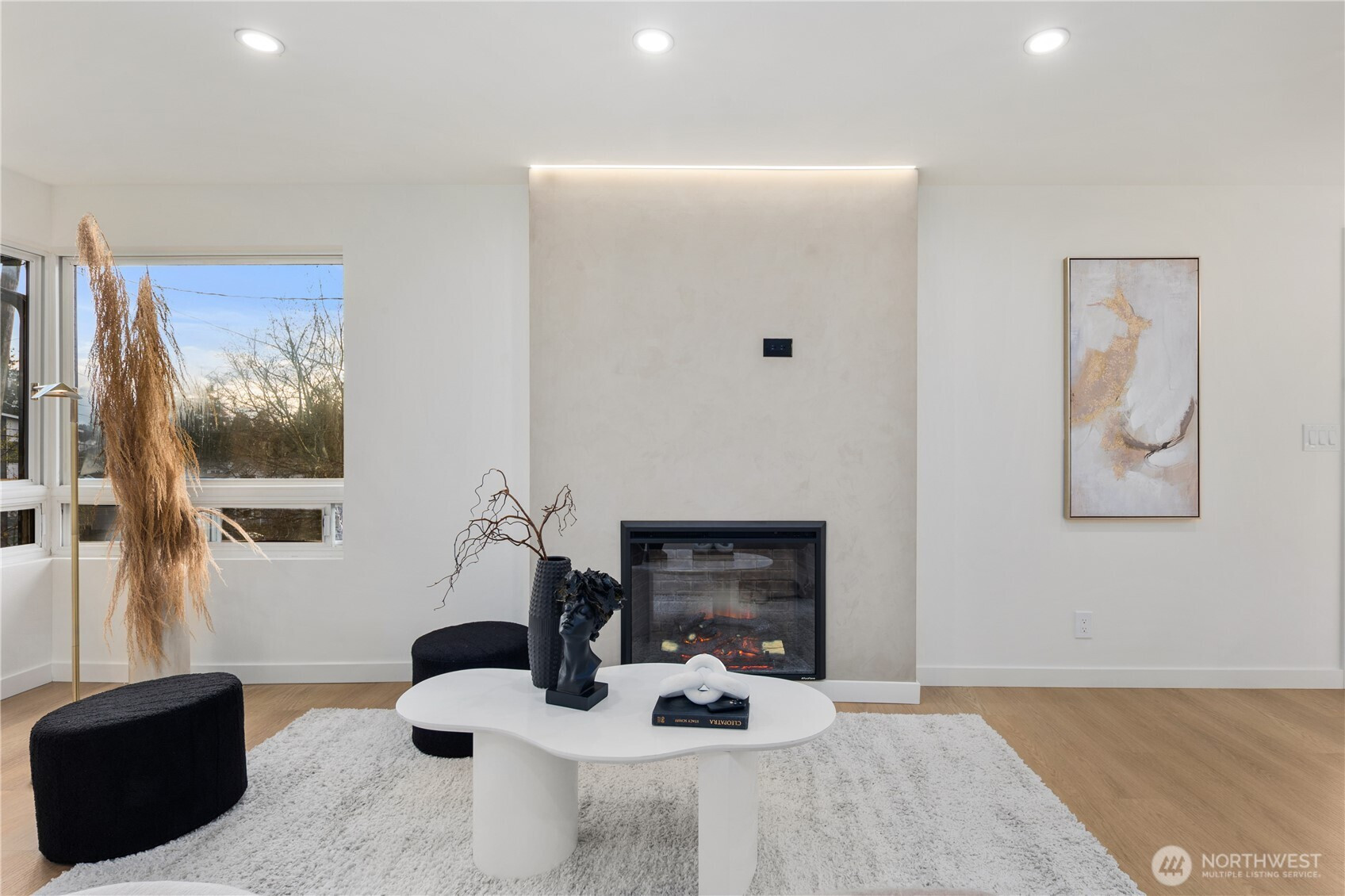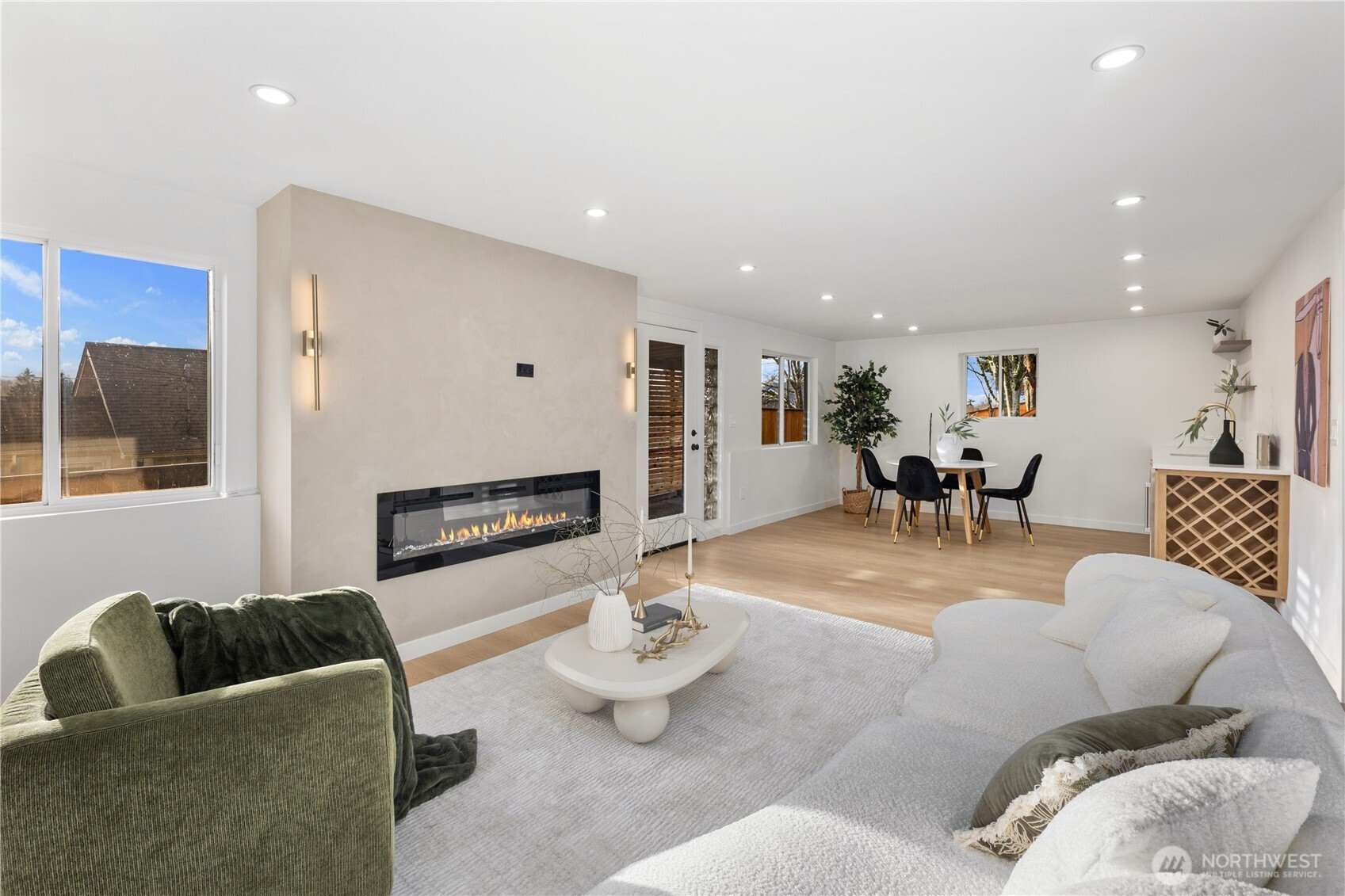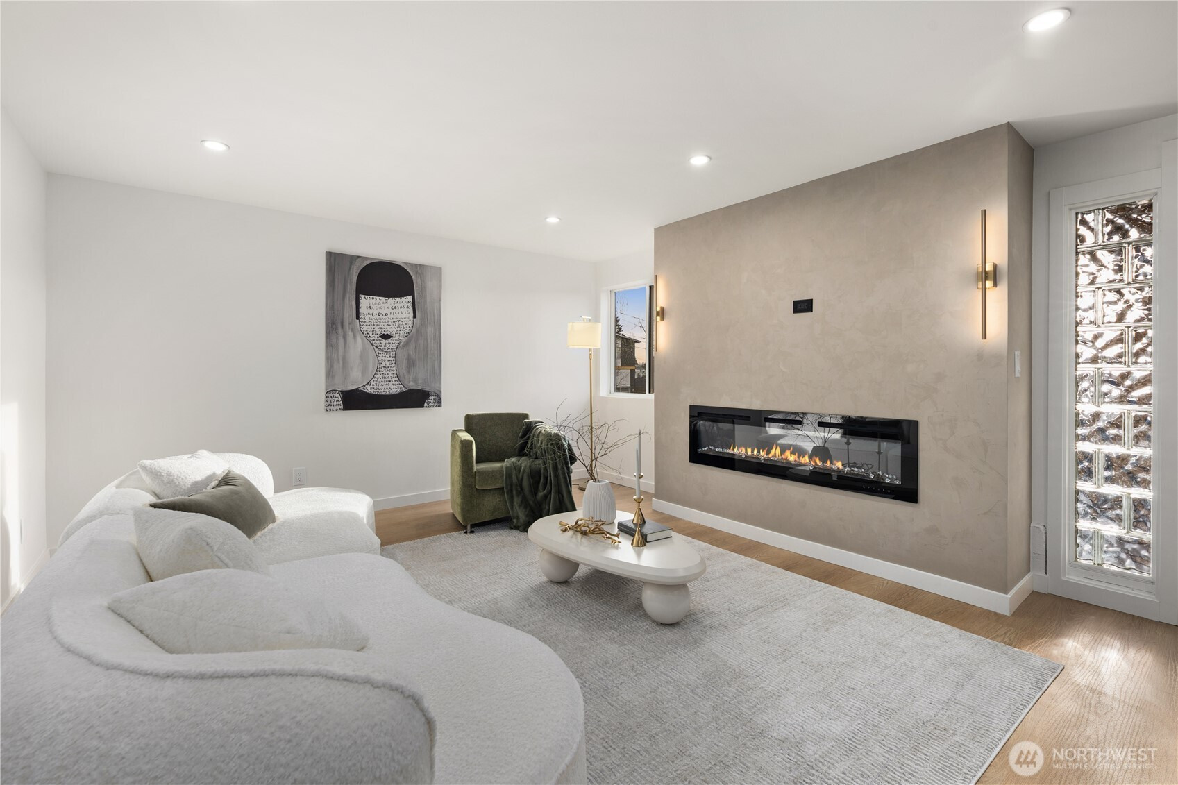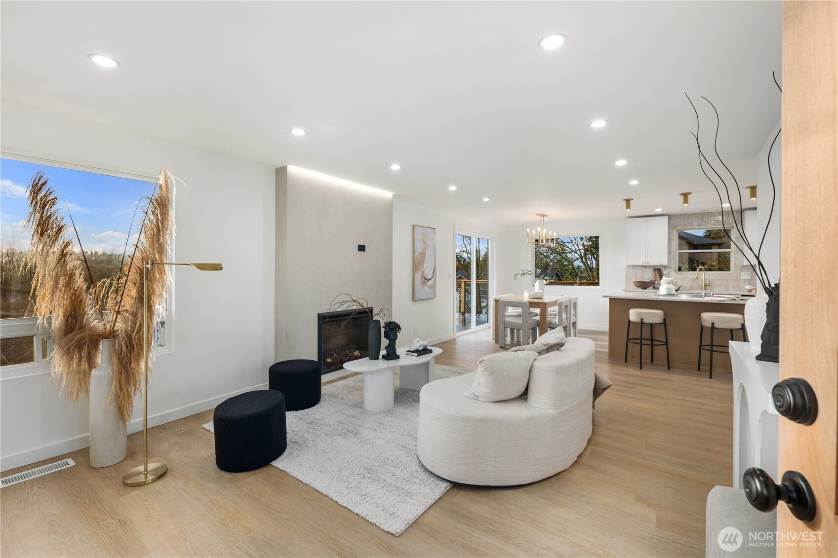 Absolutely must-see West Seattle masterpiece—an extraordinary 4-bedroom,3-bath residence defined by bespoke finishes, meticulous craftsmanship,&sophisticated design throughout.The main level impresses with a handcrafted tadelakt plaster fireplace,paired with a sleek electric insert and ambient lighting,creating a dramatic yet inviting focal point.The open-concept kitchen is a true showpiece, featuring a premium downdraft range,custom designer island,Taj Mahal quartzite countertops, high-end stainless appliances, & a striking statement backsplash.The dining area opens to an expansive deck, ideal for elevated entertaining, alfresco dining, or private outdoor relaxation.The primary suite is a refined retreat,boasting a designer accent wall, curated lighting, and a fully customized walk-in closet.Its spa-inspired ensuite includes dual vanities,curbless walk-in shower, anda luxury smart bidet toilet.The lower level features two additional bedrooms,a tadelakt-finished bath,private mirrored fitness studio,&oversized laundry with cabinetry,sink,and folding space.A separate-entry family room with kitchenette, beverage cooler, and designer fireplace offers versatility for guests or multi-generational living.Complete with A/C,dramatic soffit lighting, premium metal roof, oversized parking with RV/boat space,covered carport,and beautifully manicured grounds. Ideally located near parks, Alki Beach, and downtown Seattle. Opportunities like this in West Seattle are rare-and they dont last.