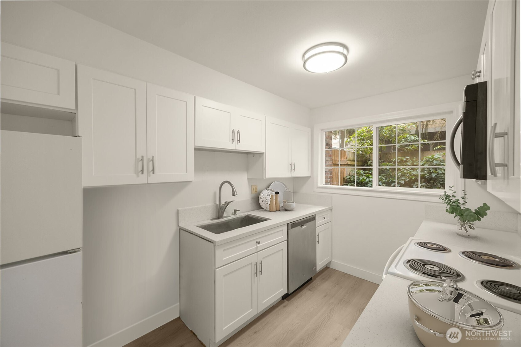(503) 893-8874An exceptional end-unit opportunity in Newport Hills Townhomes offering added privacy, natural light, and a seamless indoor-outdoor lifestyle. Thoughtfully updated kitchen and baths pair with newer laminate flooring across the main living area, creating a clean, modern feel. The functional layout features two bedrooms with closets and an inviting living space that opens to a private, fully fenced patio—ideal for relaxing, entertaining, or pets. Enjoy the convenience of one assigned parking space plus abundant guest parking. Community amenities include a pool, tennis and basketball courts, playground, dog run, clubhouse, and expansive green space. Walking distance to award-winning Newport Heights Elementary and Chinese immersion Jing Mei School —all within the highly regarded Bellevue School District. Easy access to I-90 and I-405, and just minutes to downtown Bellevue. Walk to Newport Hills Swim & Tennis Club, an Asian grocery market, and nearby neighborhood conveniences. No Rental Cap. A perfect place to call home.