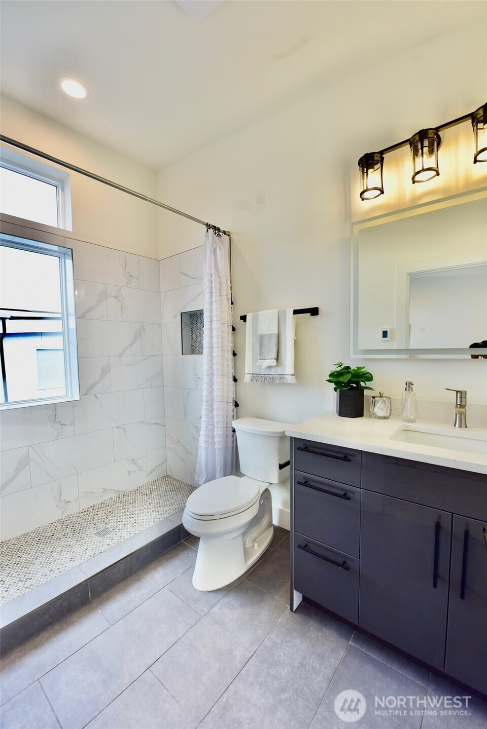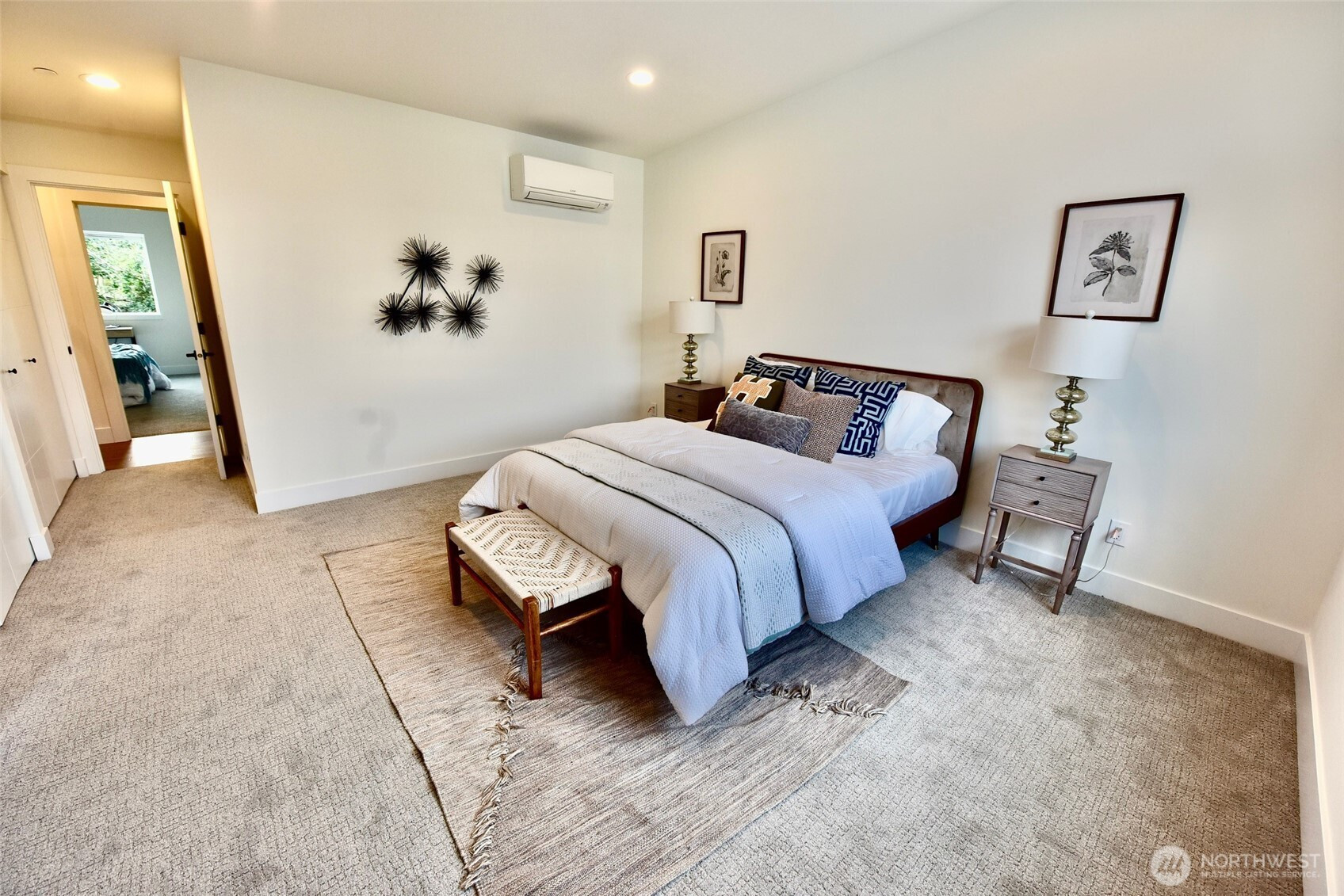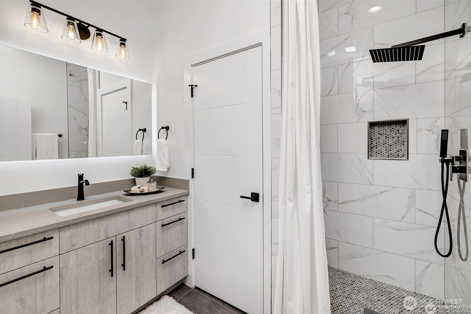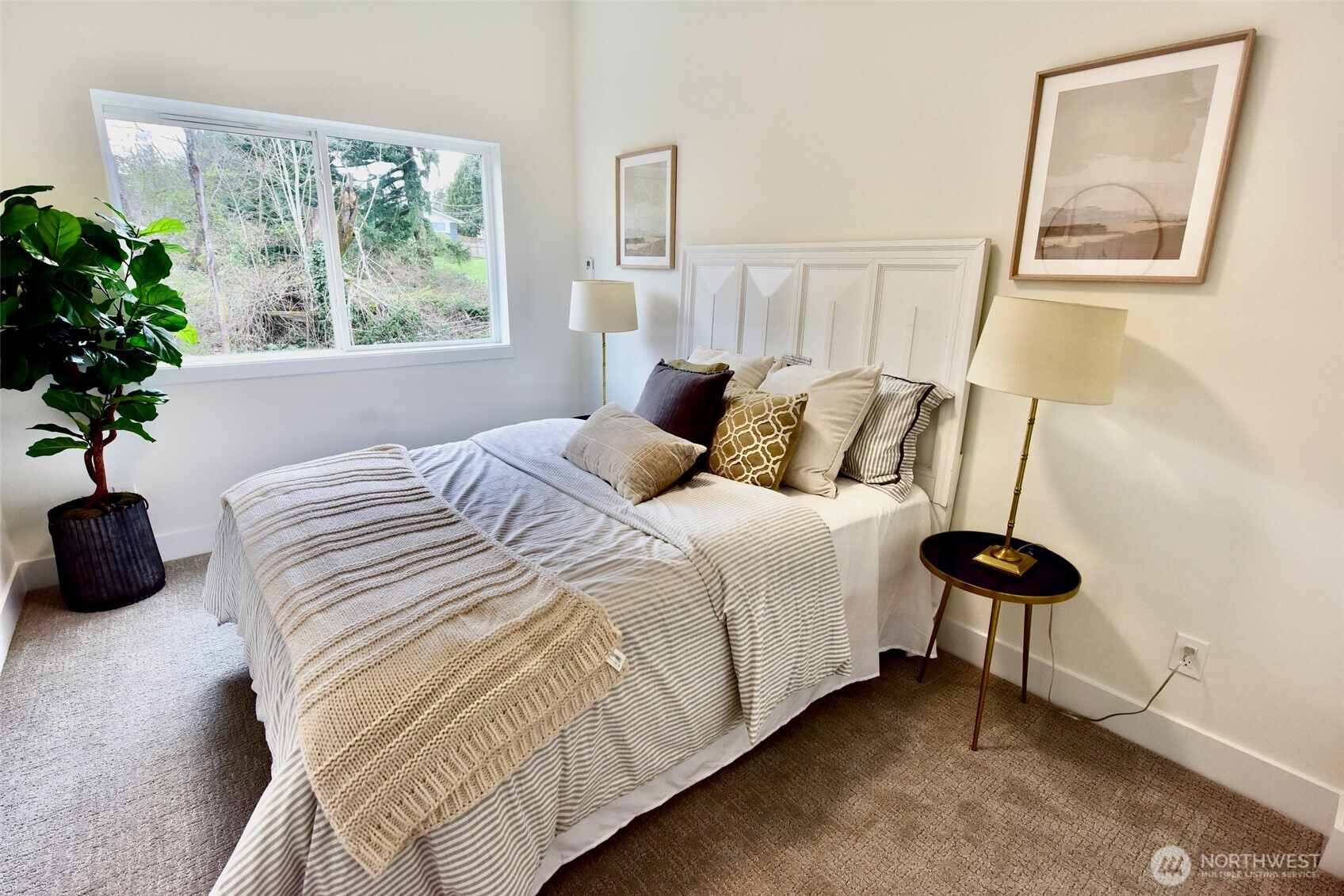Welcome to Villa Townhomes, a new 9-home community offering thoughtfully designed 4-bedroom, 3.5-bath residences. The entry level includes a bedroom with a full bath and a finished 2-car garage with an EV outlet. The main level features open-concept living, dining, and kitchen areas with large windows and a half bath. The designer kitchen showcases stainless steel LG appliances, including a ThinQ gas range, quartz countertops, and subway-tile backsplash. The upper level offers a primary suite with a walk-in closet and ensuite bath, two additional bedrooms, a full bath, linen storage, and laundry. Builder features include high ceilings, radiant floor heating, ductless mini-split heating and cooling in every room, a tankless water heater, and lighted bathroom mirrors. Convenient access to shopping, amenities, major freeways, and approximately 8–10 minutes to Sea-Tac Airport.