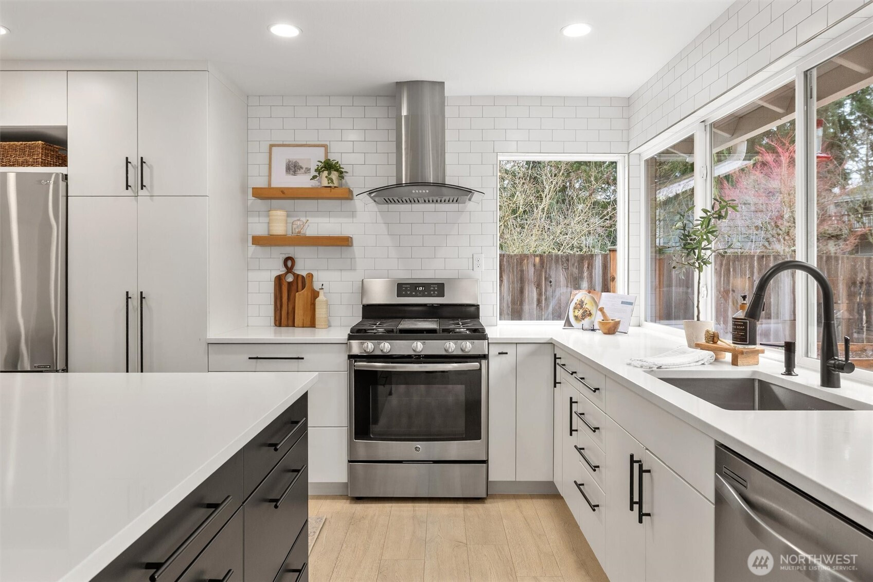 Beautifully Updated Rambler Ideally Located in the Heart of the Coveted Kingsgate 3&4 Community! This FULLY Remodeled Home Features 3 beds/2 bath and Spacious Open-Concept Layout Highlighted by Vaulted Ceilings with Large Kitchen, Living, Dining. Oversized Sliders Open to a Flat and Fully Fenced Backyard with a Large Tiered Trex deck—Perfect for Entertaining! The Finished Garage/Utility Room Comes Complete with a Brand New Washer/Dryer. Enjoy this Highly Sought after, Vibrant Community with Private Pool and Swim Team Access. Minutes to the NEW Village at Totem Lake, Sophisticated Woodinville Wine Country, Evergreen Hospital and Much More! Ideally located for Easy Commutes. AC! NEW Carpet! NEW Paint! Move in ready! LWSD