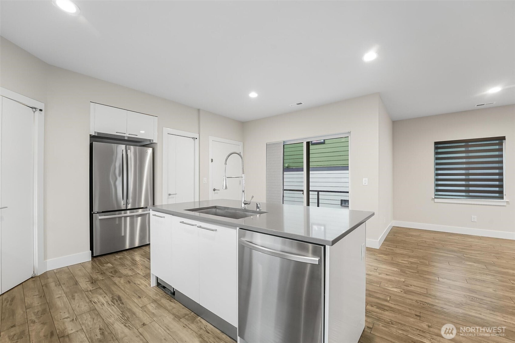 Outstanding opportunity on this 'better than new' 3 bedroom, 2 1/2 bath 2 story home in Kent's Rainier Park community. 2 car alley access garage. Spacious floorplan ideal for today's busy lifestyles. Modern and high-end finishes by Ichijo, an award-winning builder. Features include: air conditioning, tankless water heater, laminate flooring throughout, designer window coverings, LED Lighting, exclusive magnetic door stops, architectural interior doors w/quarter turn door levers, dual slide windows, and more. This home has white piano finish cabinets in kitchen w/Blum pull down shelves & Quartz countertops, walk-in pantry and center island/breakfast bar. Spacious primary bedroom with vaulted ceiling & walk-in closet. Spa-like primary bath includes double sinks, soaking tub, walk-in shower, bidet and tile floor. Bonus loft on 2nd floor is a great TV or entertainment room. Start and end your day with your beverage choice on the covered patio. Neighborhood park 1 block away. Moment away from many parks including, Clark Lake and Lake Meridian. Close to all the amenities at Kent Station including movie theater, restaurants and Sounder commuter train. Some photos virtually staged. Welcome home!