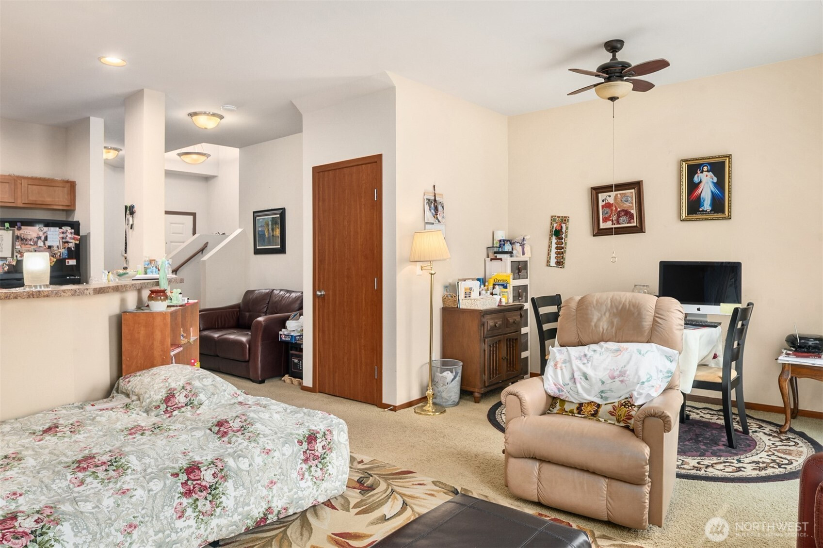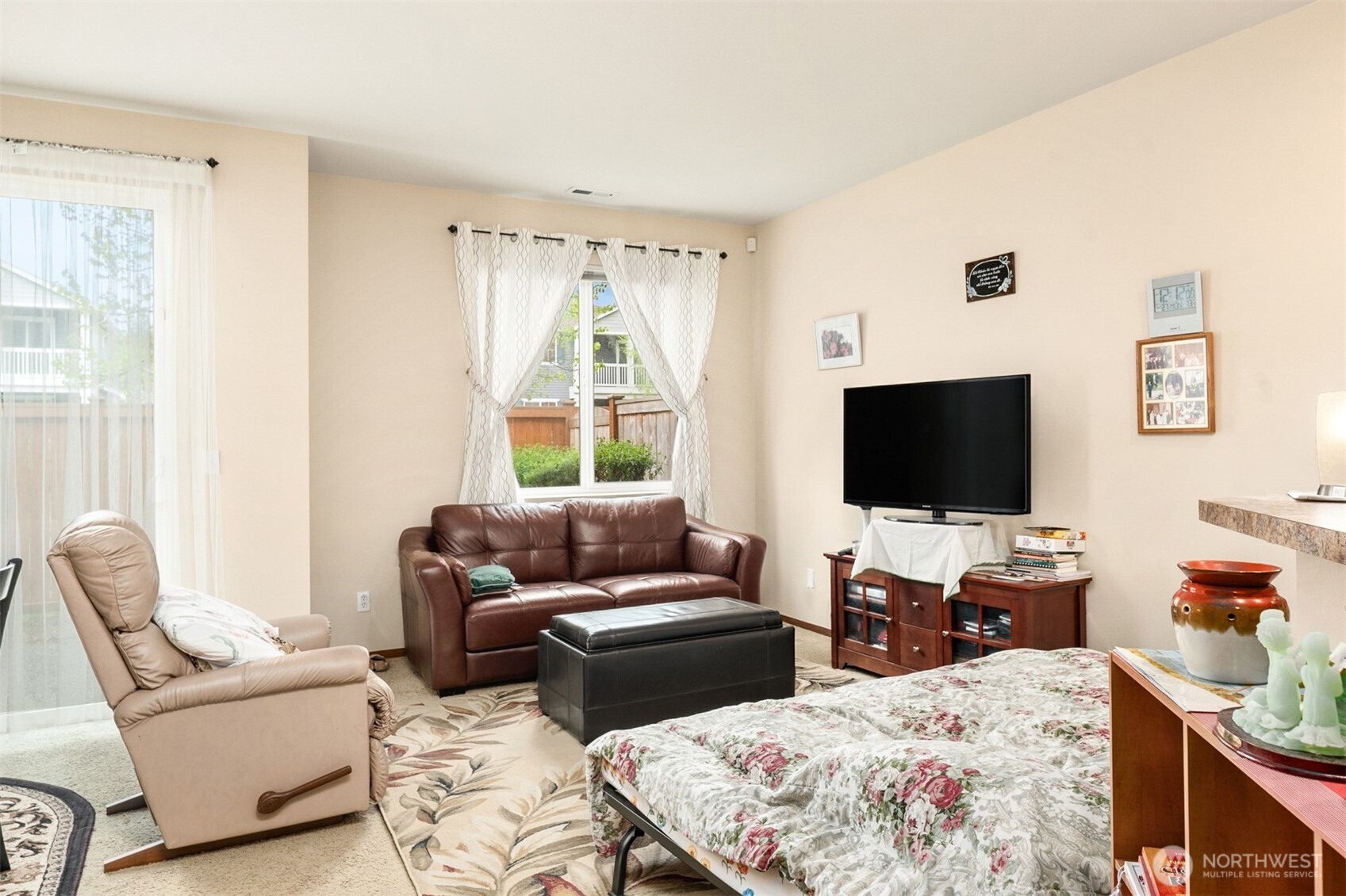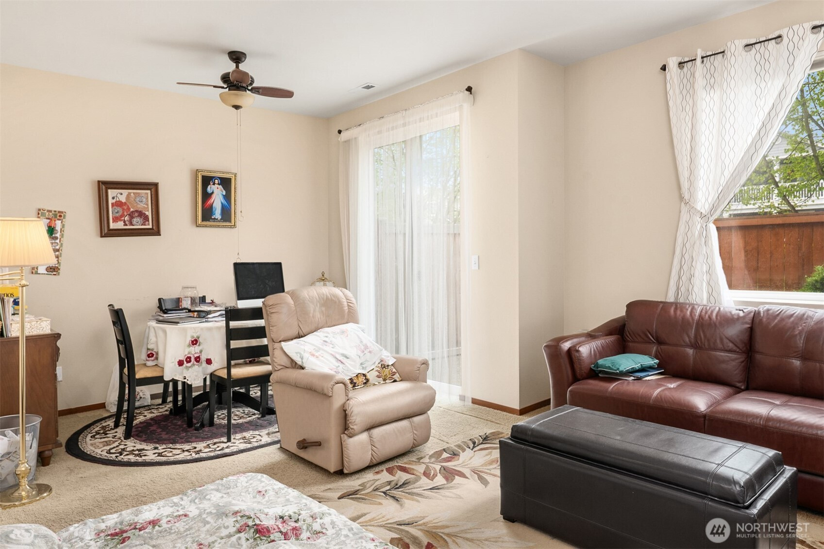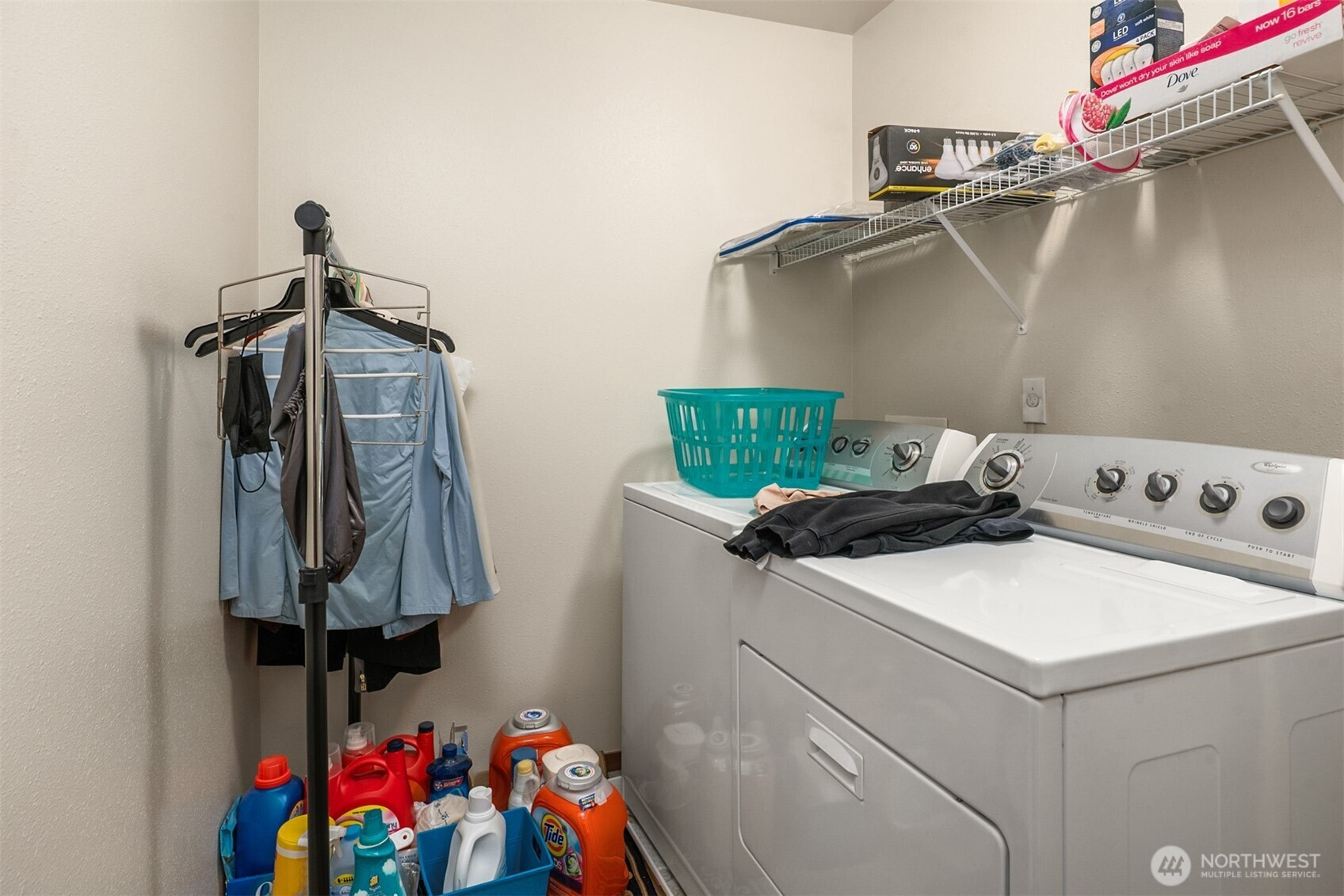 Conveniently located near freeways, shopping, and multiple transit options, this well-designed home offers comfort, functionality, and lasting value. The main floor features an open kitchen-to-living layout, a convenient half bath, and a slider leading to a private, fenced backyard. A spacious garage adds everyday ease in this prime, commuter-friendly location. Upstairs, you’ll find a generous primary suite with a full bathroom, along with a second primary bedroom featuring its own private full bath—perfect for guests, roommates, or flexible living. Situated close to the scenic community pond, open your window and fall asleep comforted by the soothing sounds of the tranquil water feature.