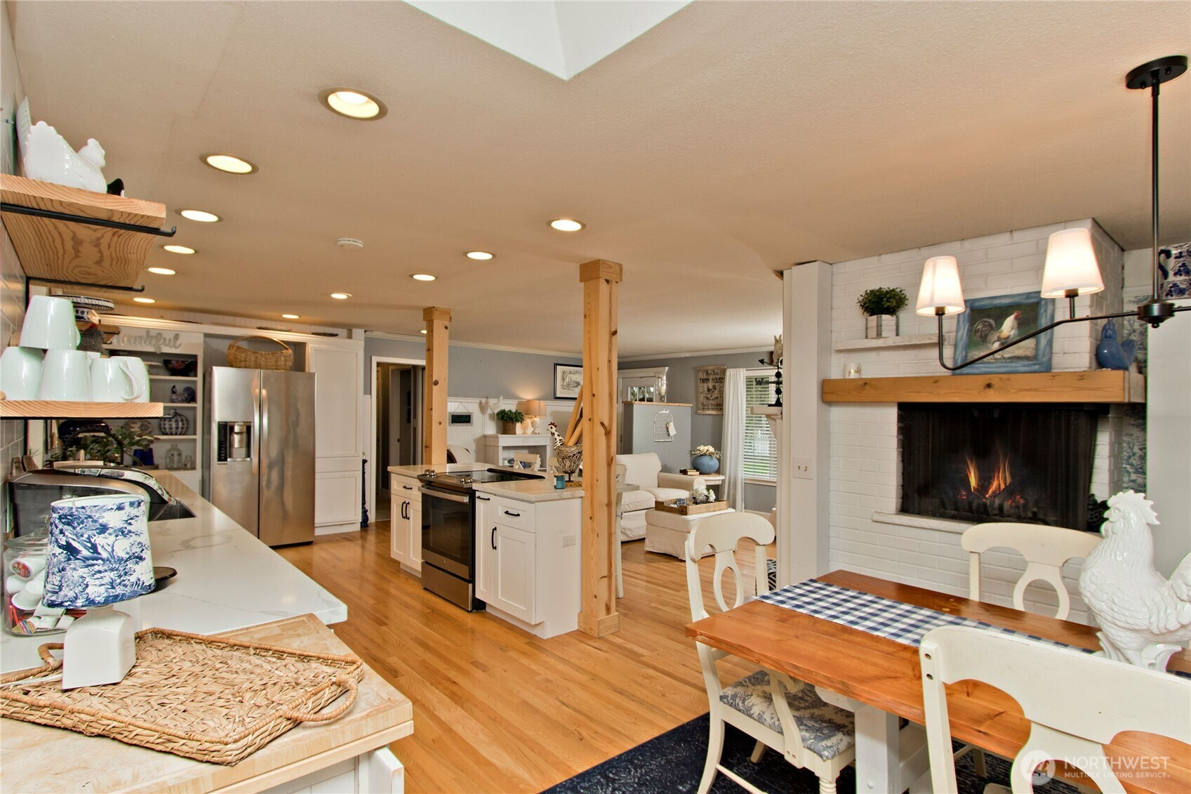 (503) 893-8874Charming rambler with 24x30 SHOP WITH ELECTRICITY AND A FINISHED 15x15 HEATED OFFICE/FLEX SPACE UPSTAIRS. Many thoughtful updates. Originally a 3-bedroom, converted to a 2-bedroom. Features gorgeous hardwood floors and a warm, inviting double fireplace shared between the living and dining rooms. The updated kitchen is the heart of the home, with quartz countertops, open shelving, and stainless steel appliances, and it leads to the outside deck—perfect for entertaining. Spacious family room with French doors to the backyard. Unwind in the primary bedroom with an extra-spacious walk-in closet and French doors that also open to the backyard. Large utility room, A/C, newer water heater, and a spacious yard with a classic white picket fence.