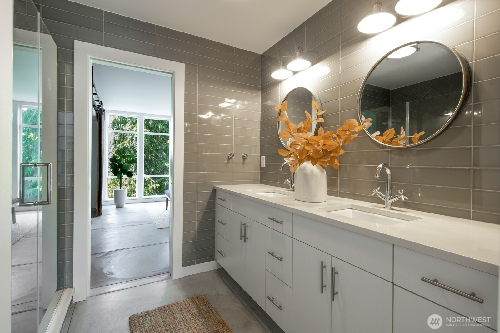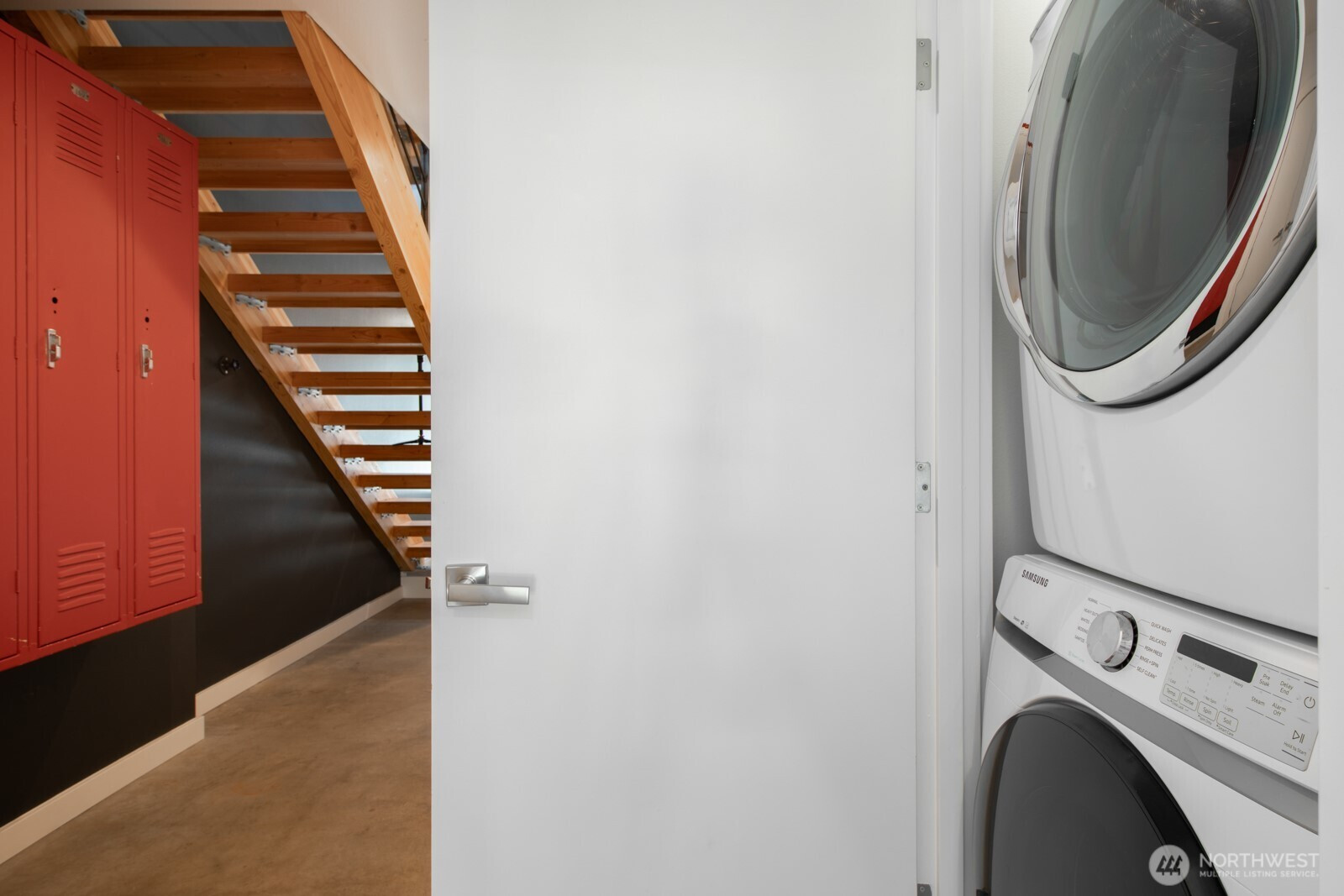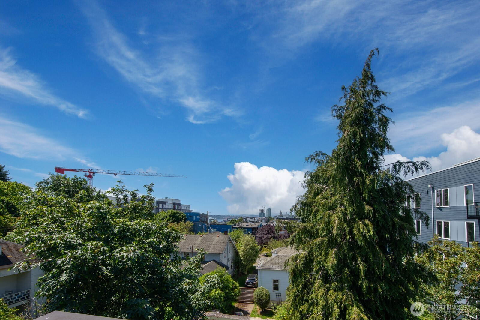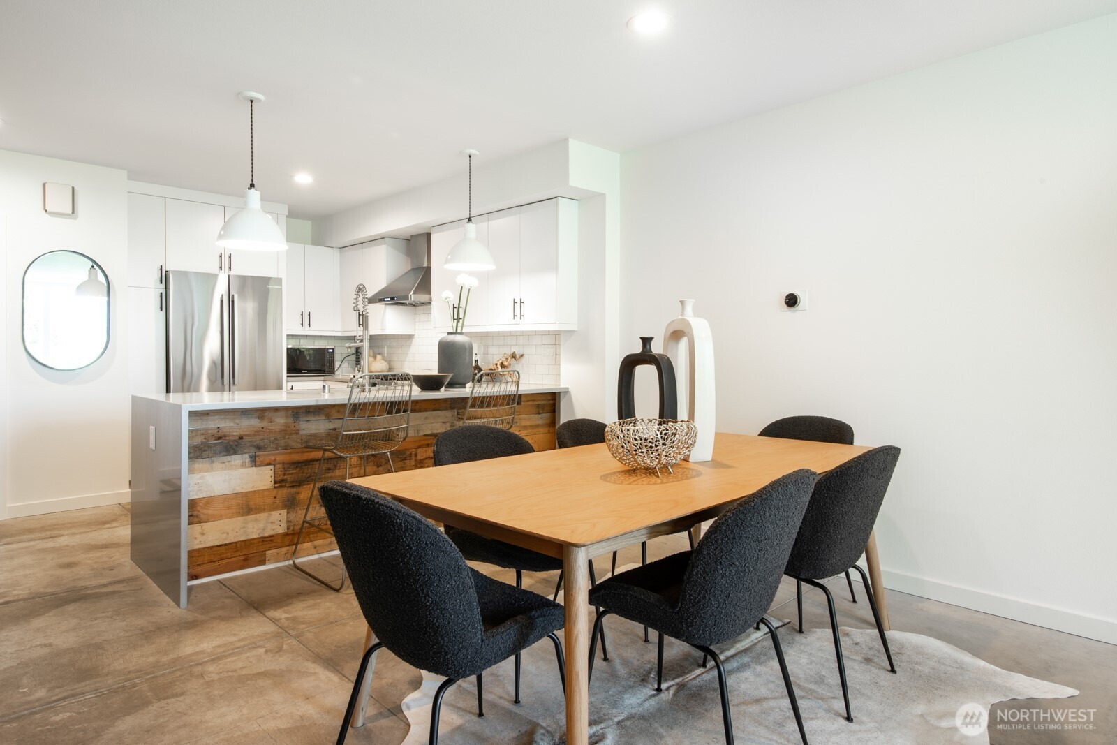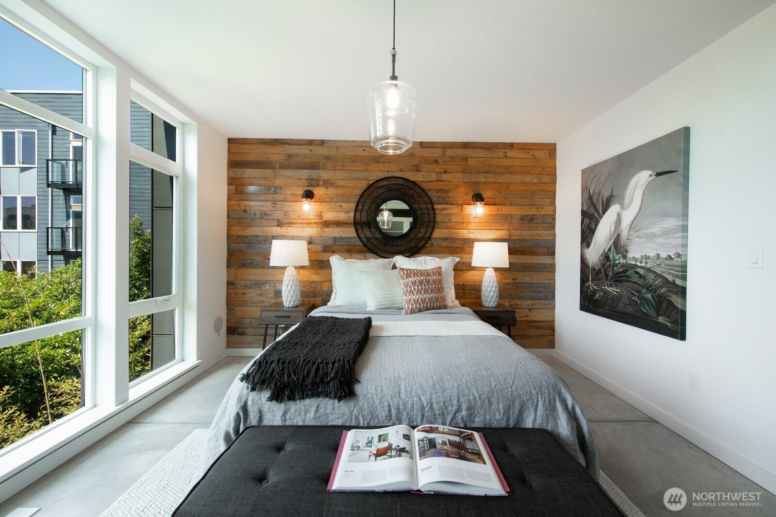 Stylish, spacious, and perfectly located—this light-filled townhouse has it all! The huge-wide open main floor features a sleek kitchen that flows seamlessly into a generous sized dining and living area, framed by floor-to-ceiling windows overlooking your private patio & offering tons of natural light. Upstairs, the west-facing primary suite offers double closets and a full bath, plus an additional bedroom. A lower-level bedroom with adjacent bath is perfect for guests or a home office. Polished concrete floors, floating staircases, and timeless finishes throughout. Enjoy sweeping city, Sound, and mountain views from the rooftop deck. Tucked away in a quiet spot with easy access to downtown, freeways, dining, and more! Don't miss this one!