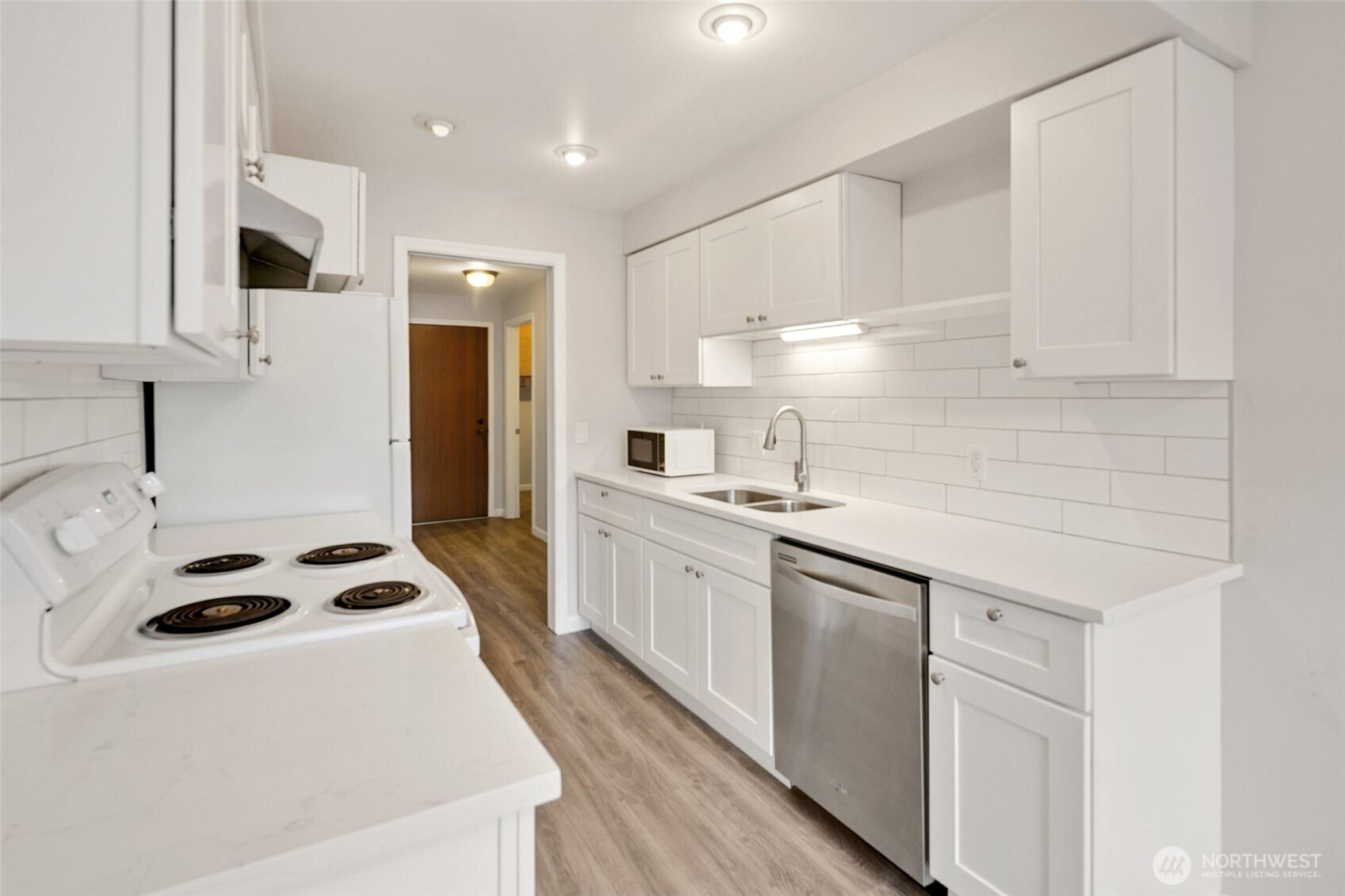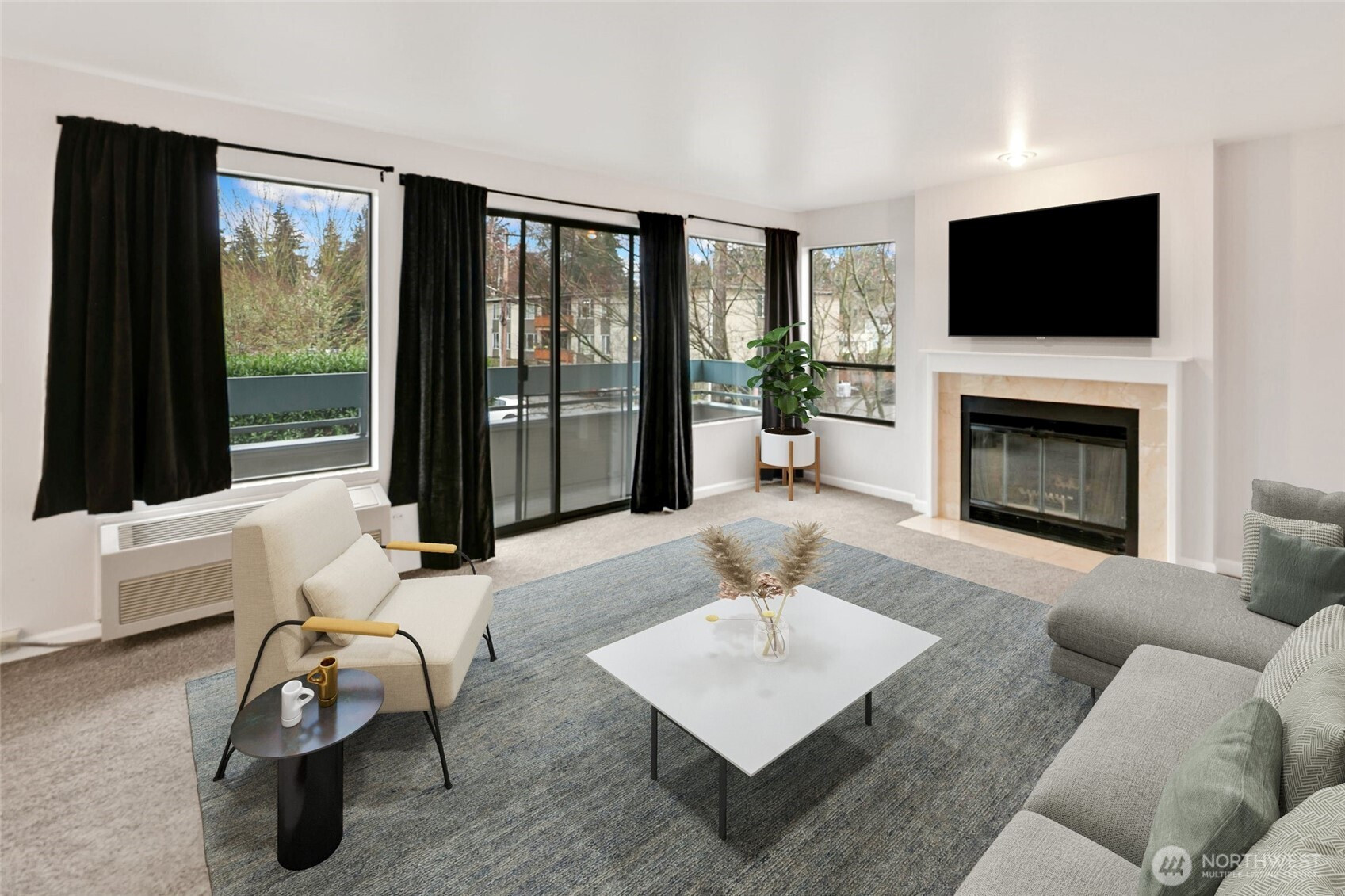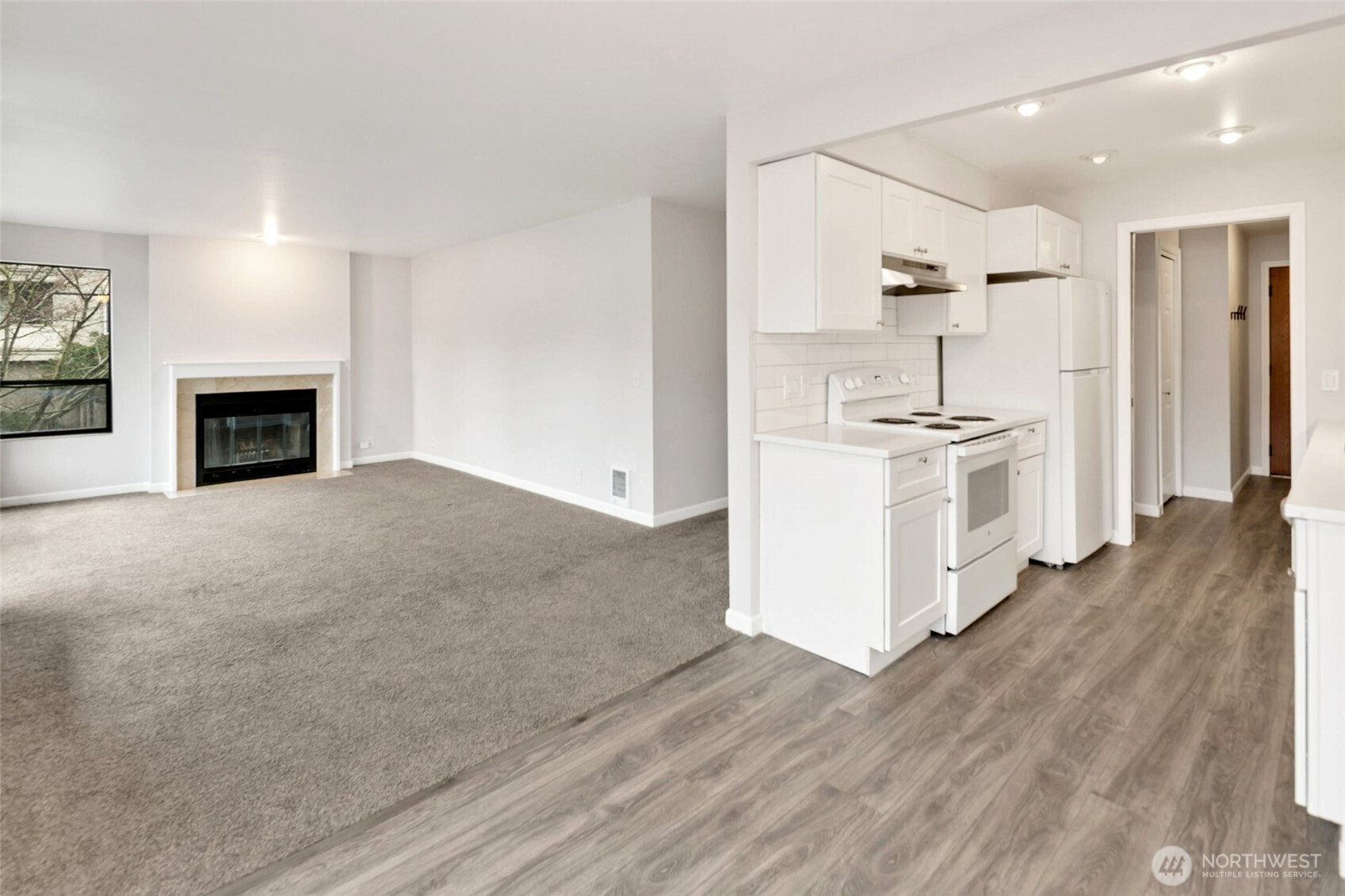 Welcome to Rosaia, where this recently updated corner-unit condo offers a spacious, well-designed layout filled with abundant natural light. The inviting living area features a woodburning fireplace and opens to a covered patio, creating an ideal space for relaxing or entertaining. The updated kitchen is outfitted with newer appliances, wood cabinetry, and quartz countertops. The spacious primary suite offers excellent storage and an ensuite bath with an updated vanity. A rare separate laundry room adds everyday convenience and valuable additional storage. Complete with a deeded parking spot, a well-managed HOA, and a central location close to transit and daily amenities, this condo makes city living easy.