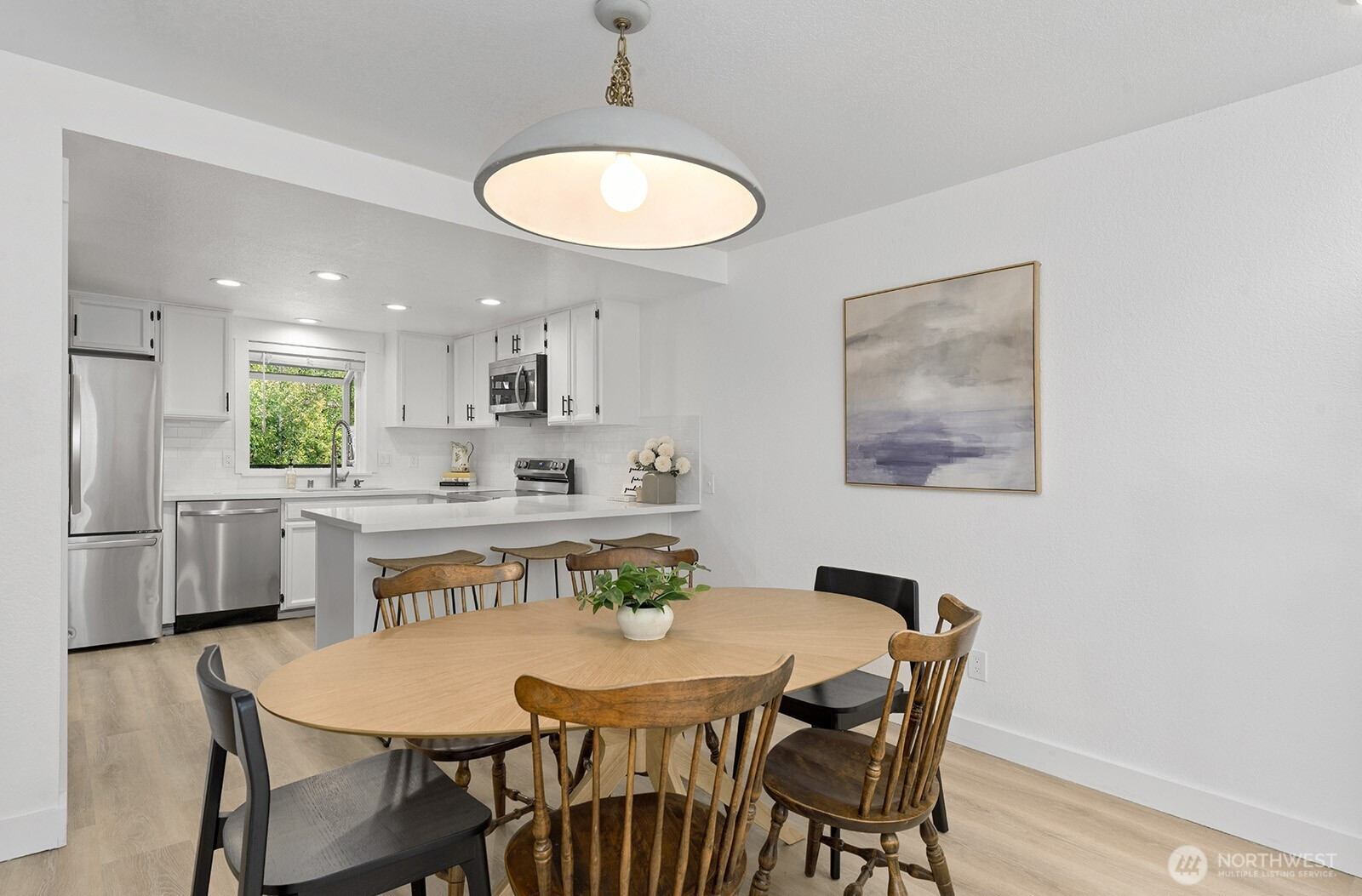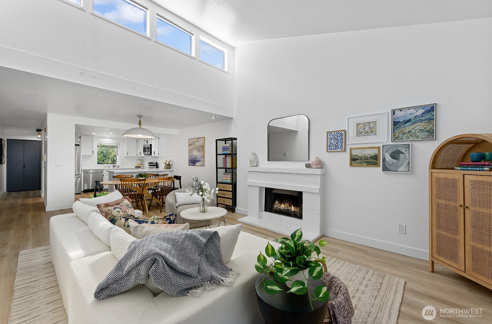 Perched on the top floor, this freshly remodeled turnkey 2-bedroom, 1.75-bath home offers 1,271 square feet of light-filled, elevated living. Vaulted ceilings enhance the open, airy feel while drawing in an abundance of natural light. Thoughtfully updated with a fresh, modern aesthetic, this home features a reimagined kitchen with new stainless steel appliances, and quartz countertops with peninsula seating for casual eats. Additional renovations include engineered hardwood floors, new interior light fixtures, fresh interior paint, and beautifully renovated bathrooms with designer tile, and new vanities. The spacious primary suite includes a generous walk-in closet, and abundant storage supporting effortless everyday living. Step outside and enjoy a lifestyle rooted in convenience and connection. Walk to neighborhood groceries, cafe's and coffee shops, or spend time exploring nearby parks and green spaces. Newport Hills Park is just moments away, while the scenic trails of Coal Creek Natural Area offer six miles of wooded paths to unwind and recharge. You will love this stunner, where modern comfort and everyday ease unite seamlessly! Welcome home!