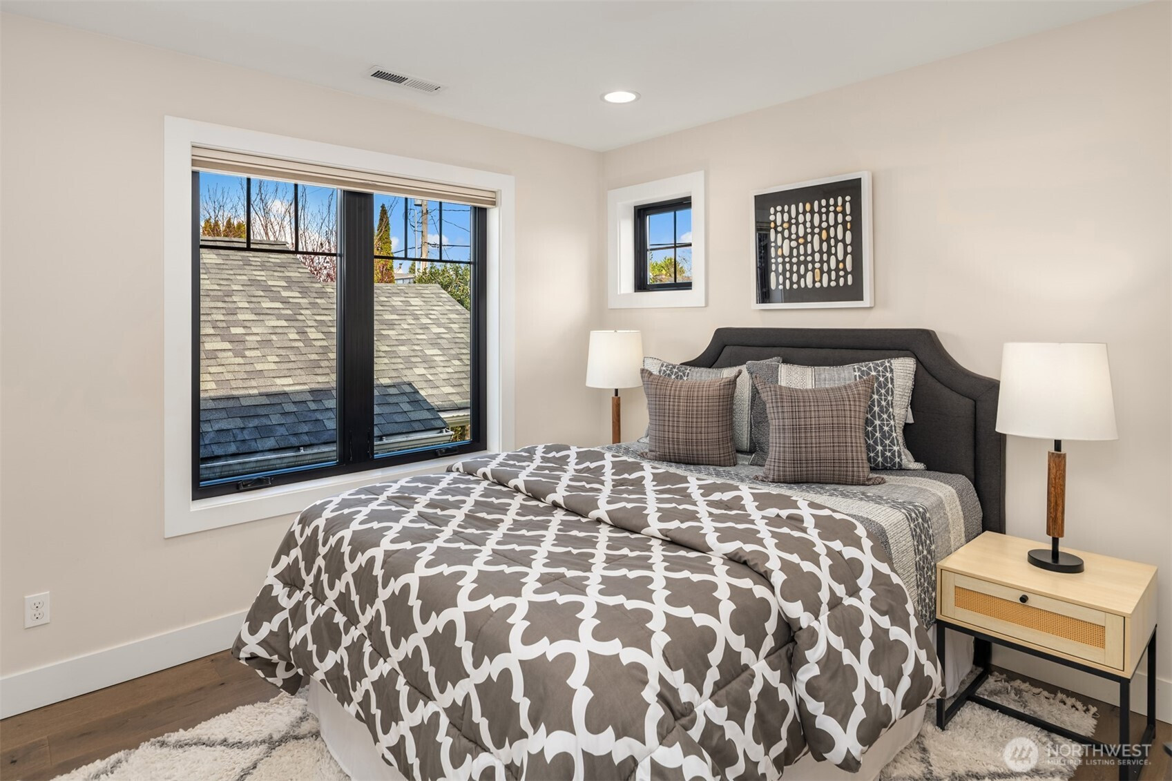 WEST OF MARKET / LAKE VIEW / CONTEMPORARY - This 2017 bespoke luxury lake-view home offers a preferred floor plan, voluminous contemporary architecture and glamorous curated finishes. Ideal for entertaining, this light-filled home offers an open floor plan with expansive windows, extended height ceilings, 8' doors and wide-plank hardwood floors throughout. The designer kitchen features custom cabinetry, lighting upgrades, integrated outlets, Wolf range, pantry and quartz island w/ seating. Great room features living area w/ gas fireplace and dining area w/ French doors to patio w/ gas. Off the patio, spiral stairs ascend to the expansive lake-view rooftop deck w/ gas. Inside, mud room w/ beverage fridge; laundry; bedroom; and, 3/4 bath complete the main level. Upstairs, the spectacular primary retreat features a bright sitting area, French doors to its own lake-view deck, walk-in closet w/ custom upgrades and indulgent spa-like bath. Two more bedrooms and full hall bath complete the upper level. All baths have heated floors and towel racks for comfort. Professionally landscaped w/ sprinklers, this property is sited high in Kirkland's West of Market Neighborhood distinguished by its wide, sunny streets offering view corridors leading to Lake Washington. Moments to Waverly Beach for summer fun; Marina Park for sailing and community events; and, Kirkland Urban for dining and recreation. Commute to Google in minutes. Top-rated schools.