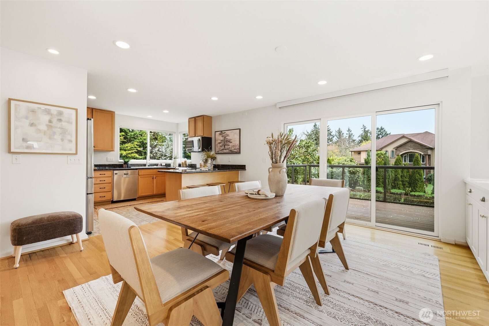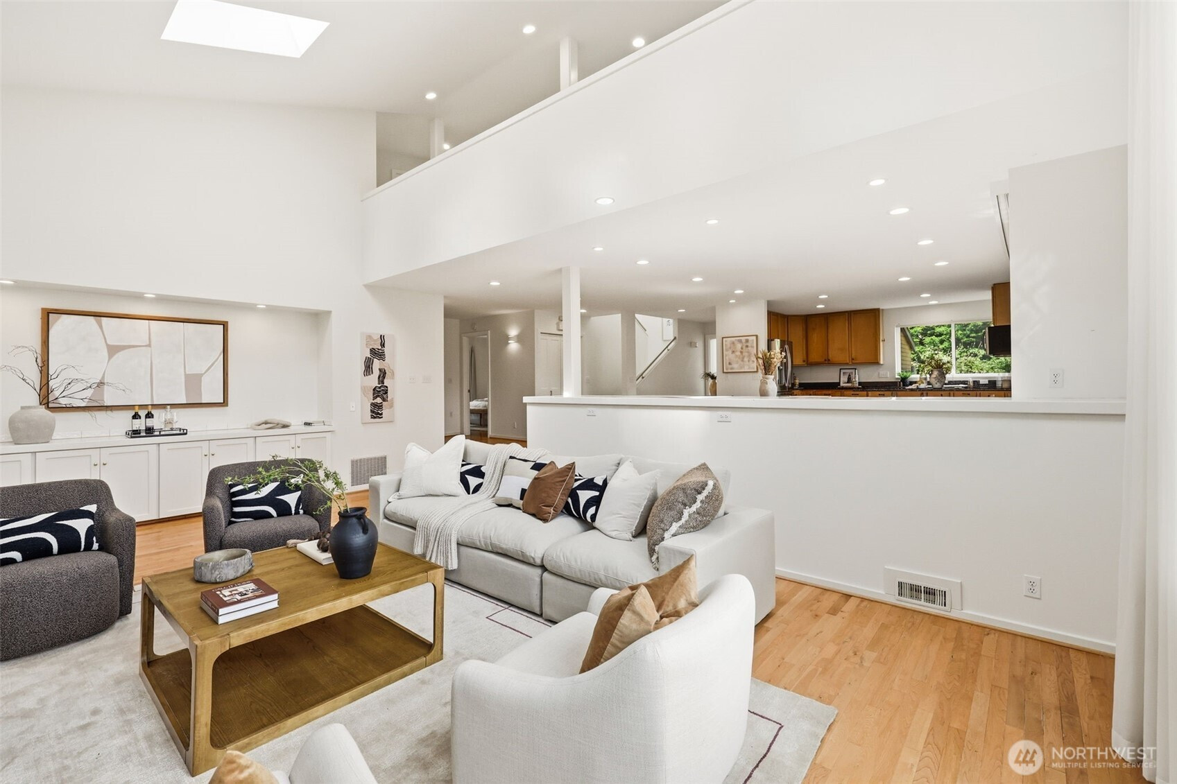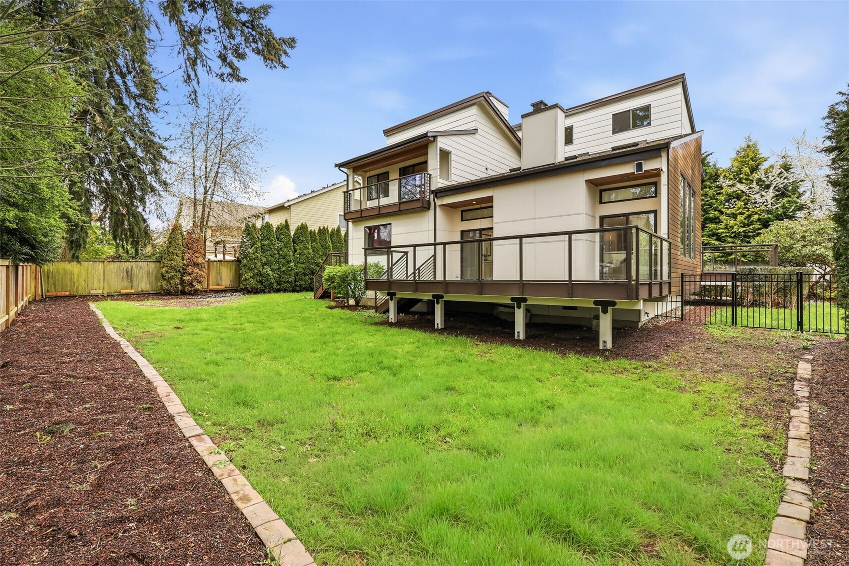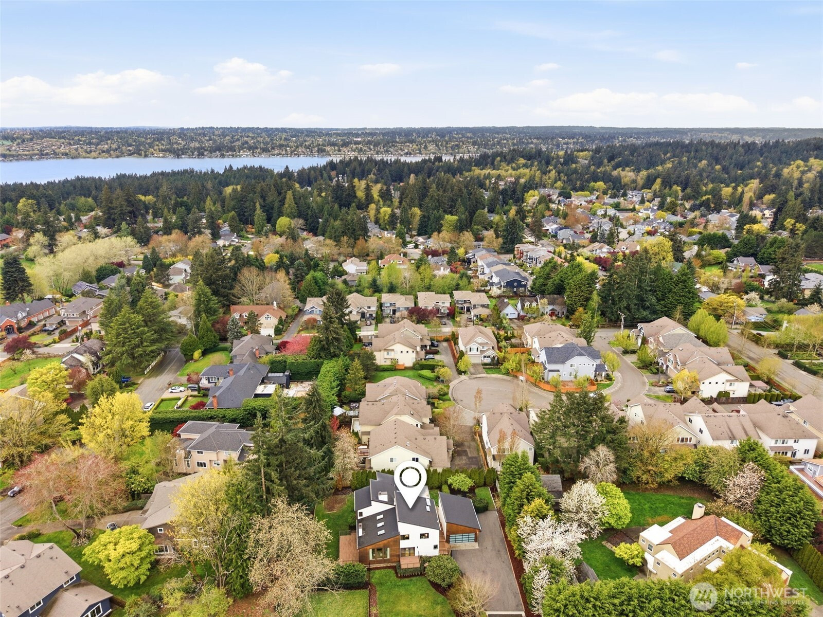 Perched atop a quiet hill on a private cul-de-sac, this beautifully renovated home offers exceptional privacy, tranquility, and versatile living spaces. Set on a generous lot, the property provides a peaceful setting while remaining minutes from Juanita Village and Totem Lake, with easy walkability to Carl Sandburg Elementary, Finn Hill Middle School and access to two Choice School programs. Enjoy close proximity to beautiful hiking trails at Denny Park and St. Edward State Park. Thoughtfully updated with high-quality materials, the home features new siding, roof, windows, doors, and expansive composite decks designed for comfortable outdoor living. Inside, a warm transitional design blends traditional comfort with contemporary style, highlighted by soaring ceilings, large windows, and spacious living areas filled with natural light. The flexible layout includes a main-floor bedroom with its own separate entrance, ideal for guests, a home office, or extended living. Additional highlights include a finished attic perfect for a playroom or retreat, a functional mudroom with its own entrance, and a primary suite with private balcony. Outdoor living shines with multiple decks, a fully fenced yard, fruit trees, and space for gardening or play. A long driveway accommodates ample parking for cars, RV, or boat, while the detached two-car garage offers room for a workshop. Unique opportunity in a prime location.