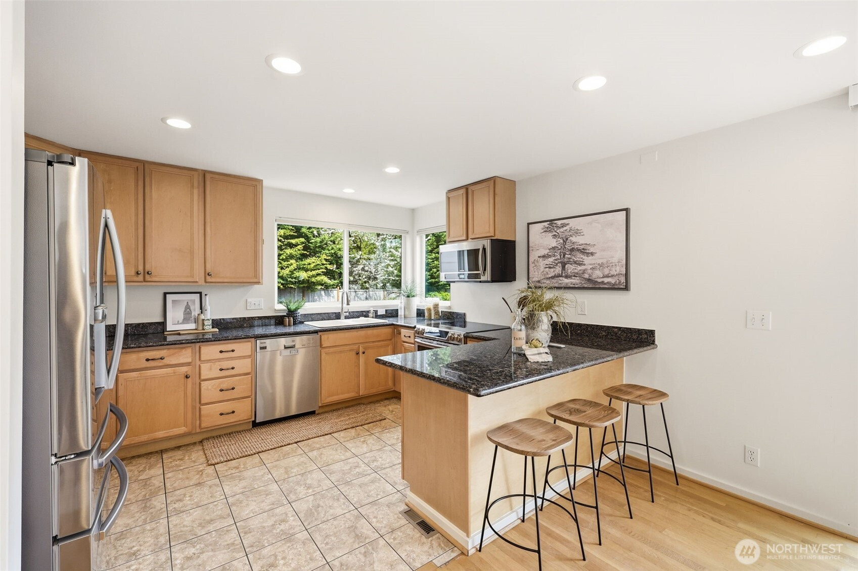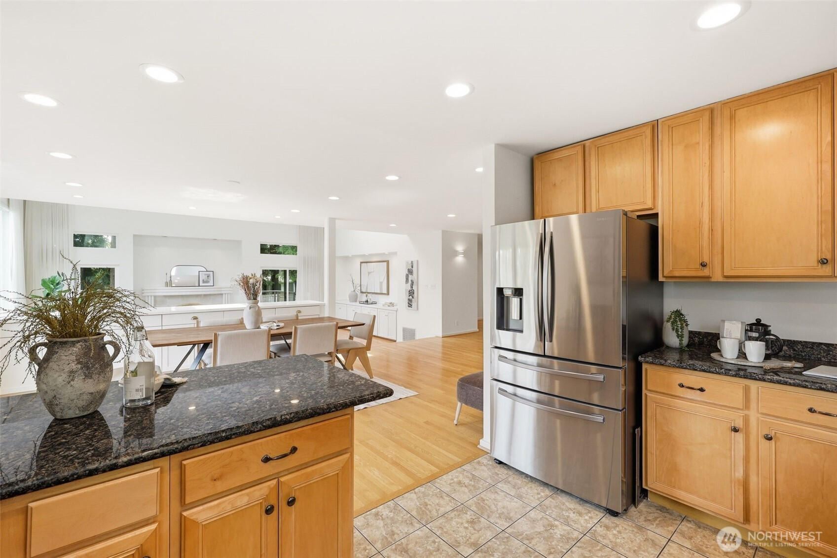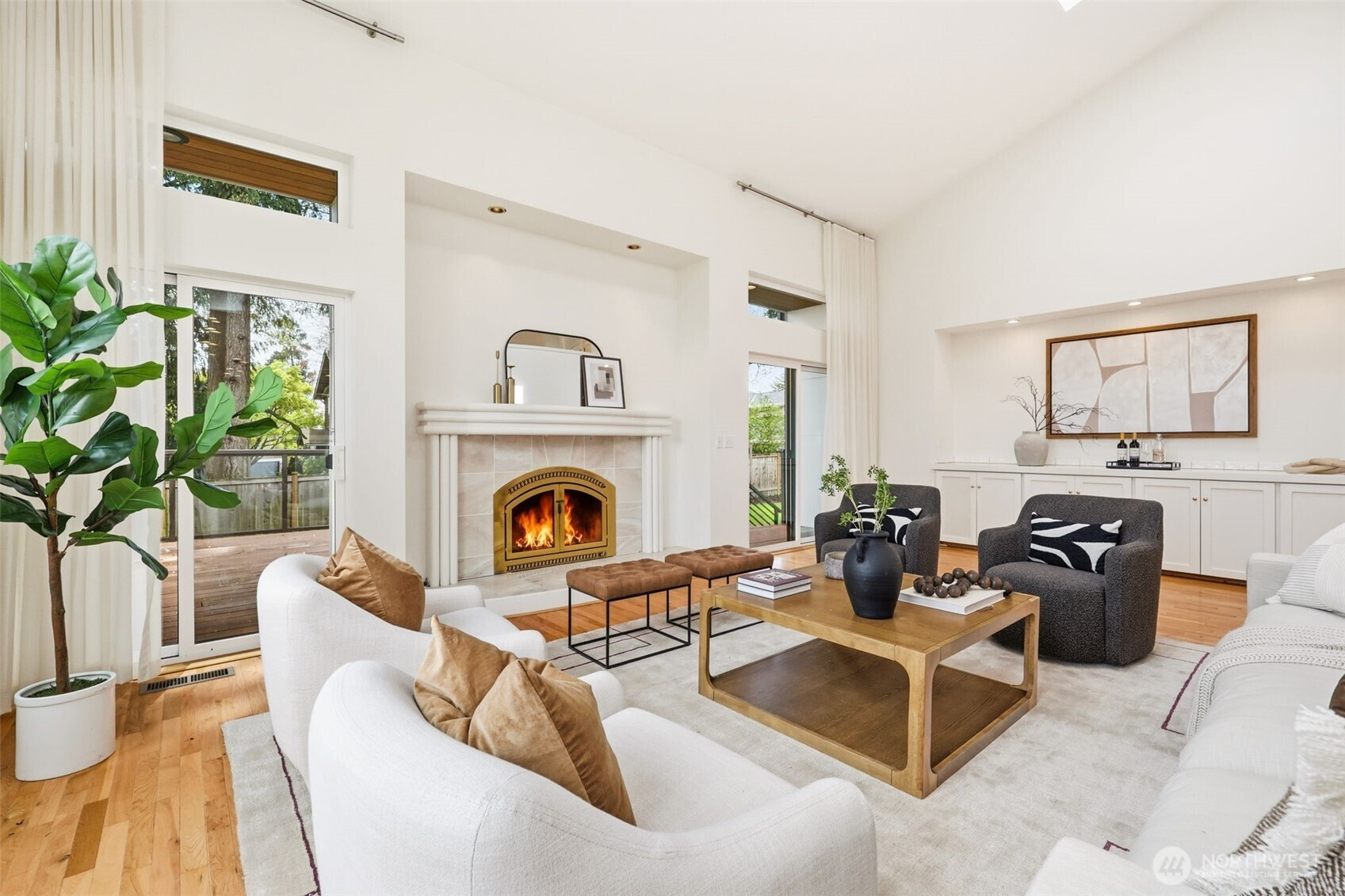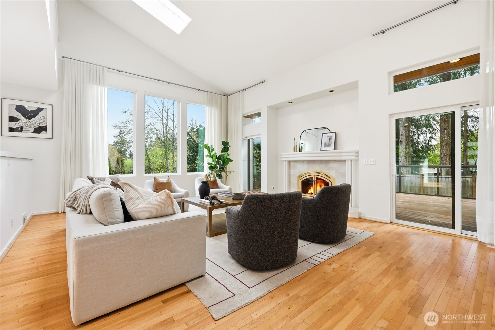 Perched atop a quiet hill on a private cul-de-sac, this beautifully renovated home offers exceptional privacy, tranquility, and versatile living spaces. Set on a generous lot, the property provides a peaceful setting while remaining minutes from Juanita Village and Totem Lake, with easy walkability to Carl Sandburg Elementary, Finn Hill Middle School and access to two Choice School programs. Enjoy close proximity to beautiful hiking trails at Denny Park and St. Edward State Park. Thoughtfully updated with high-quality materials, the home features new siding, roof, windows, doors, and expansive composite decks designed for comfortable outdoor living. Inside, a warm transitional design blends traditional comfort with contemporary style, highlighted by soaring ceilings, large windows, and spacious living areas filled with natural light. The flexible layout includes a main-floor bedroom with its own separate entrance, ideal for guests, a home office, or extended living. Additional highlights include a finished attic perfect for a playroom or retreat, a functional mudroom with its own entrance, and a primary suite with private balcony. Outdoor living shines with multiple decks, a fully fenced yard, fruit trees, and space for gardening or play. A long driveway accommodates ample parking for cars, RV, or boat, while the detached two-car garage offers room for a workshop. Unique opportunity in a prime location.
