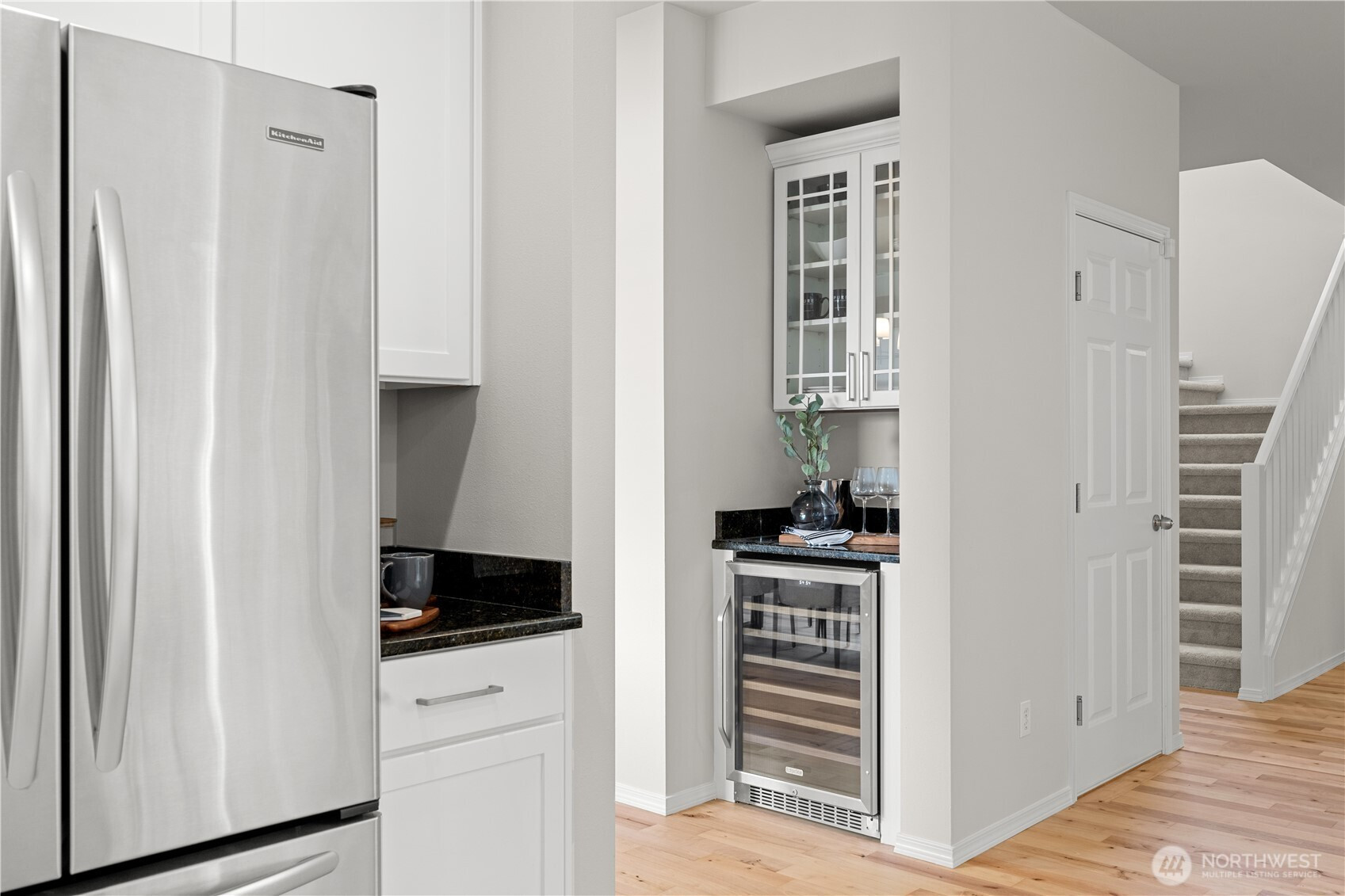 Refined elegance meets modern comfort in this beautifully updated home in Ridgewood at North Creek. A gracious covered front porch sets a welcoming tone, leading into a striking two-story foyer bathed in natural light. Main level den/study with glass French doors offers the perfect spot for an at home office. Newly refinished hardwood floors, fresh designer paint, and plush new carpeting create a sophisticated, move-in ready interior. The thoughtfully curated island kitchen is both stylish and functional, featuring stainless steel appliances, slab granite countertops, a full-height tile backsplash, walk-in pantry, and a dedicated wine refrigerator—perfect for elevated everyday living and effortless entertaining. Upstairs, four generously proportioned bedrooms offer comfort and versatility, while the home’s well-designed layout balances openness with defined living spaces. New high efficiency furnace installed in April 2025 and new hot water tank installed in 2024. Central AC keeps you cool and comfortable throughout the summer months. Outdoors, the fully fenced yard provides a private retreat, enhanced by soft, dappled afternoon light—an inviting backdrop for quiet relaxation or intimate gatherings. Ideally located just minutes from the charm of downtown Bothell and the renowned wineries, dining, and amenities of Woodinville, this exceptional home offers a rare blend of timeless style, thoughtful updates, and premier convenience. Award winning Northshore School District.