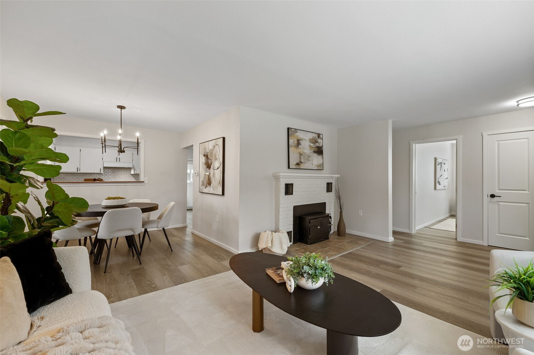 Enjoy breathtaking views of Mt. Si from this beautifully maintained, turnkey home just a short stroll from the charm of historic North Bend. Perfectly located with easy access to local shops, restaurants, parks, and everyday amenities, this home offers both convenience and small-town character with the stunning Cascade foothills as your backdrop. Inside, thoughtful updates create a bright and welcoming atmosphere with an open, airy feel throughout. The living spaces are designed for both comfort and style, featuring modern finishes, durable luxury vinyl plank flooring, and abundant natural light. The beautifully updated kitchen serves as the heart of the home, complete with sleek countertops, contemporary cabinetry, and newer stainless steel appliances—perfect for everyday living or hosting friends. The main level features two bedrooms, a den/office space and a tastefully renovated full bathroom, offering easy single-level living. Upstairs, an additional versatile space provides endless possibilities—ideal as a playroom, home office, media room, or bonus retreat. Step outside to a spacious, flat, fully fenced backyard designed for both relaxation and entertaining. Enjoy covered parking, dedicated RV space, and plenty of room for gardening, pets, or outdoor gatherings. Start your mornings with coffee on the patio while taking in the iconic Mt. Si views, and end your evenings around the fire pit under the stars in your own private outdoor retreat. Welcome home!