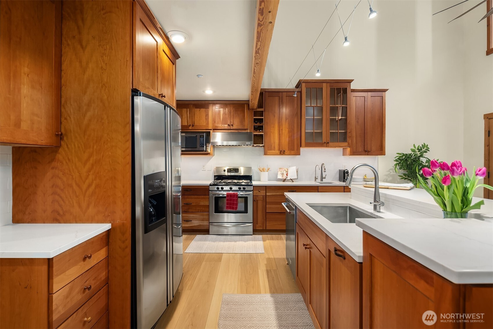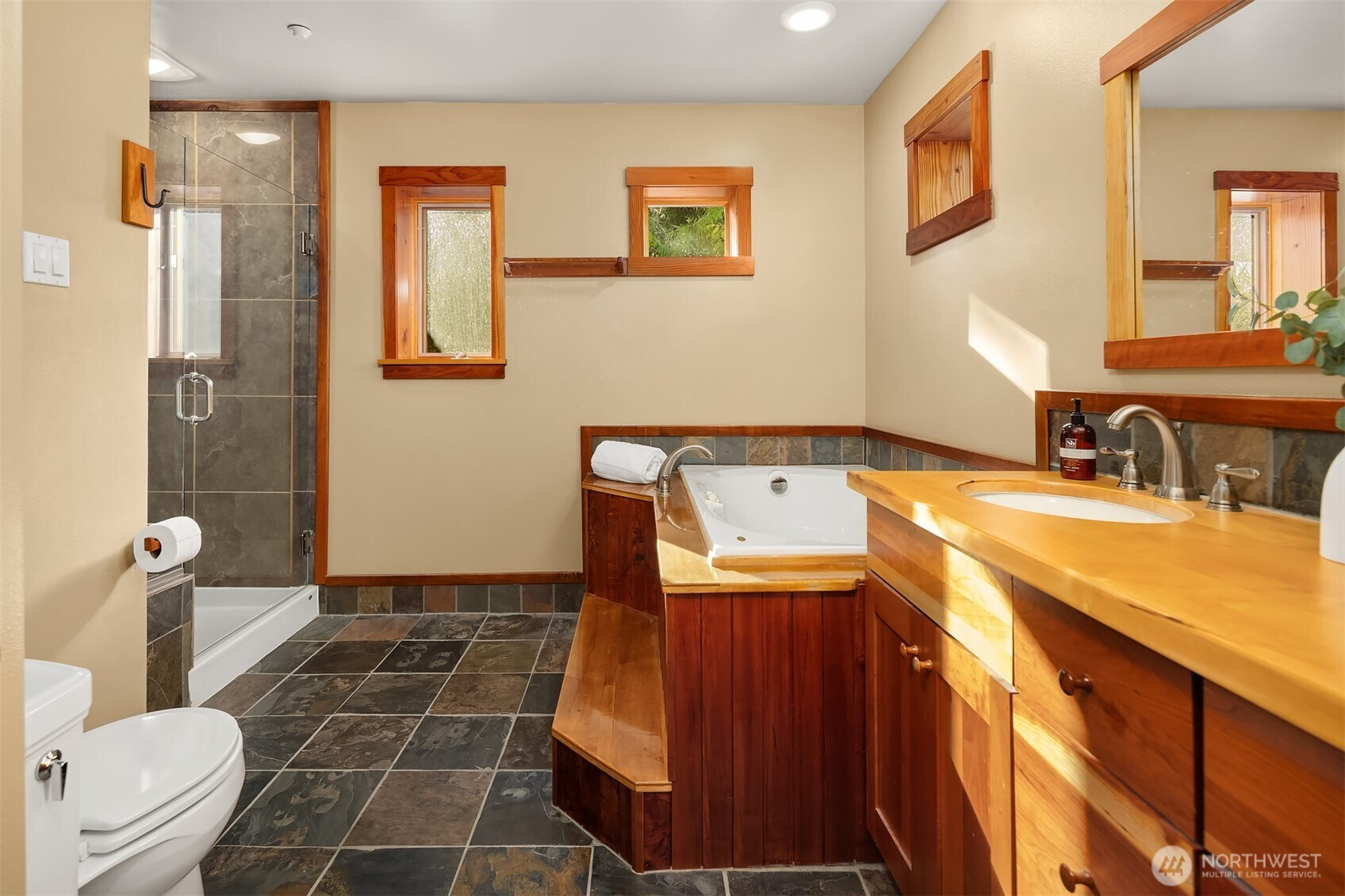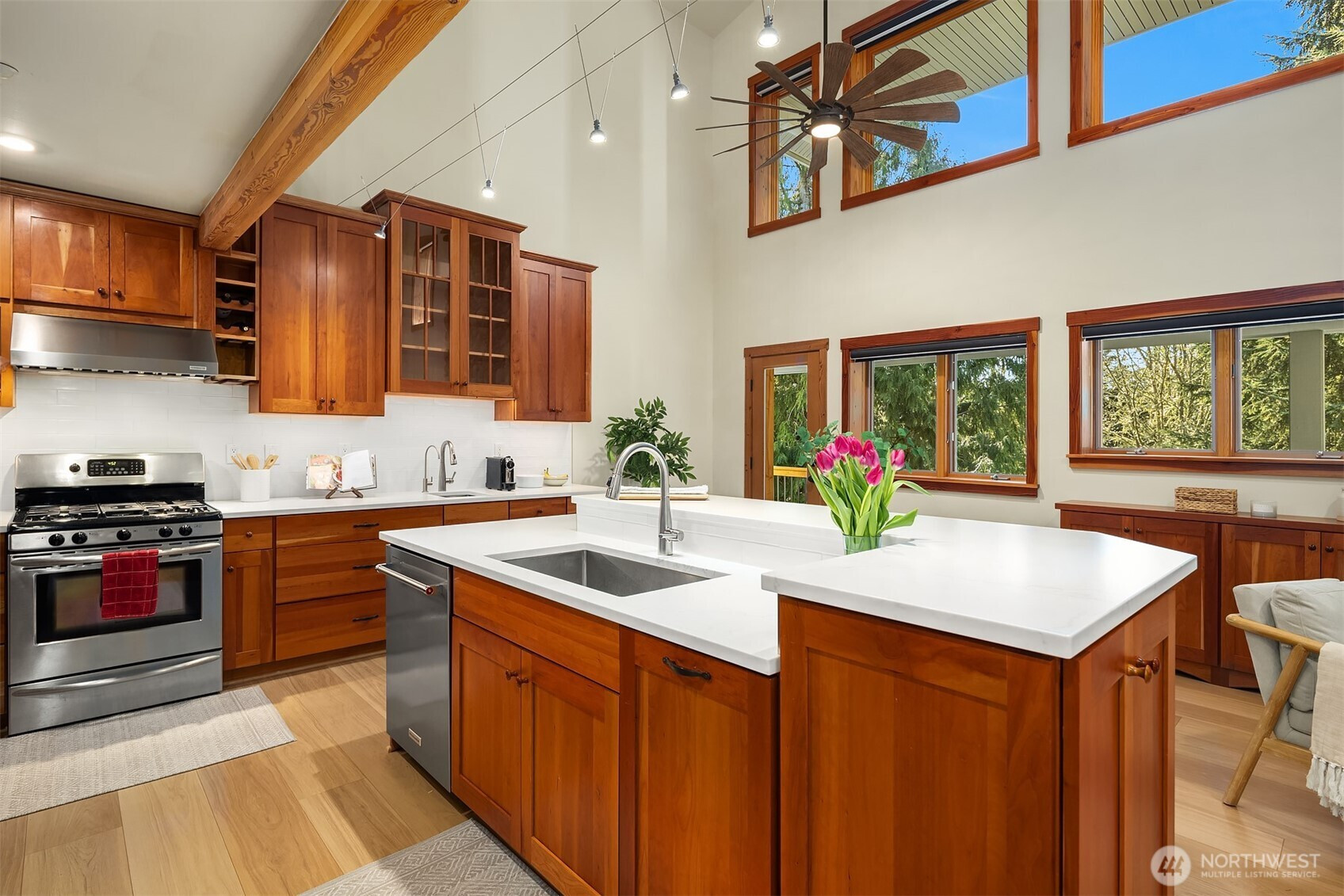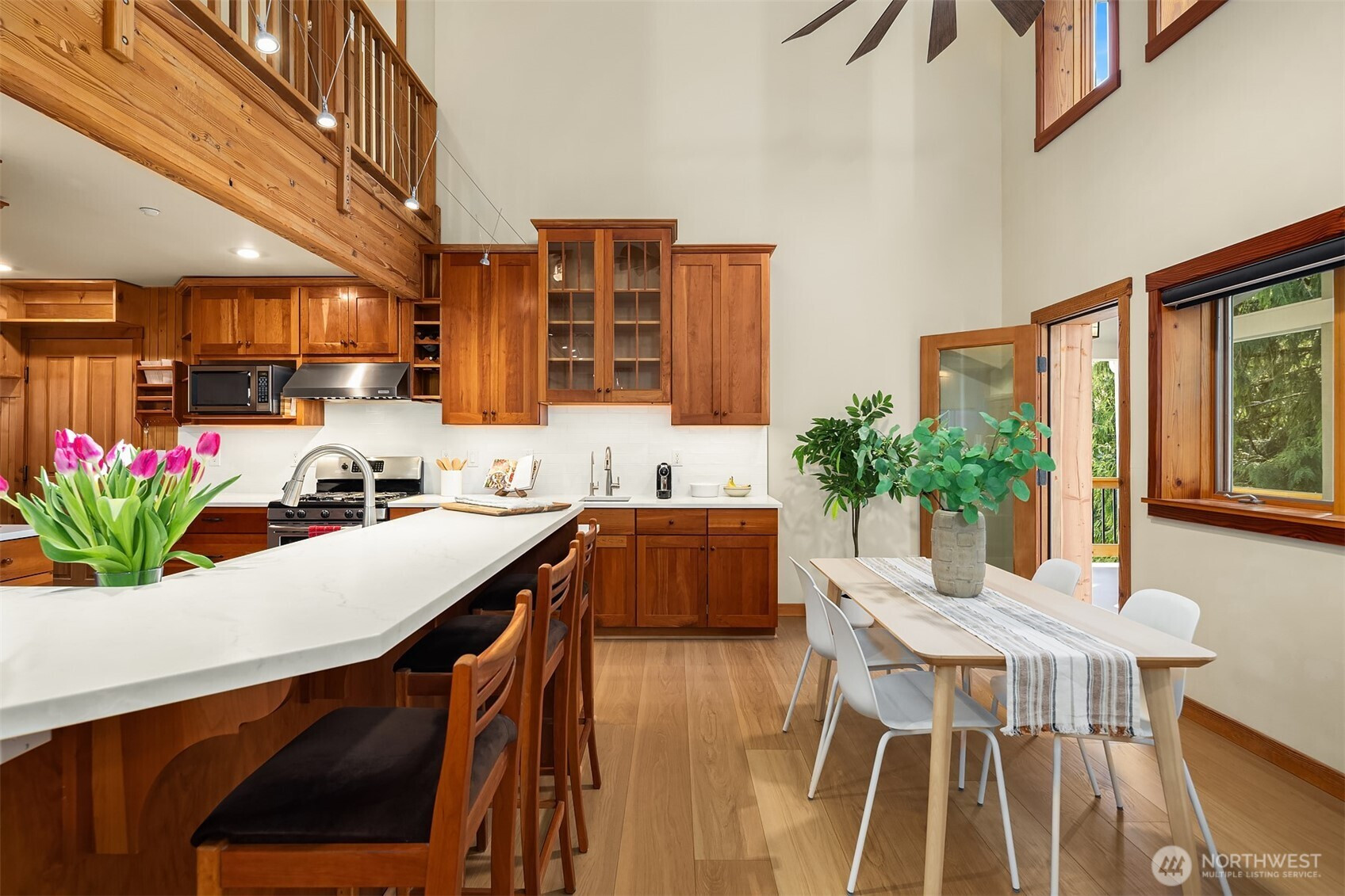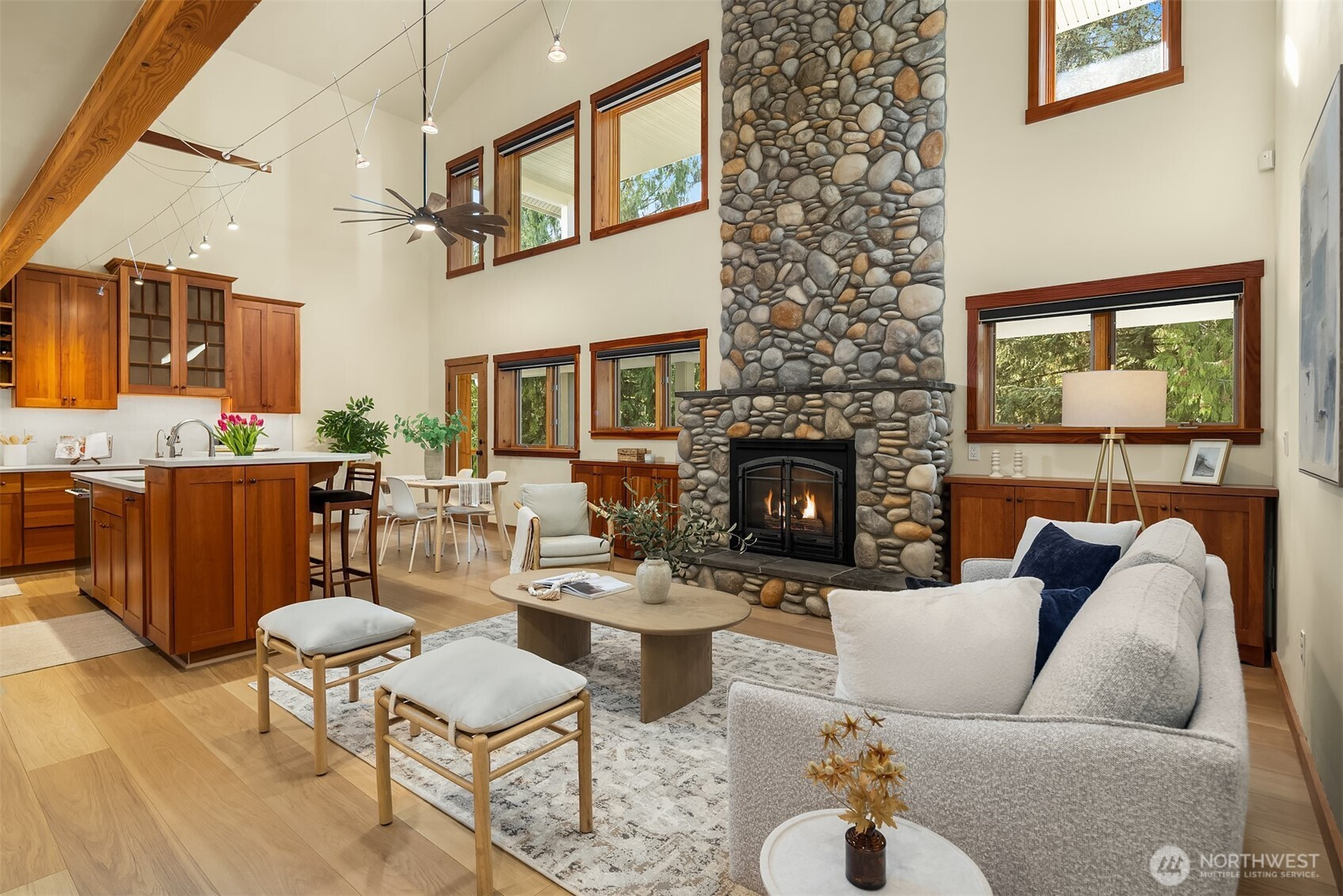 Custom built in 2006 with full Insulated Concrete Form construction; this residence situated between Issaquah, Newcastle, and Renton was designed for lasting quality and exceptional energy performance. ICF walls deliver superior insulation, structural resilience, and a remarkably quiet interior, placing this home among the top five most energy-efficient in a neighborhood of over 100 homes. Hydronic radiant heat warms every finished level: consistent comfort through every season without supplemental cooling in a typical Pacific Northwest summer. Vaulted ceilings and generous windows fill the great room with natural light, while custom handcrafted millwork throughout reflects the care behind the original build. Recent updates include new quartz countertops, new great room flooring, and new carpeting. The finished lower level adds flexible living space and direct access to the heated shop with its own bay door. Outside, the nearly half-acre lot provides space and privacy increasingly rare this close to Eastside conveniences. Dedicated RV parking, two well-maintained sheds, and separate wood storage offer functional outdoor space most properties cannot match. A standing seam metal roof and full ICF construction reinforce the long-term, low-maintenance character of the build. No HOA, within the highly regarded Issaquah School District. A rare opportunity to own a custom residence where this level of construction quality and energy efficiency is built into every wall.